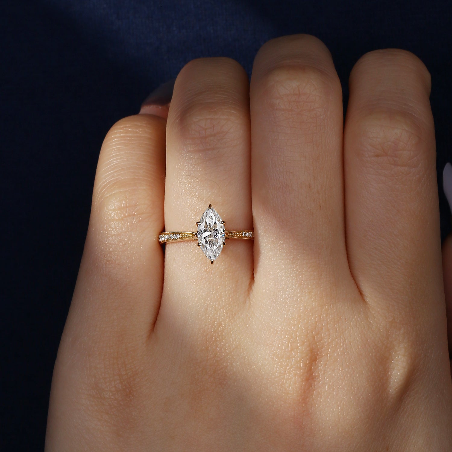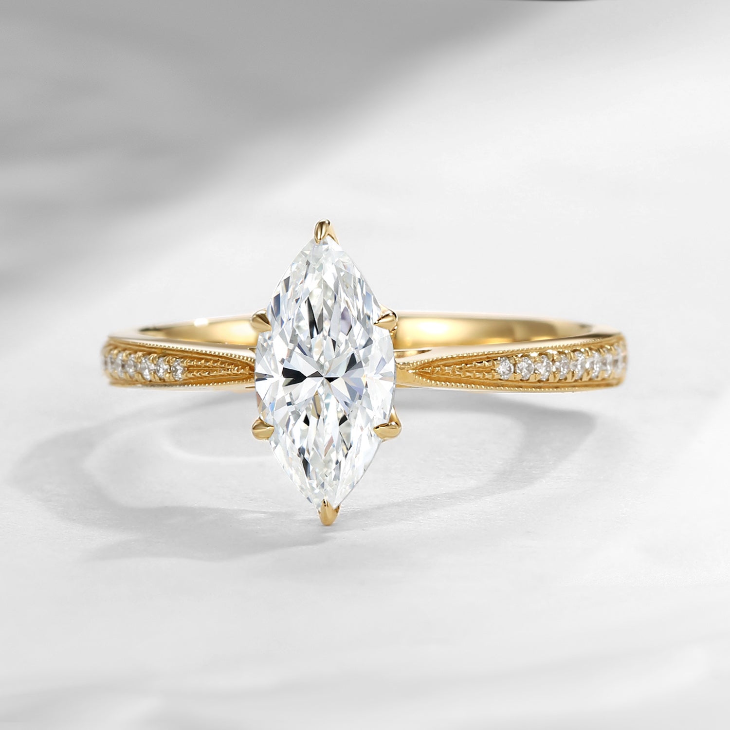 Crescent Moon | Fancy Long Hexagon Moissanite Engagement Ring