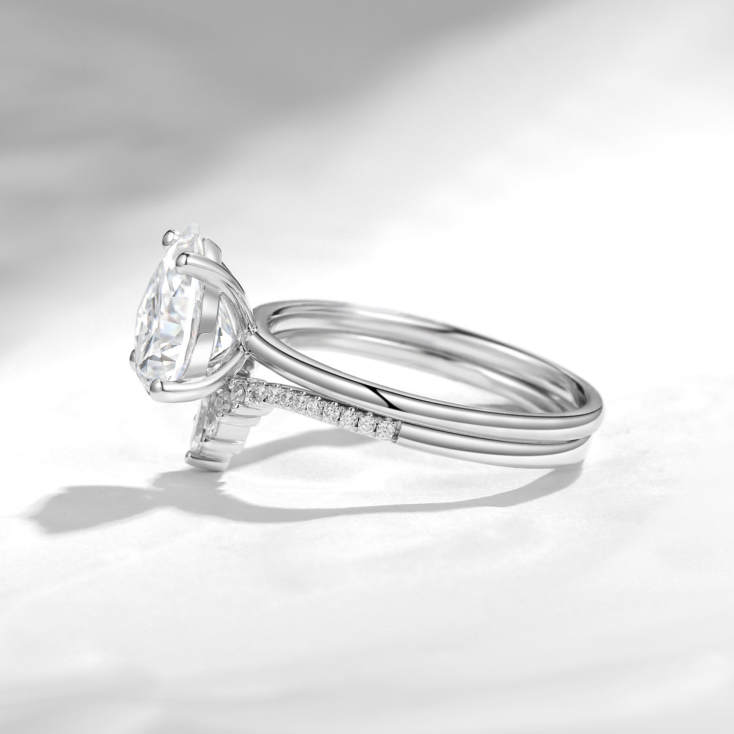 1.0-2.0ct Oval Cut Lab Diamond Classic Pavé Ring Set 2pcs