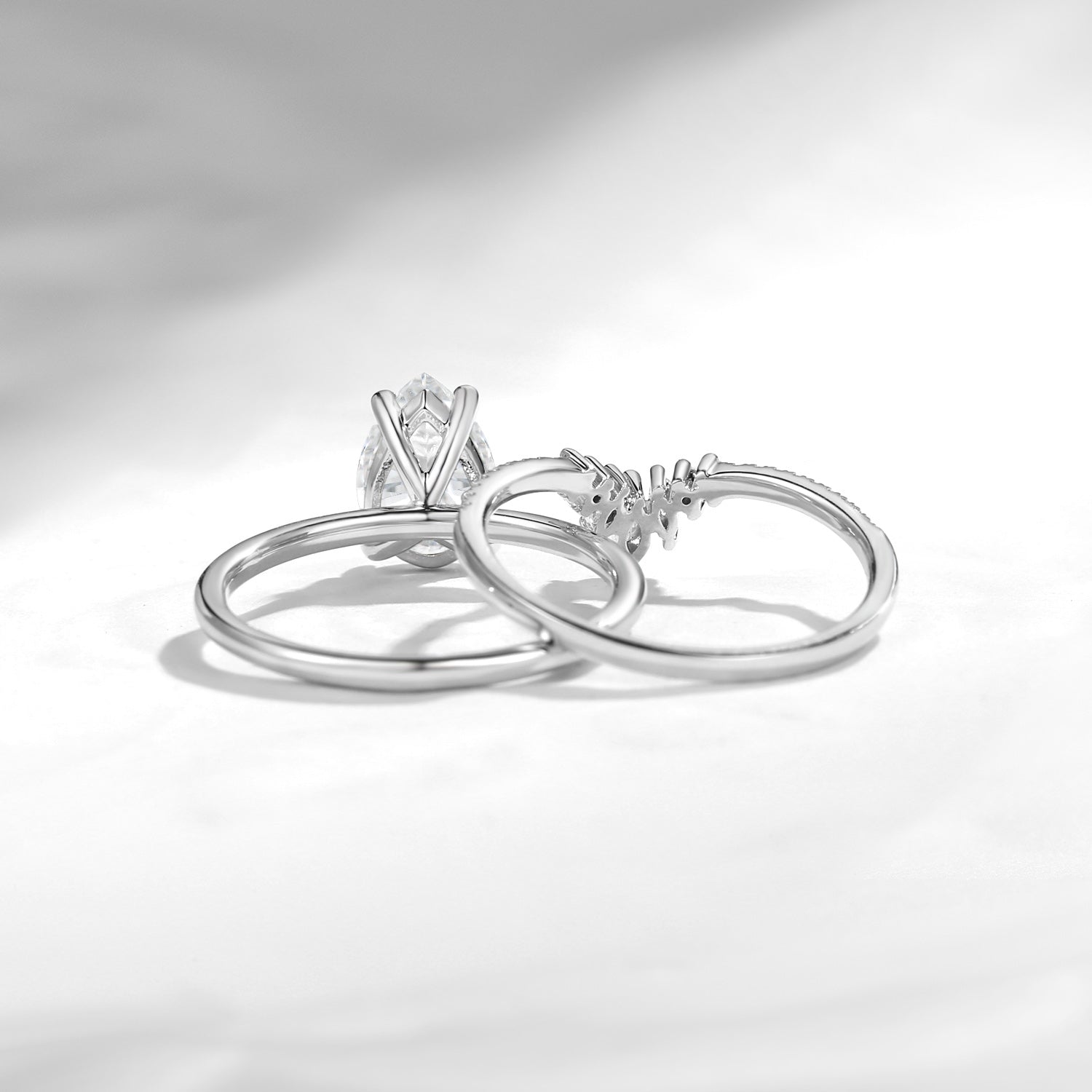 1.5ct Oval Moissanite Ring Bridal Set 3pcs