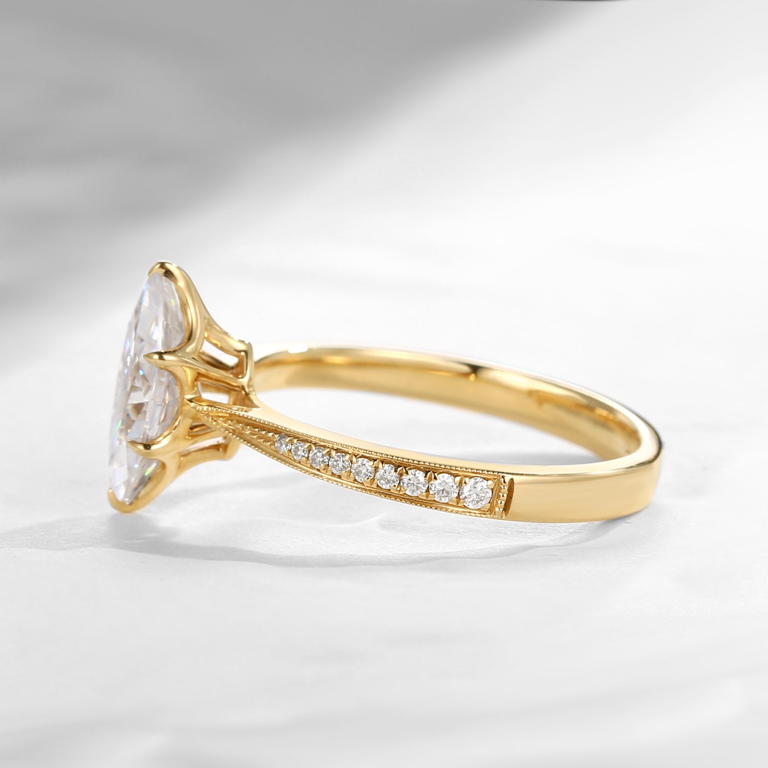1.0-2.0ct Pear Cut Lab Diamond Solitaire Engagement Ring