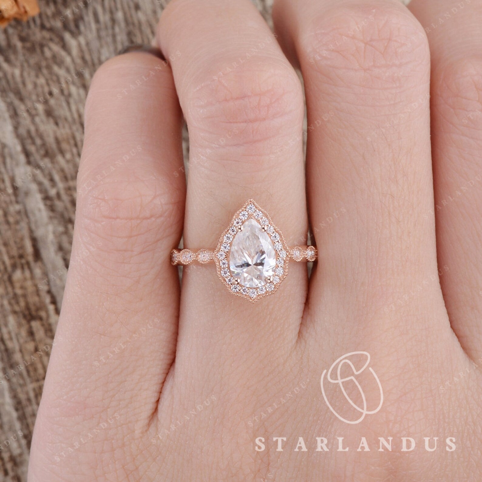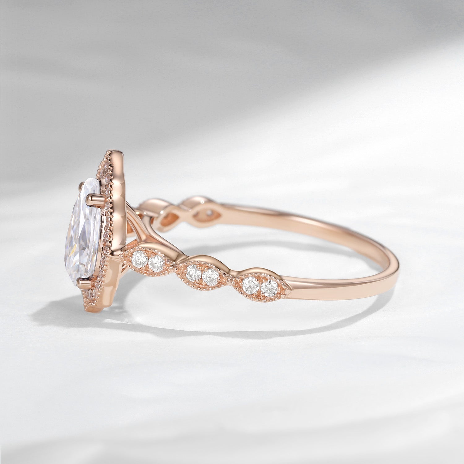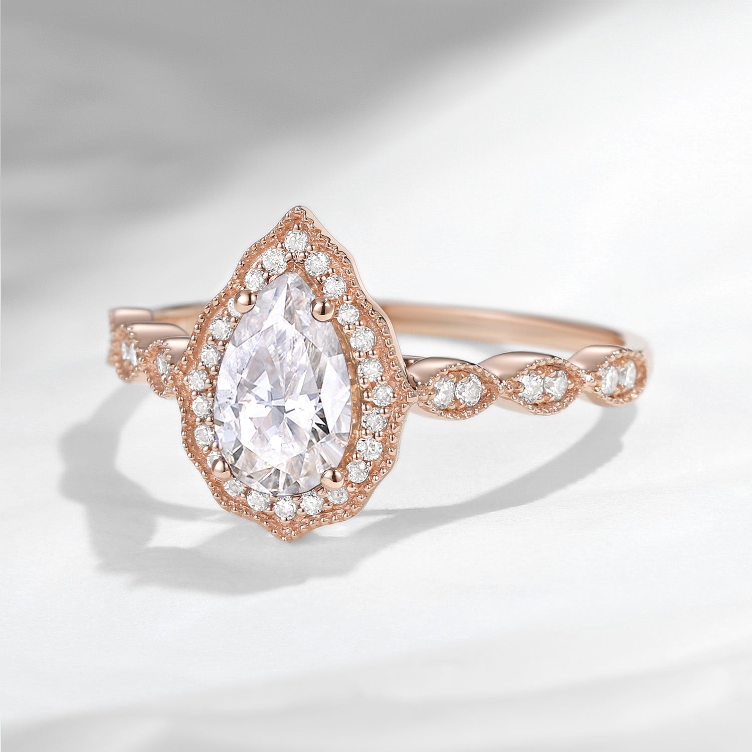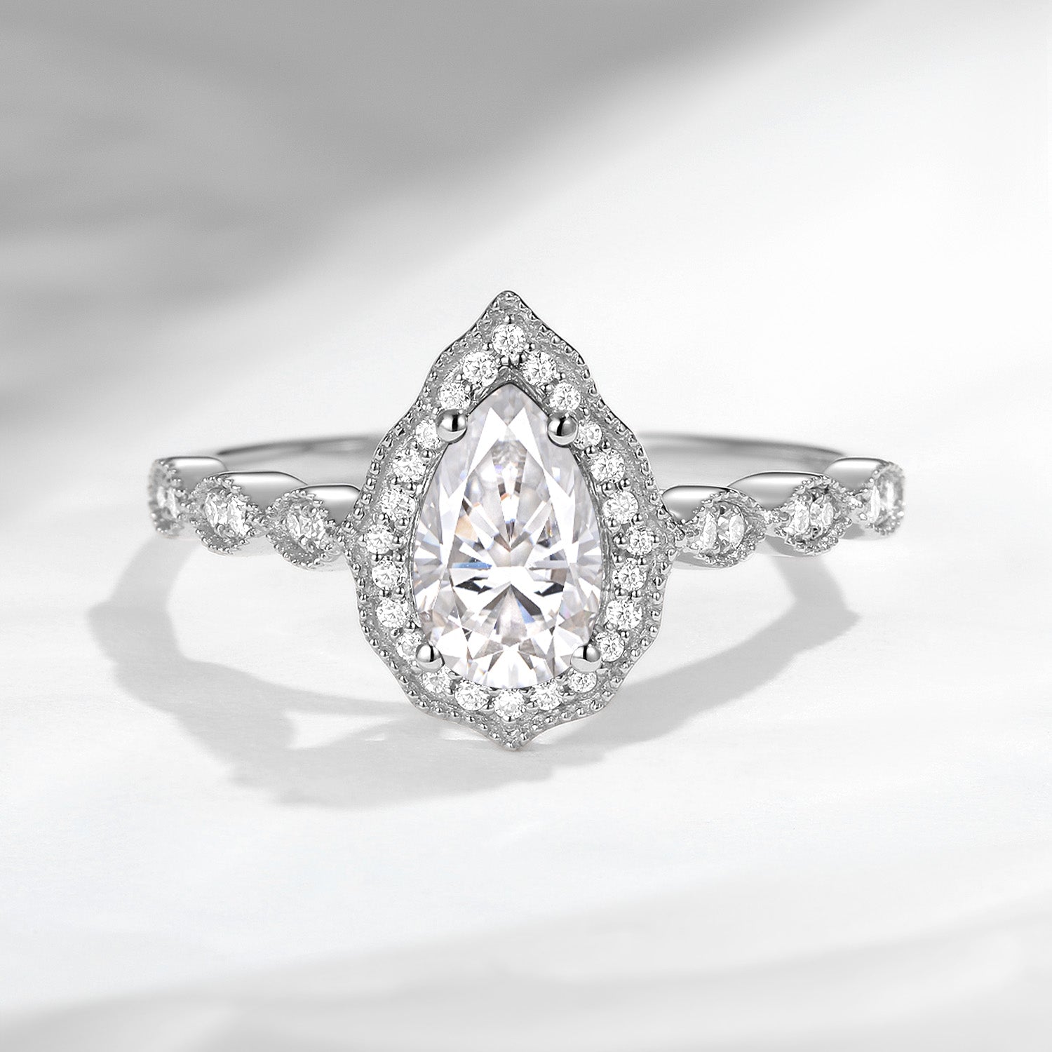 1.0-2.0ct Pear Cut Lab Diamond Halo Engagement Ring