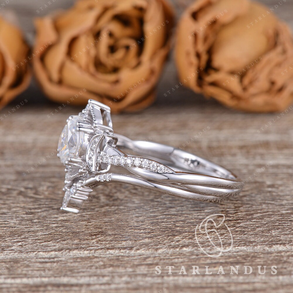 Crescent Moon | 1.2ct Pear Cut Moissanite Engagement Ring