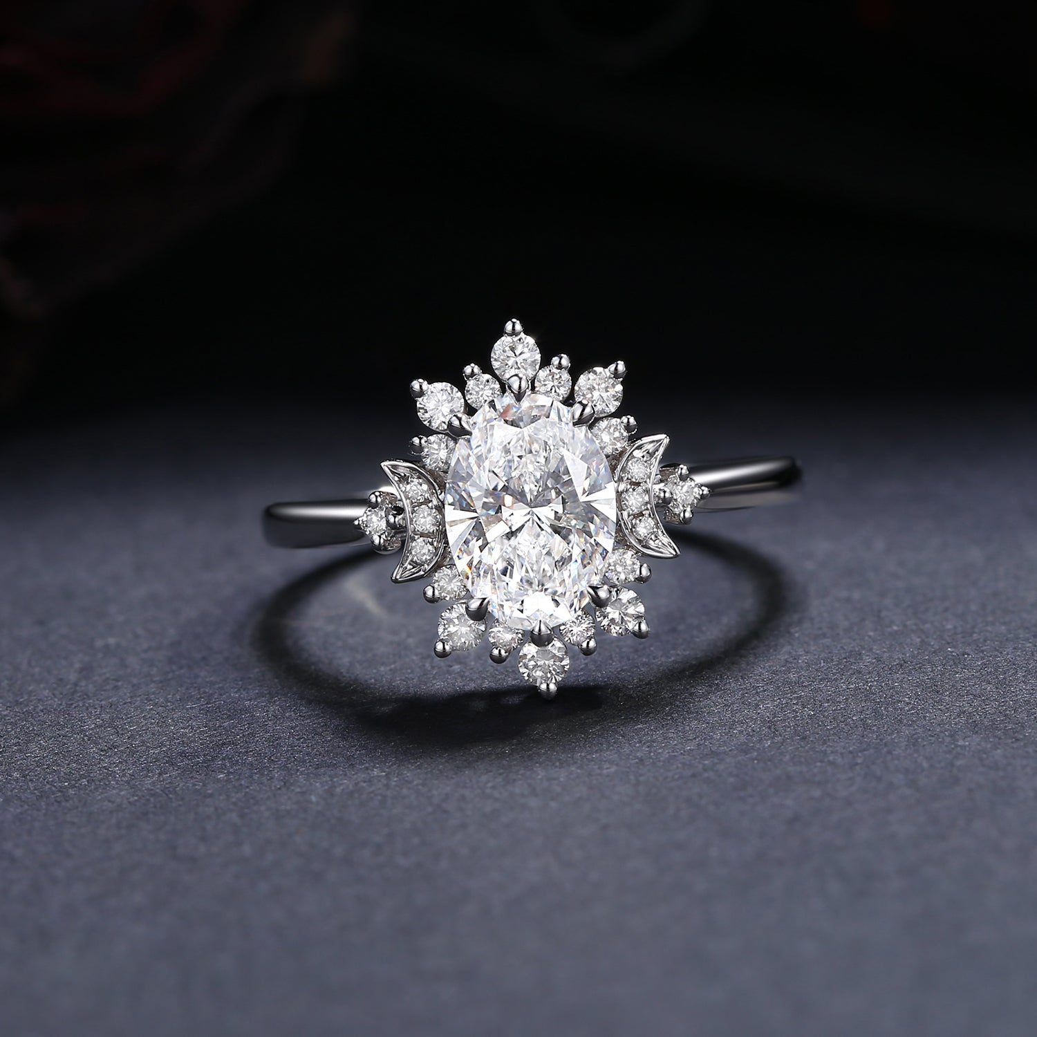 Crescent Moon | Oval Halo Moissanite Engagement Ring - Moonlight In Vermont