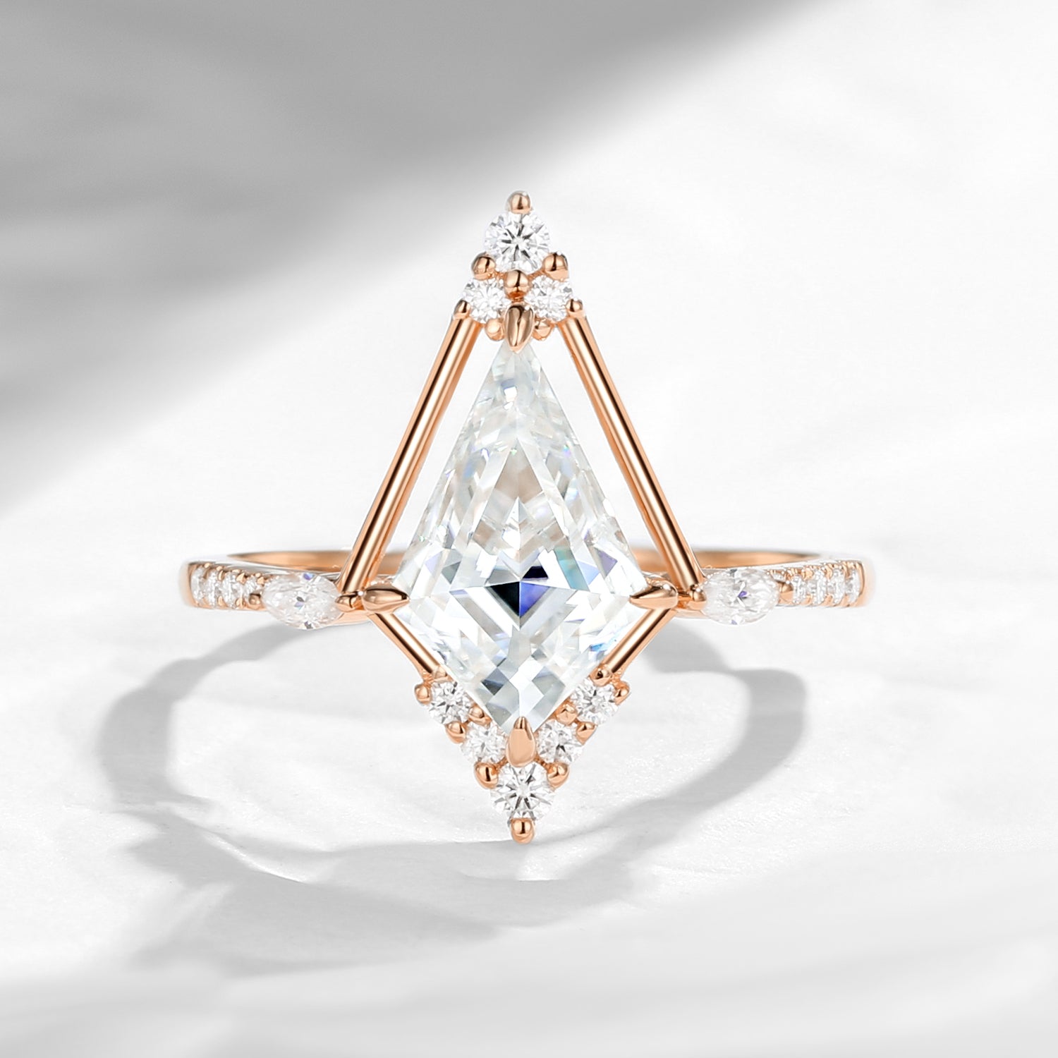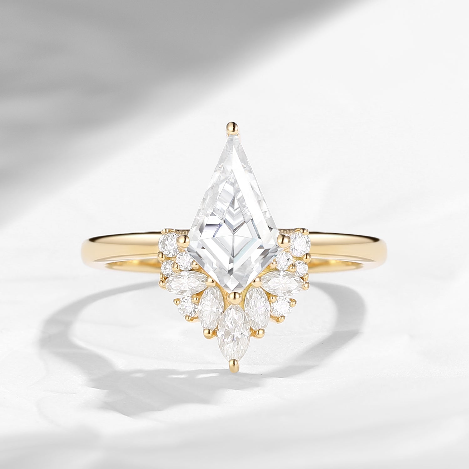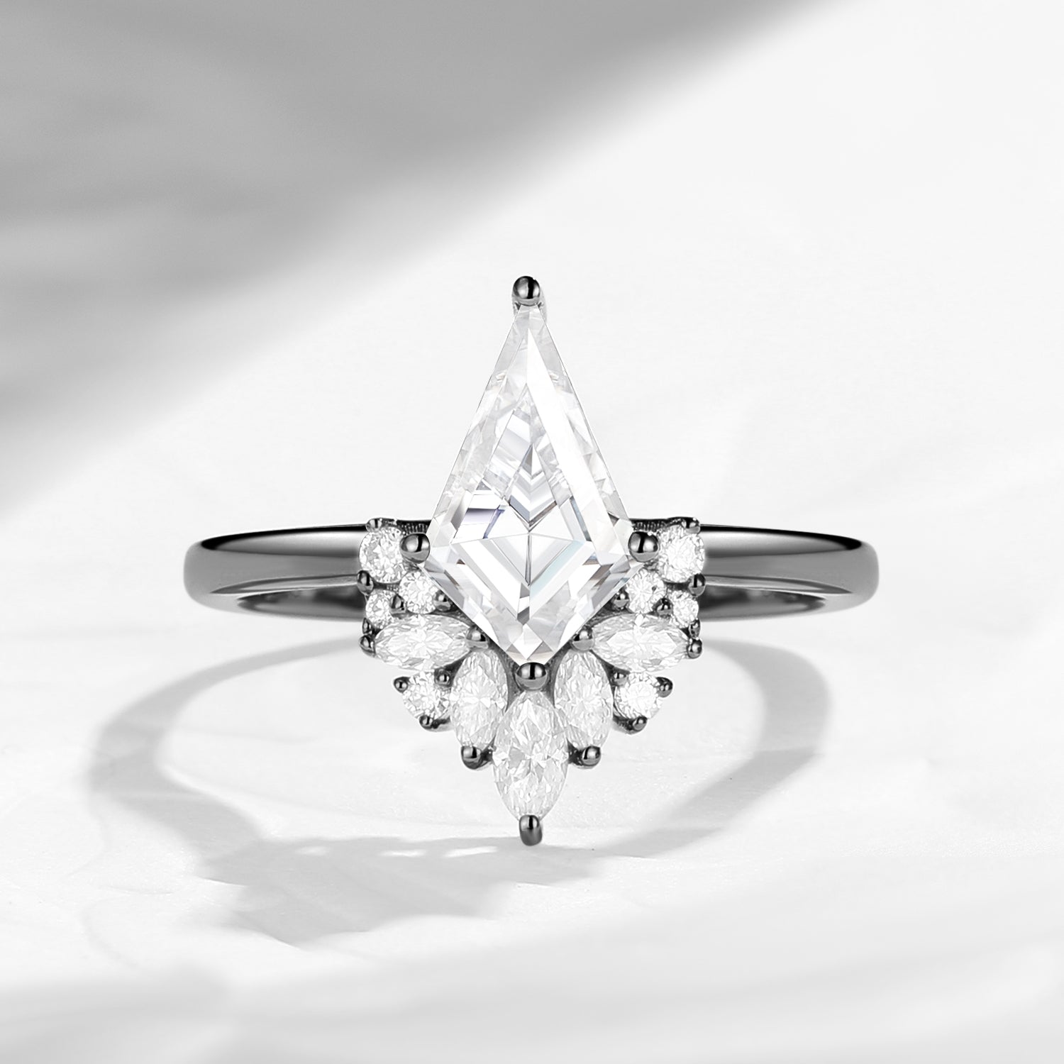 Art-Deco Kite Cut Moissanite Cluster Engagement Ring