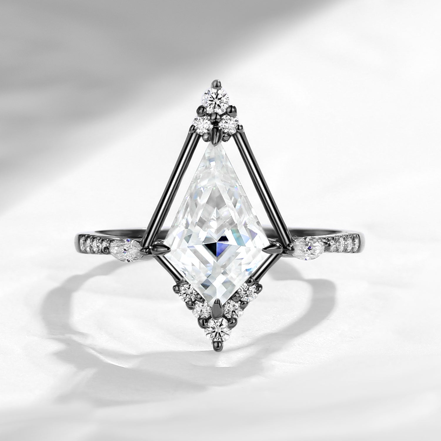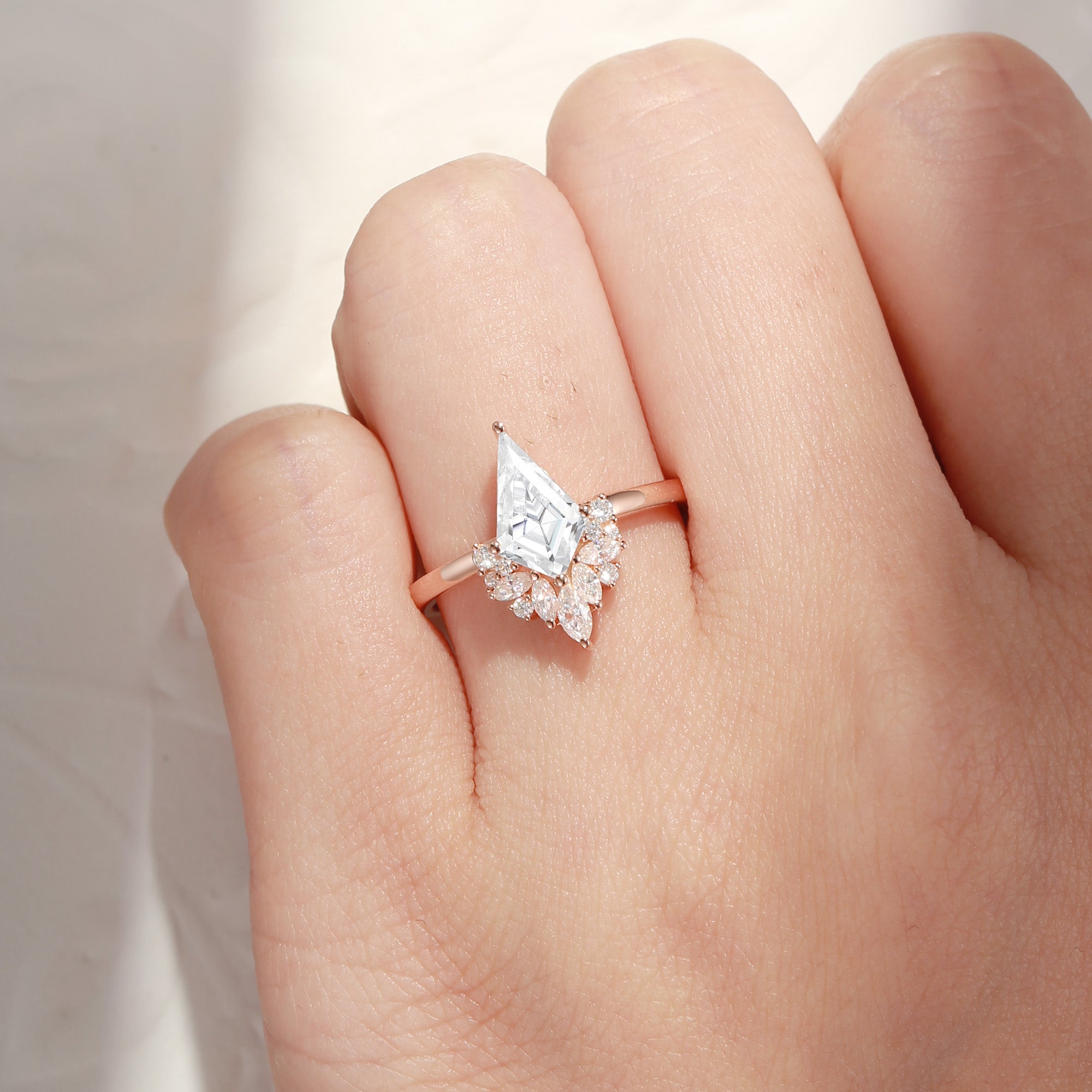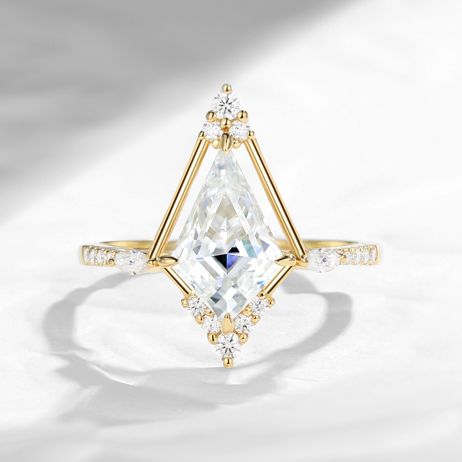 Art-Deco Kite Cut Moissanite Cluster Engagement Ring