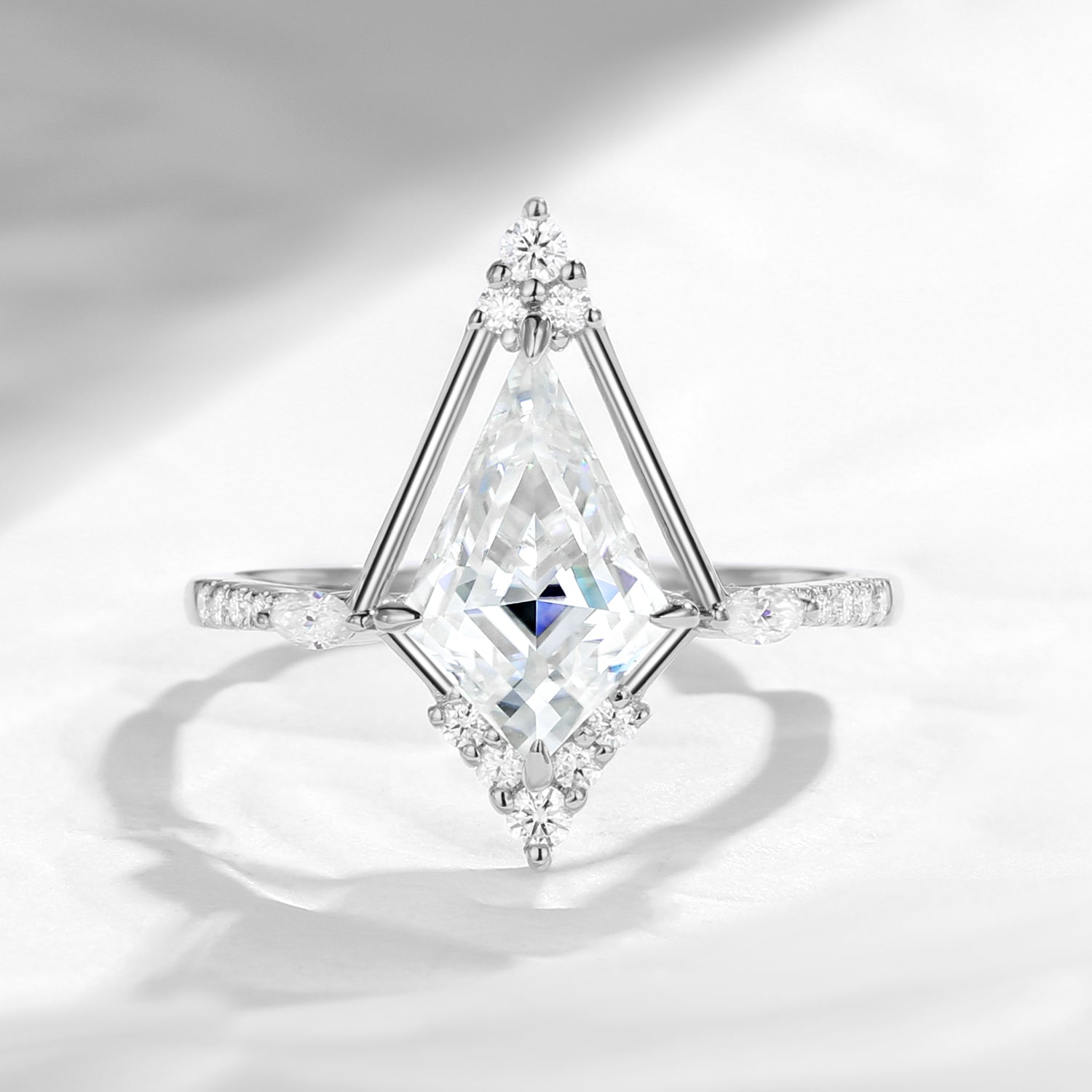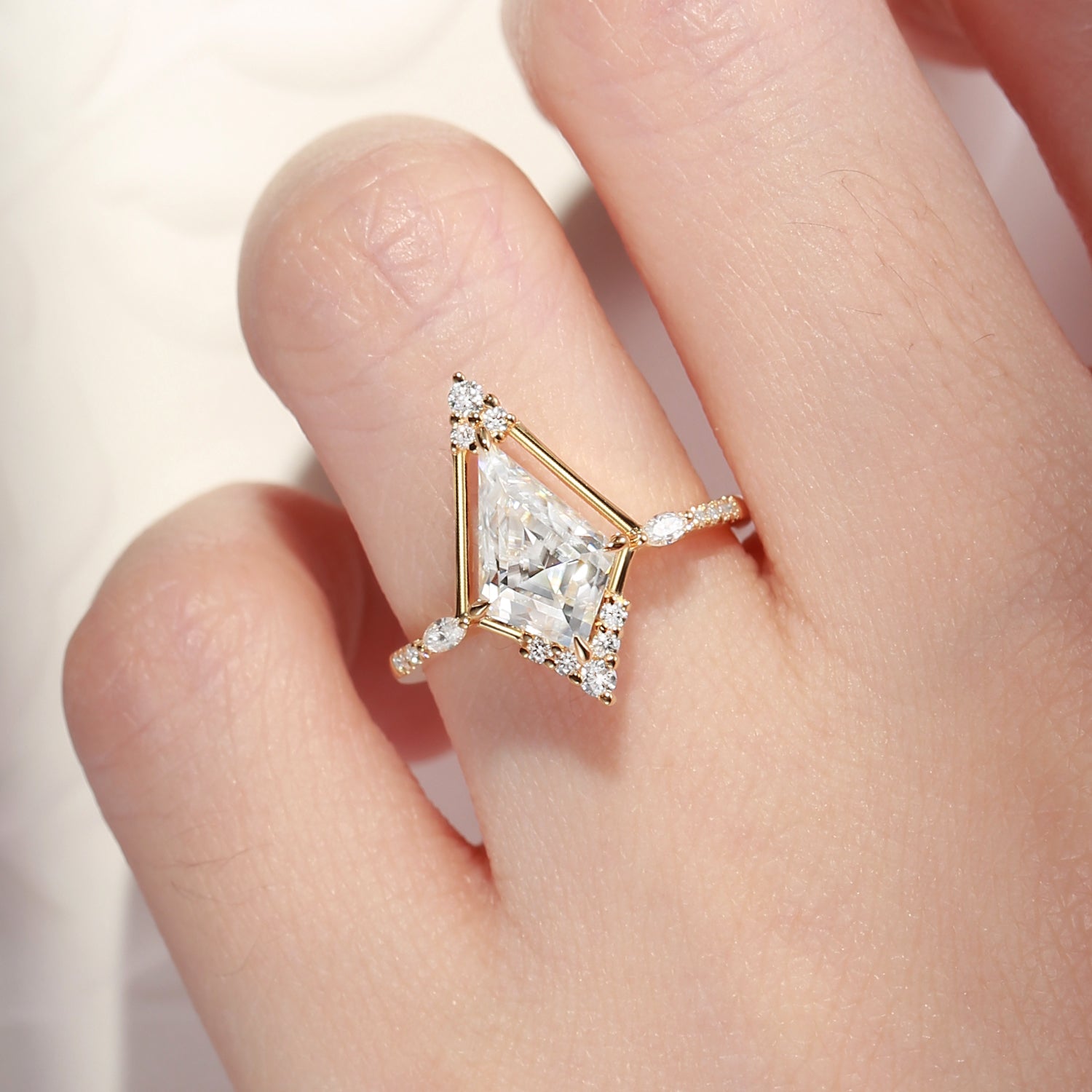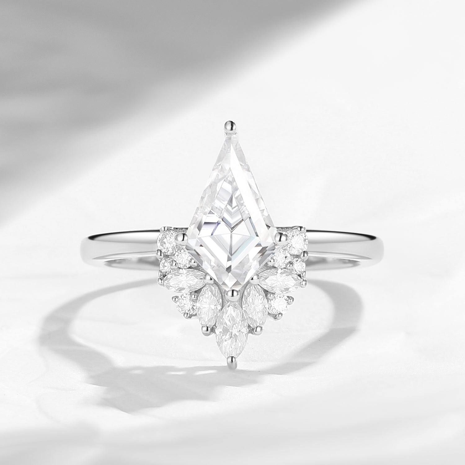 Unique Kite Shaped Moissanite Butterfly Cluster Engagement Ring