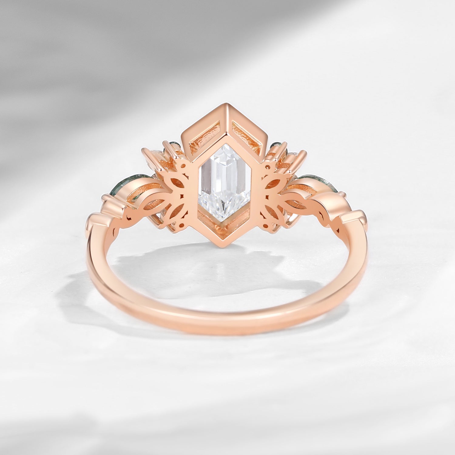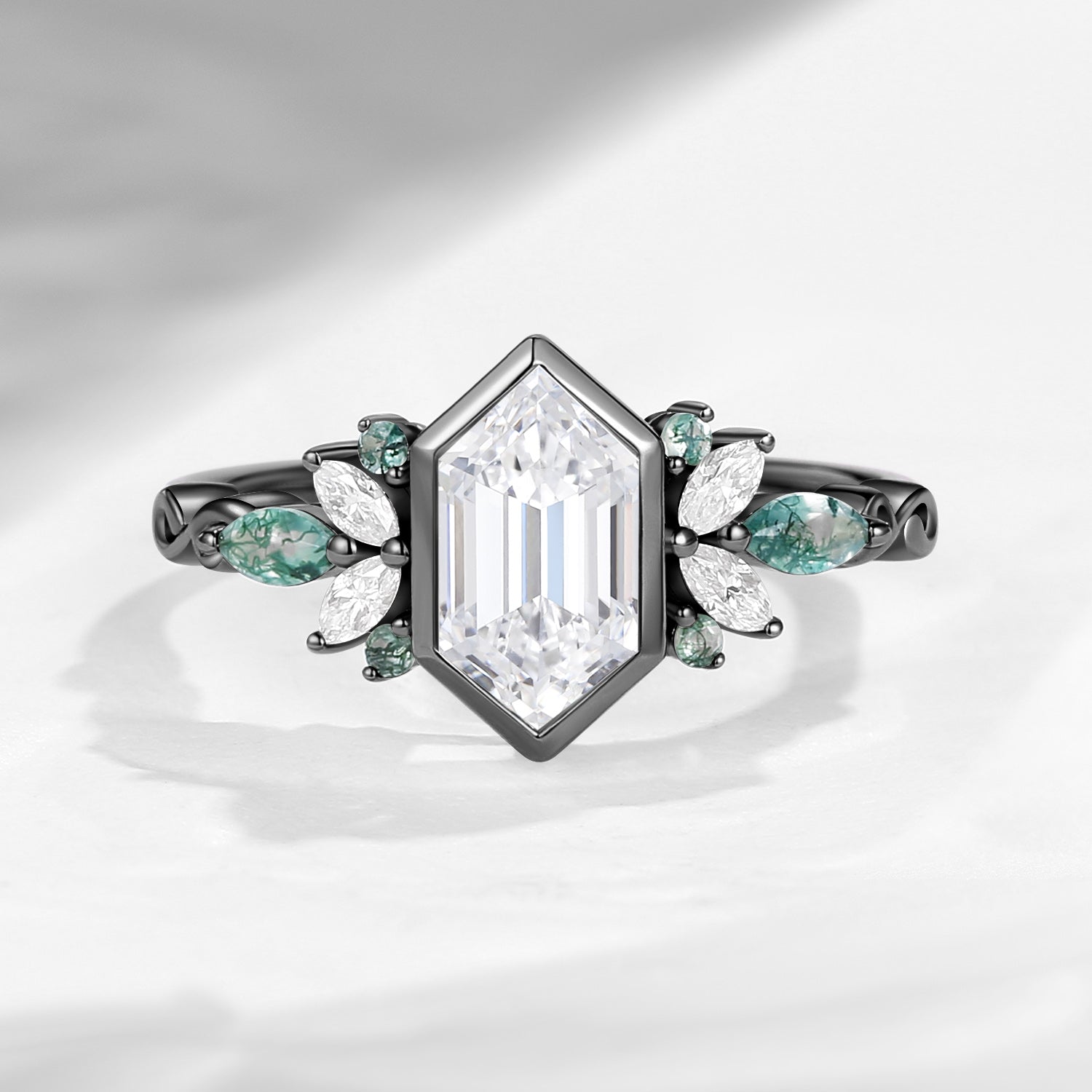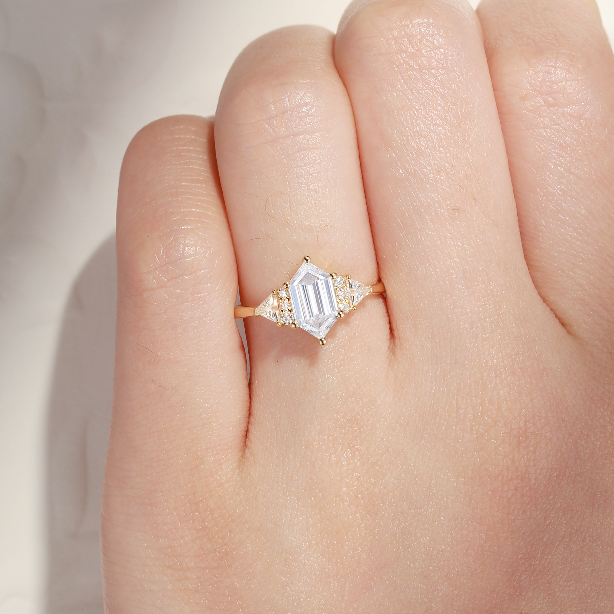 Classic Cluster Long Hexagon Cut Moissanite Engagement Ring