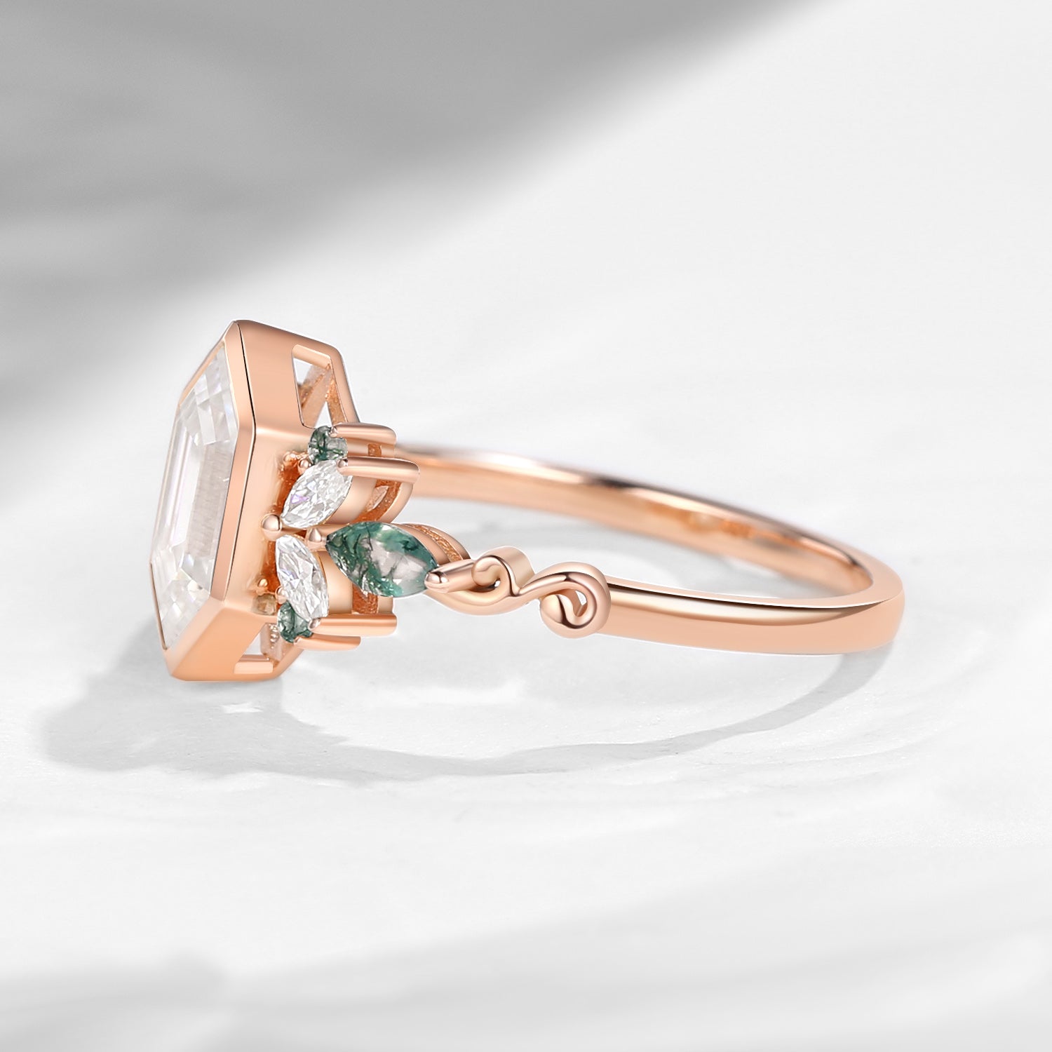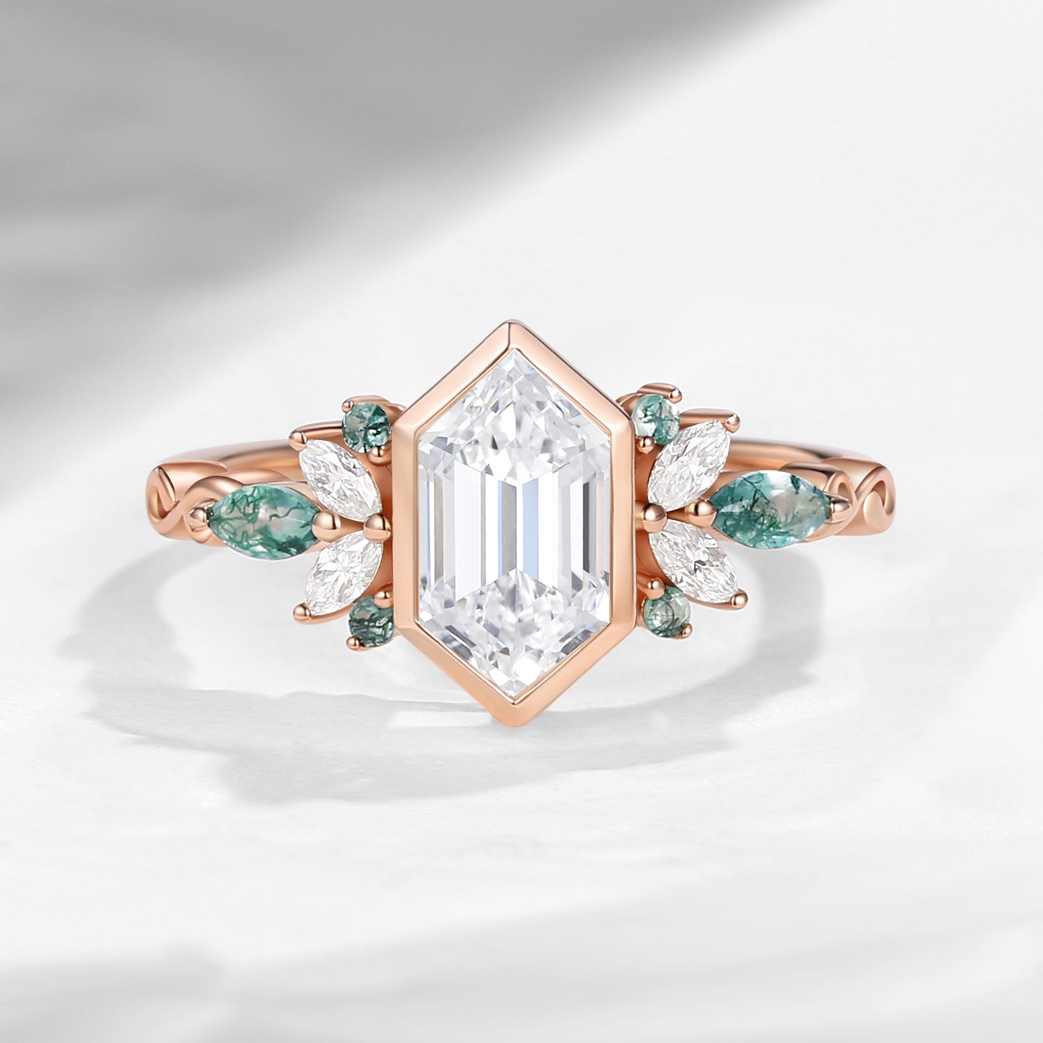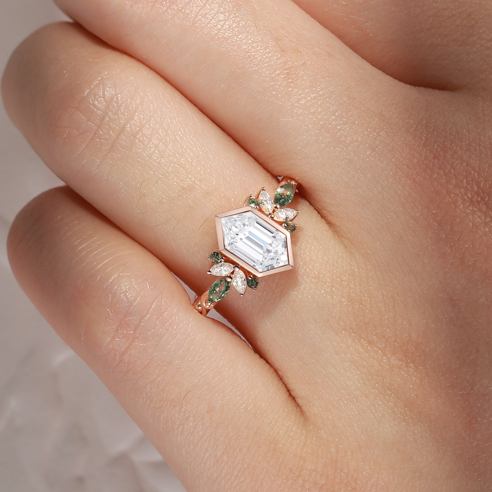 Classic Cluster Long Hexagon Cut Moissanite Engagement Ring