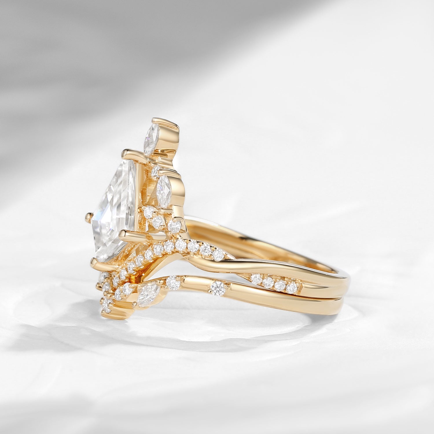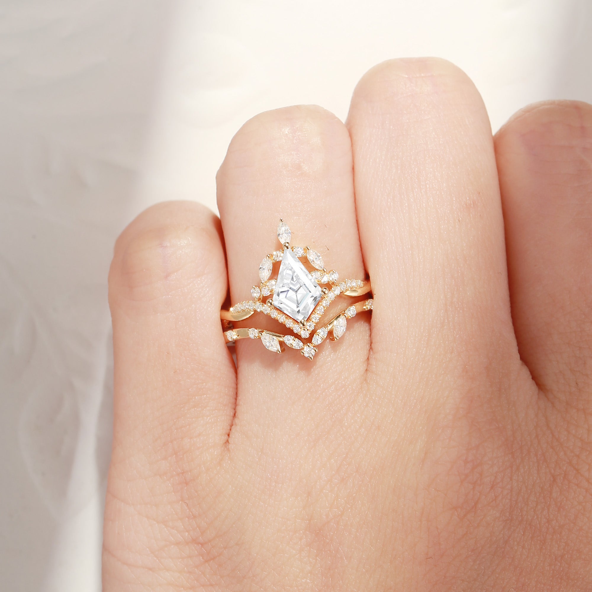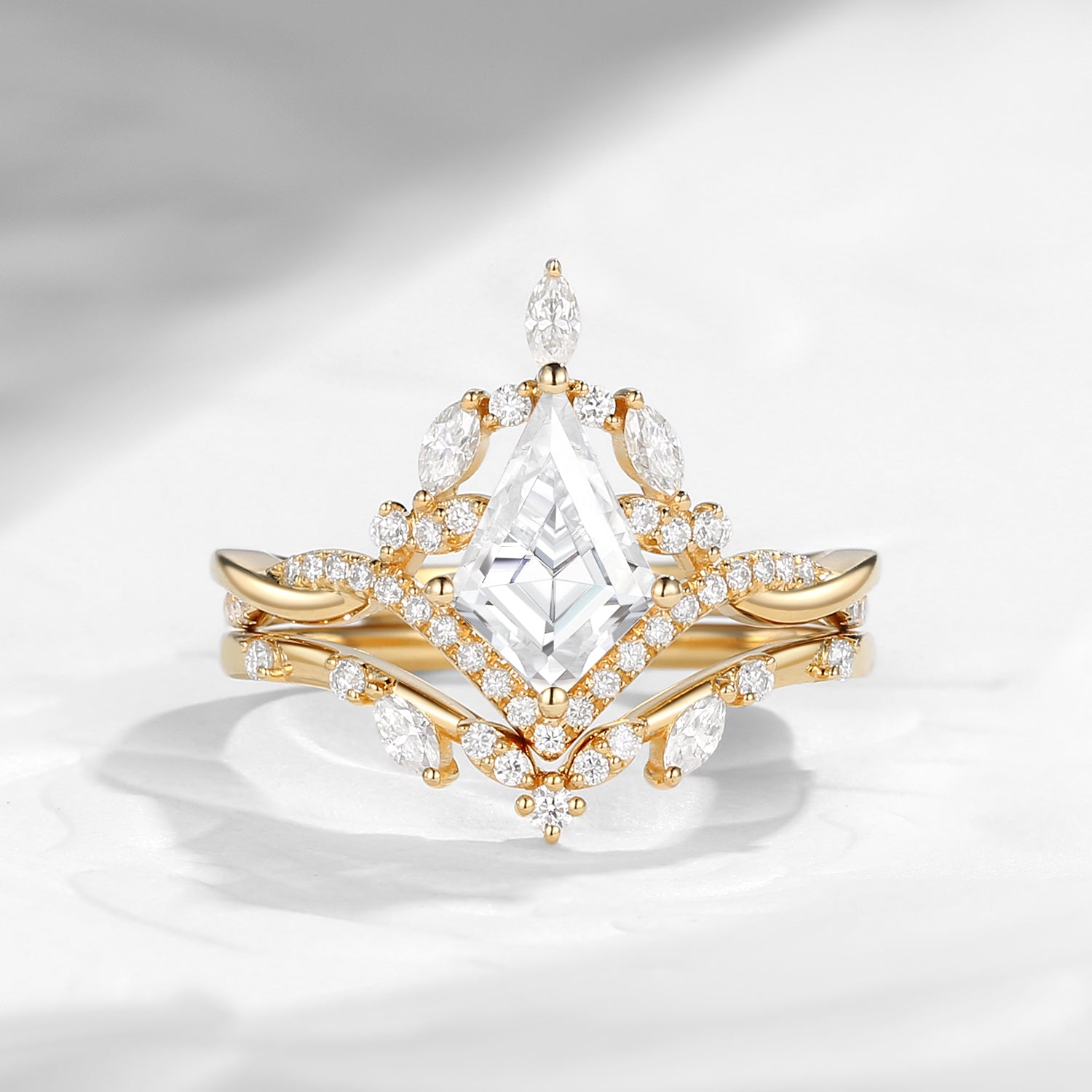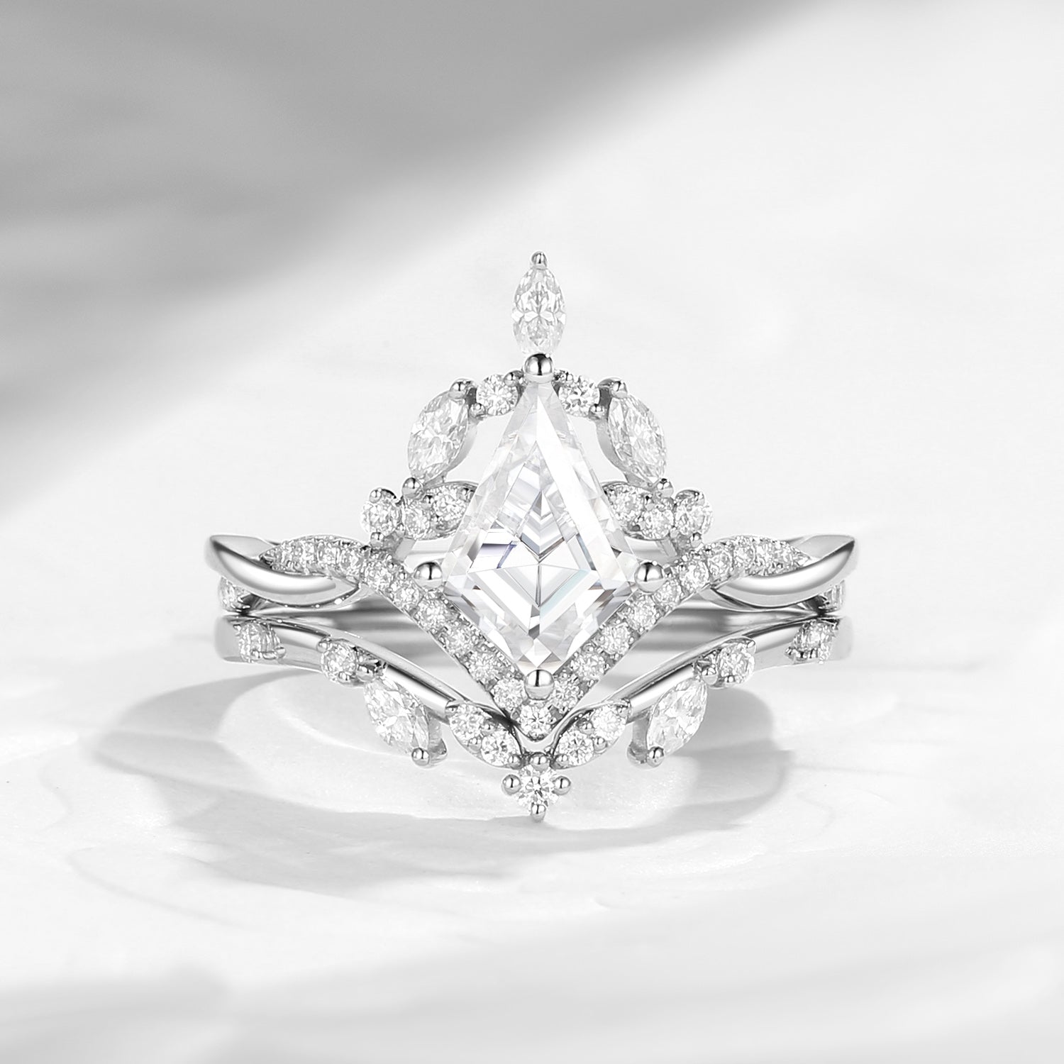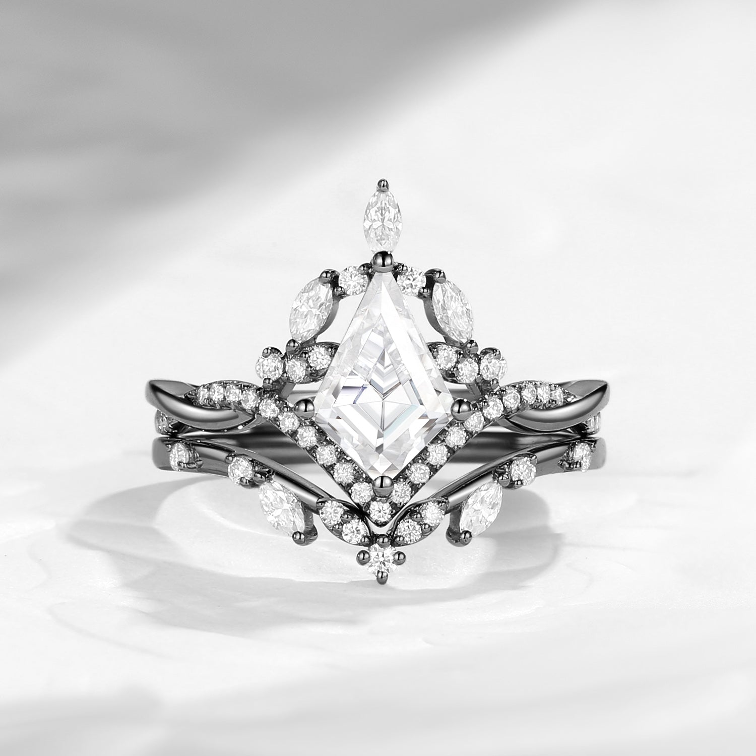 Celtic Moon | Kite Shaped Art Deco Moissanite Bridal Set 2pcs