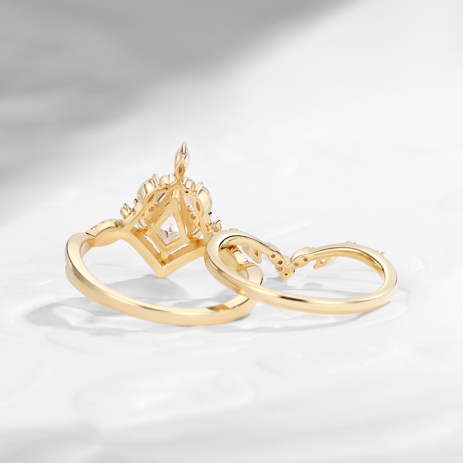 Kite Cut Moissanite Nature Inspired Cluster Engagement Ring Set 2pcs