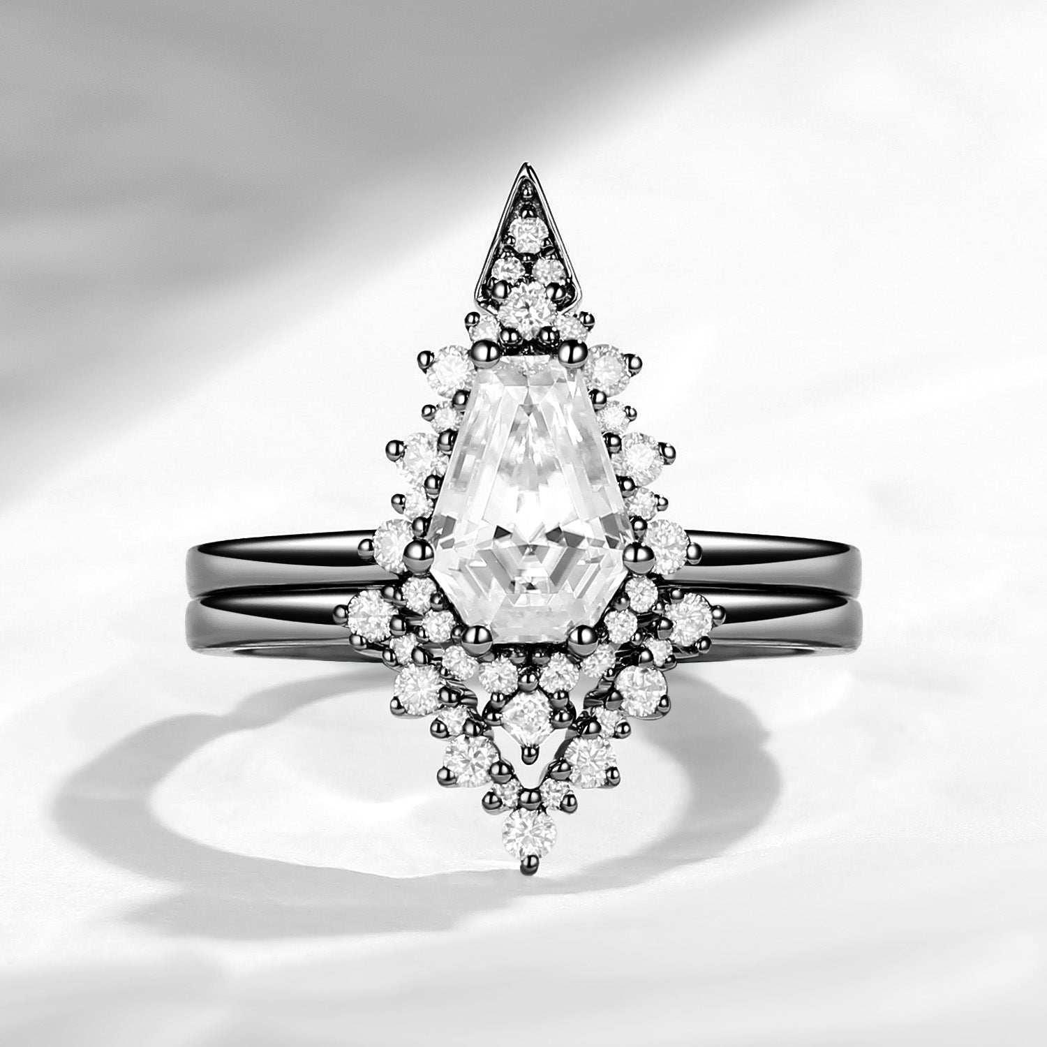 Unique Coffin Moissanite Solitaire Black Gold Engagement Ring Set 2pcs