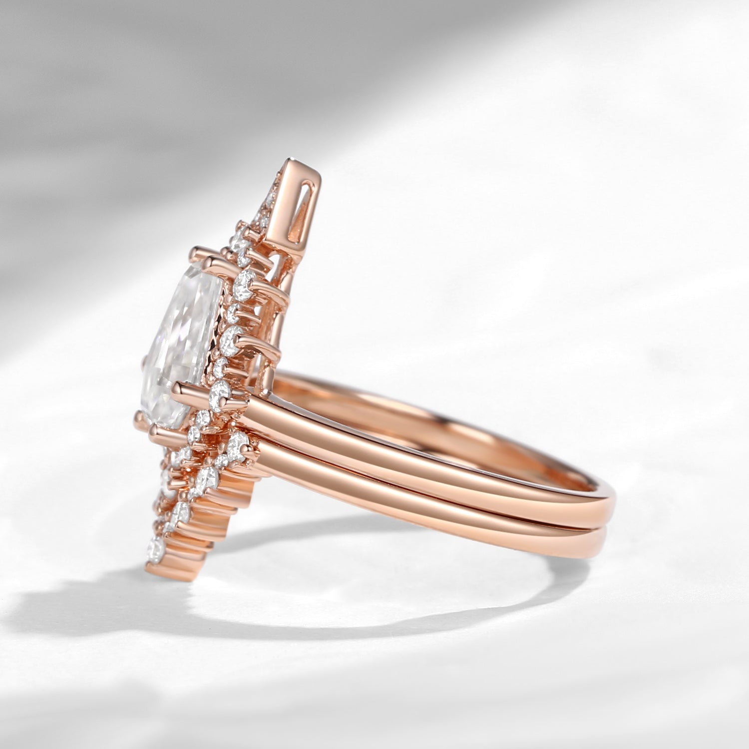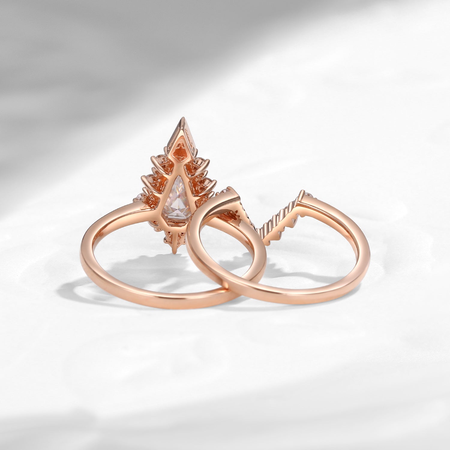 Pear Cut Moissanite Vintage White Gold Bridal Set 2pcs - Bat Ring
