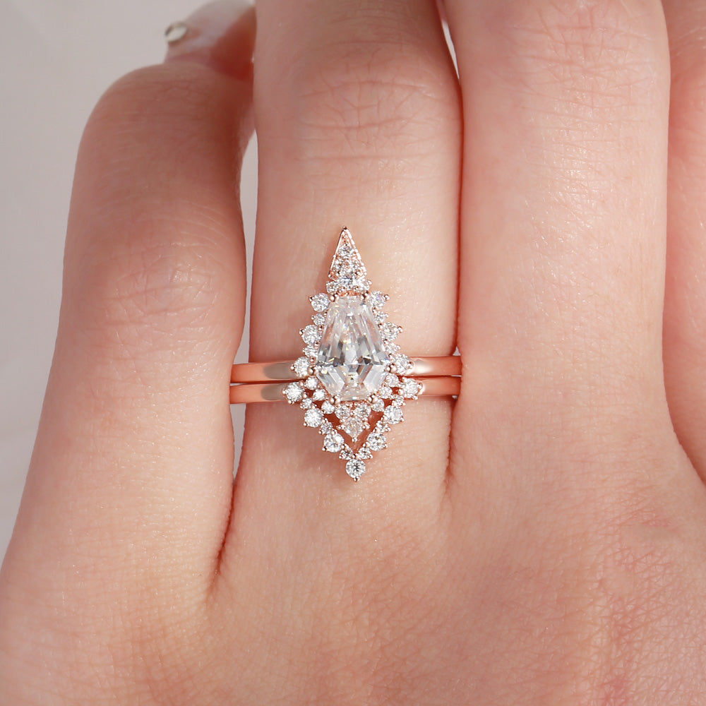 Vintage Inspired Kite Cut Moissanite Engagement Ring
