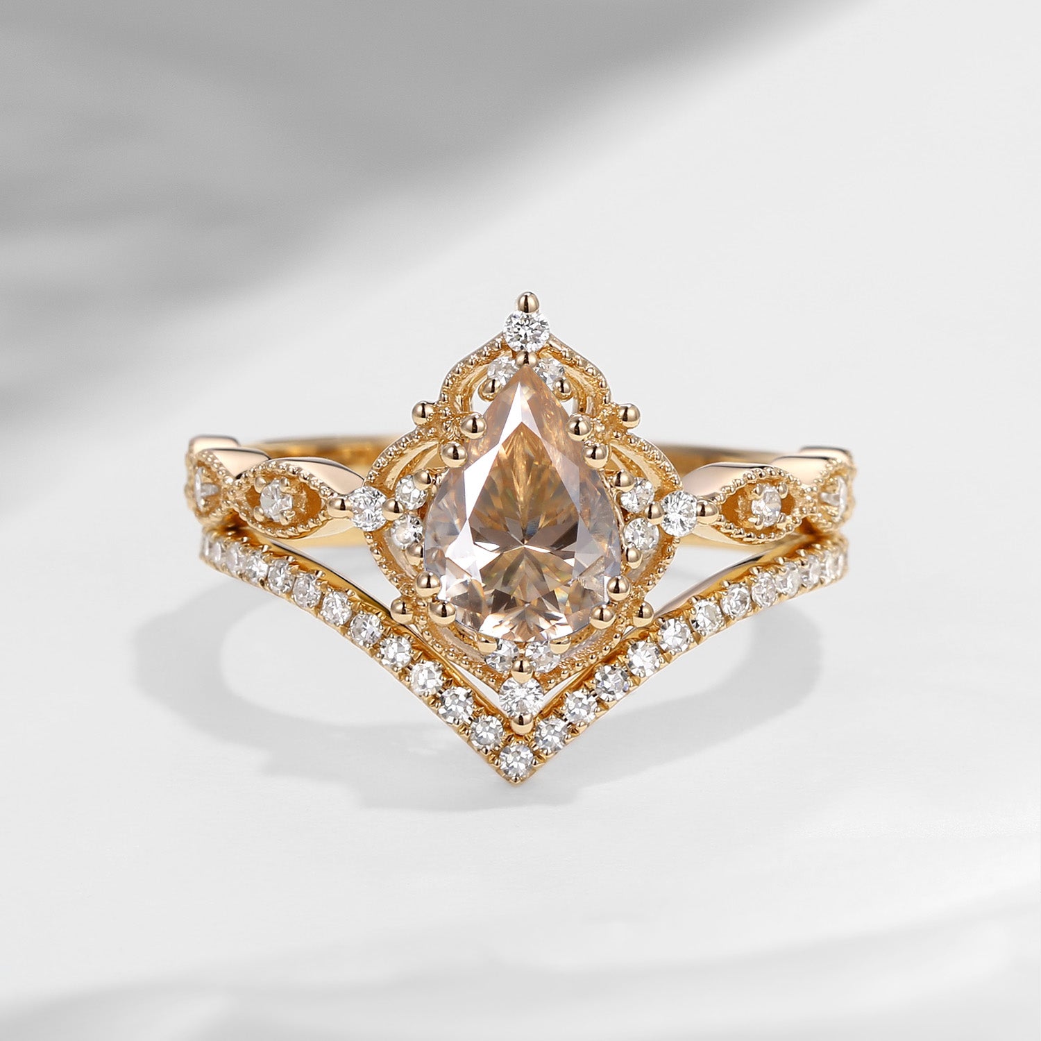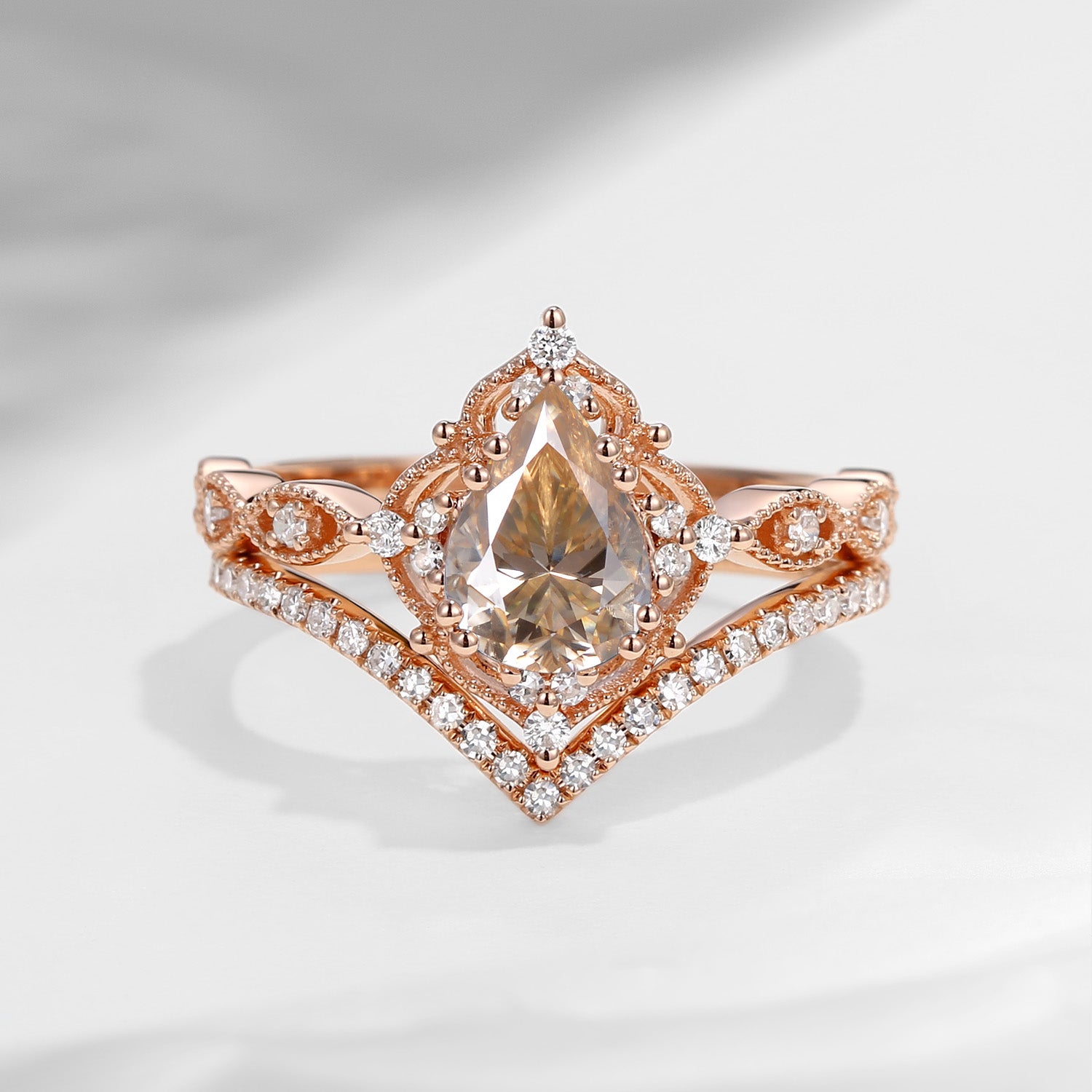 Oval Peach Morganite Engagement Ring Set 2PCS
