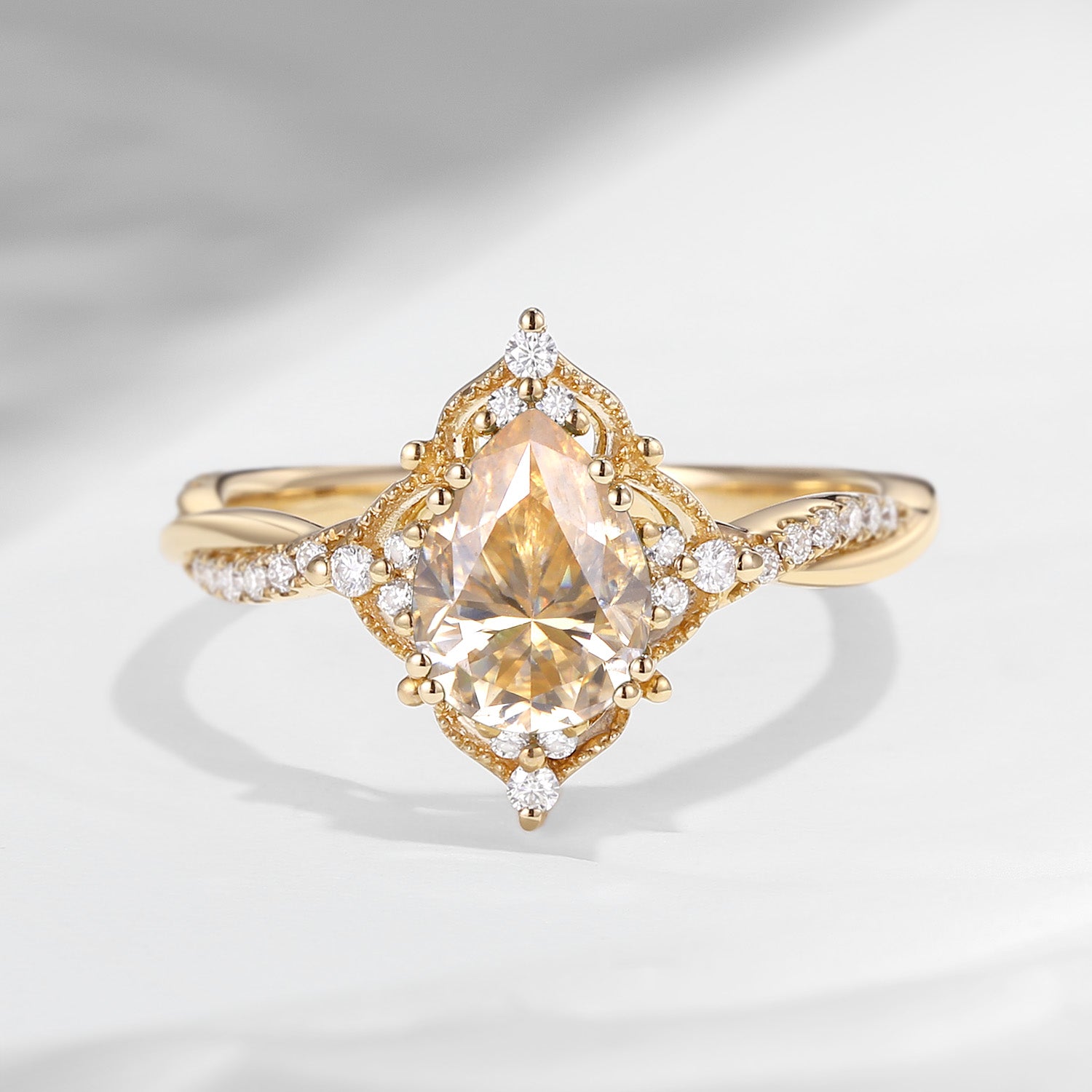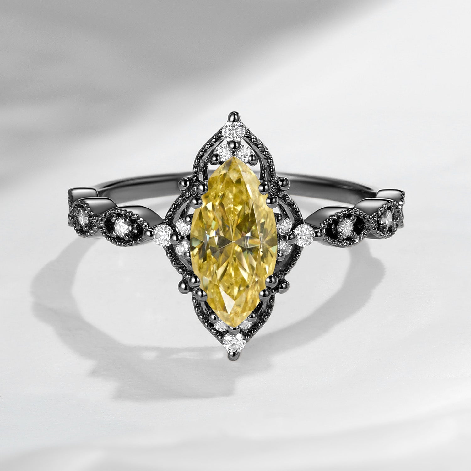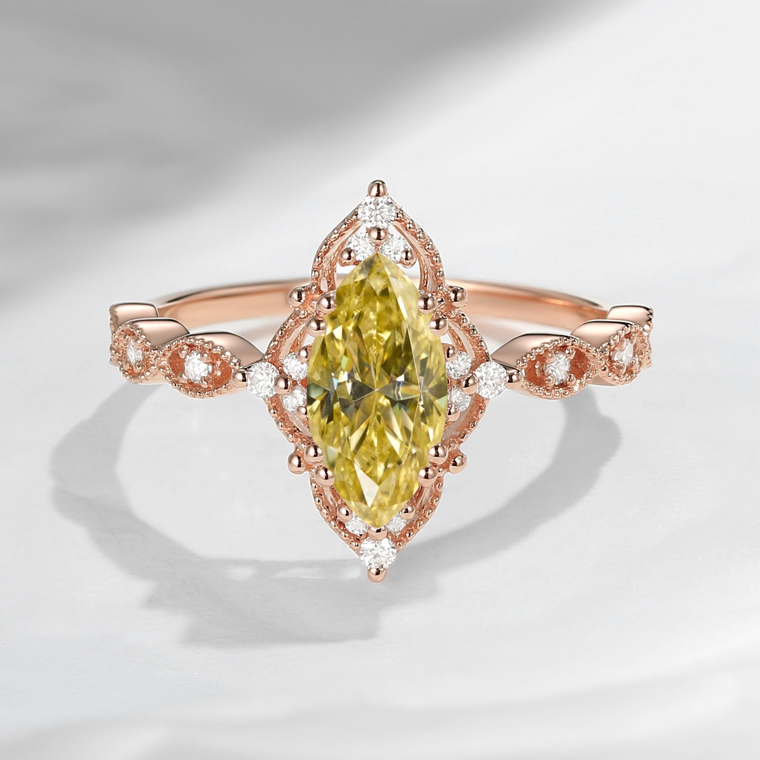 18K Unique Marquise Yellow Moissanite Vintage Inspired Engagement Ring