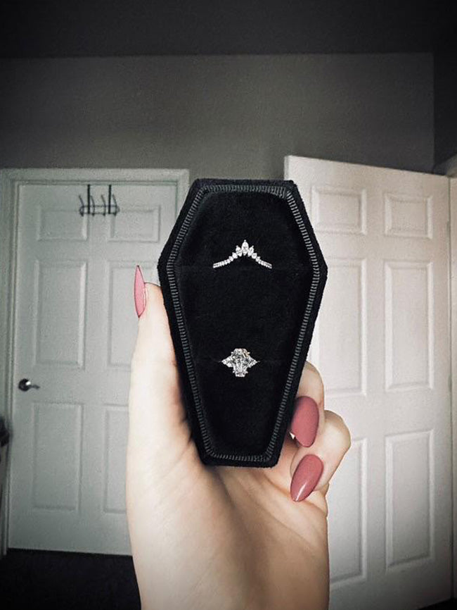 It all began with a friend’s recommendation on Instagram. A devoted fan of all things spooky, she had always dreamed of owning a coffin-shaped diamond. By pure fate, she and her partner shared the same birthstone — a cosmic coincidence that wove itself into their love story.