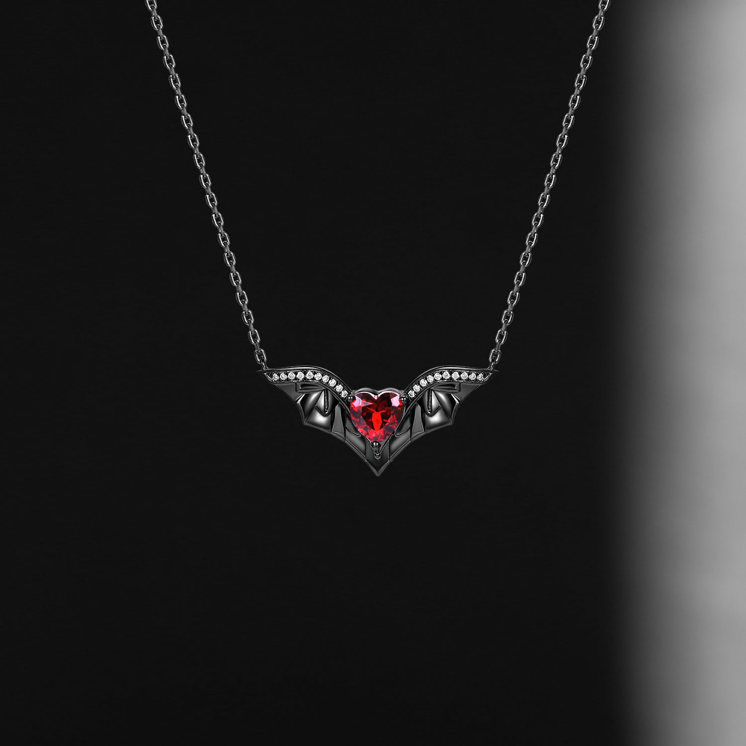 Bat Wing Garnet Heart Cut Necklace - Fly To Love
