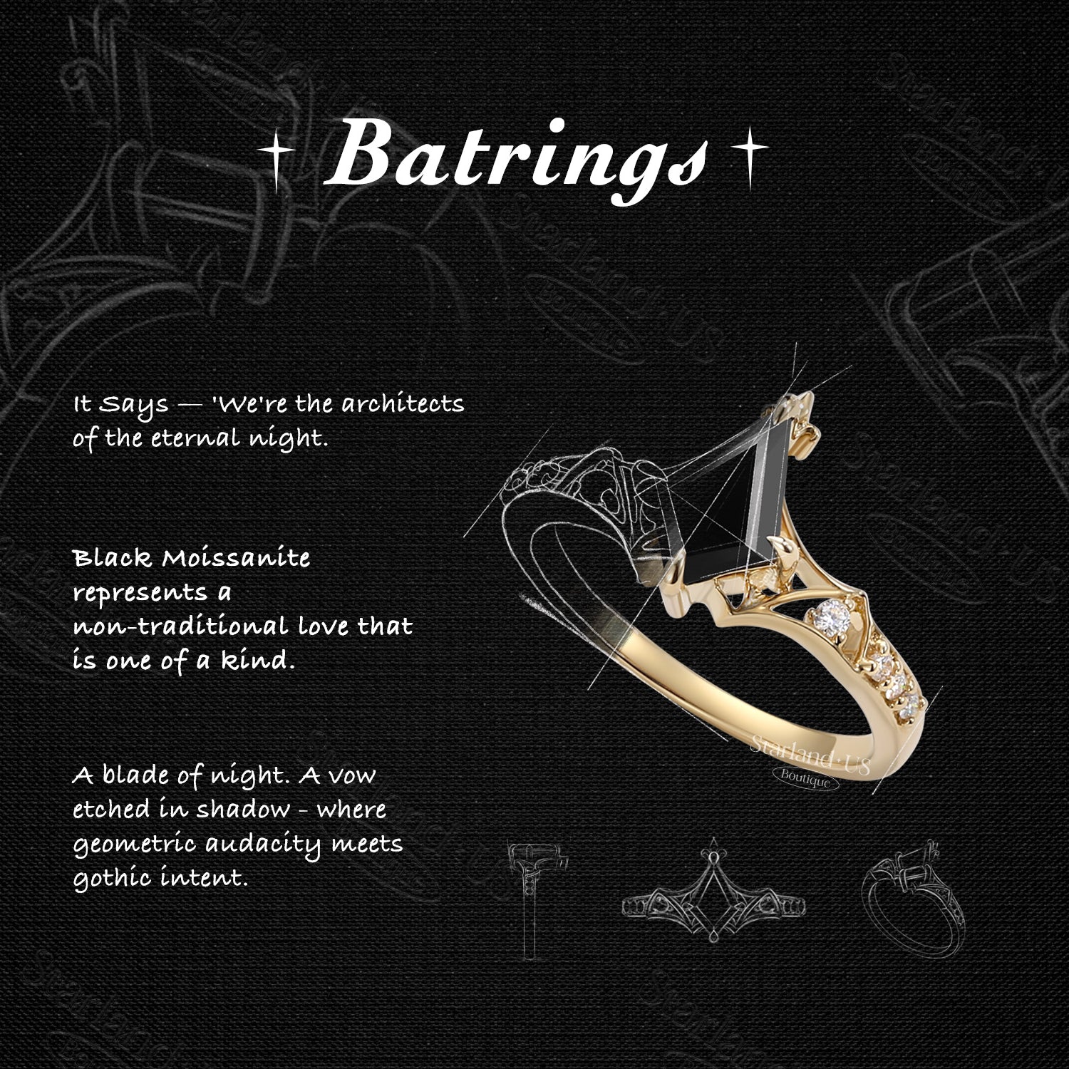 Black Moissanite Kite Cut Unique Engagement Ring - Bat Ring