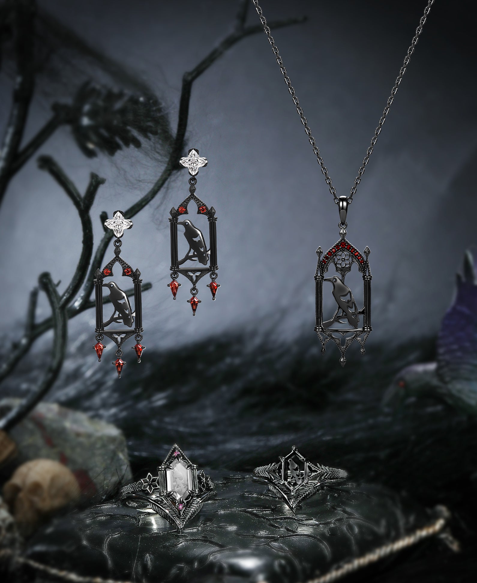 Unique Coffin Shaped Black Moissanite Spider Inspired Engagement Ring Set 2pcs