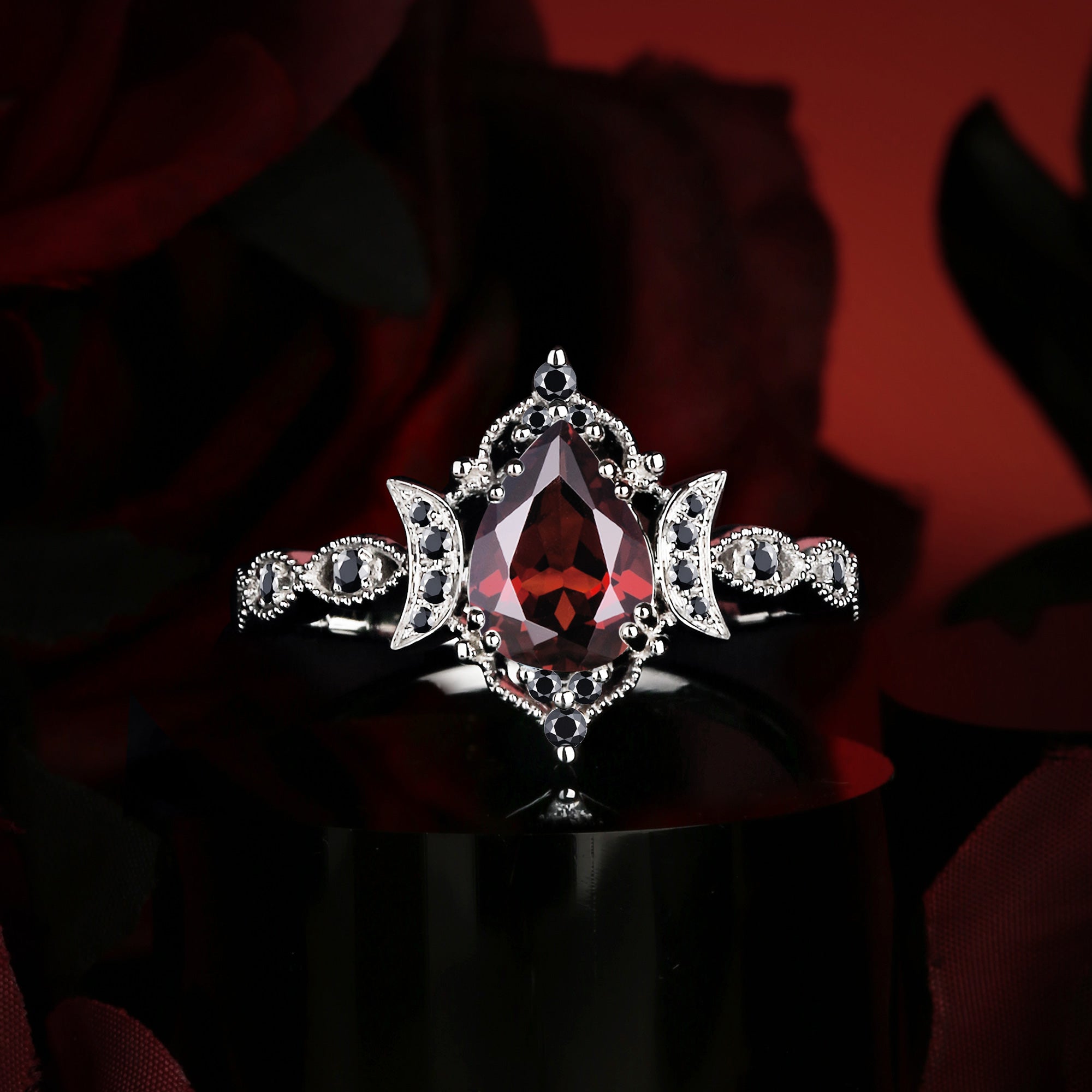 Crescent Moon | Unique Garnet Black Gold Engagement Ring In Pear Shape - Eclipse