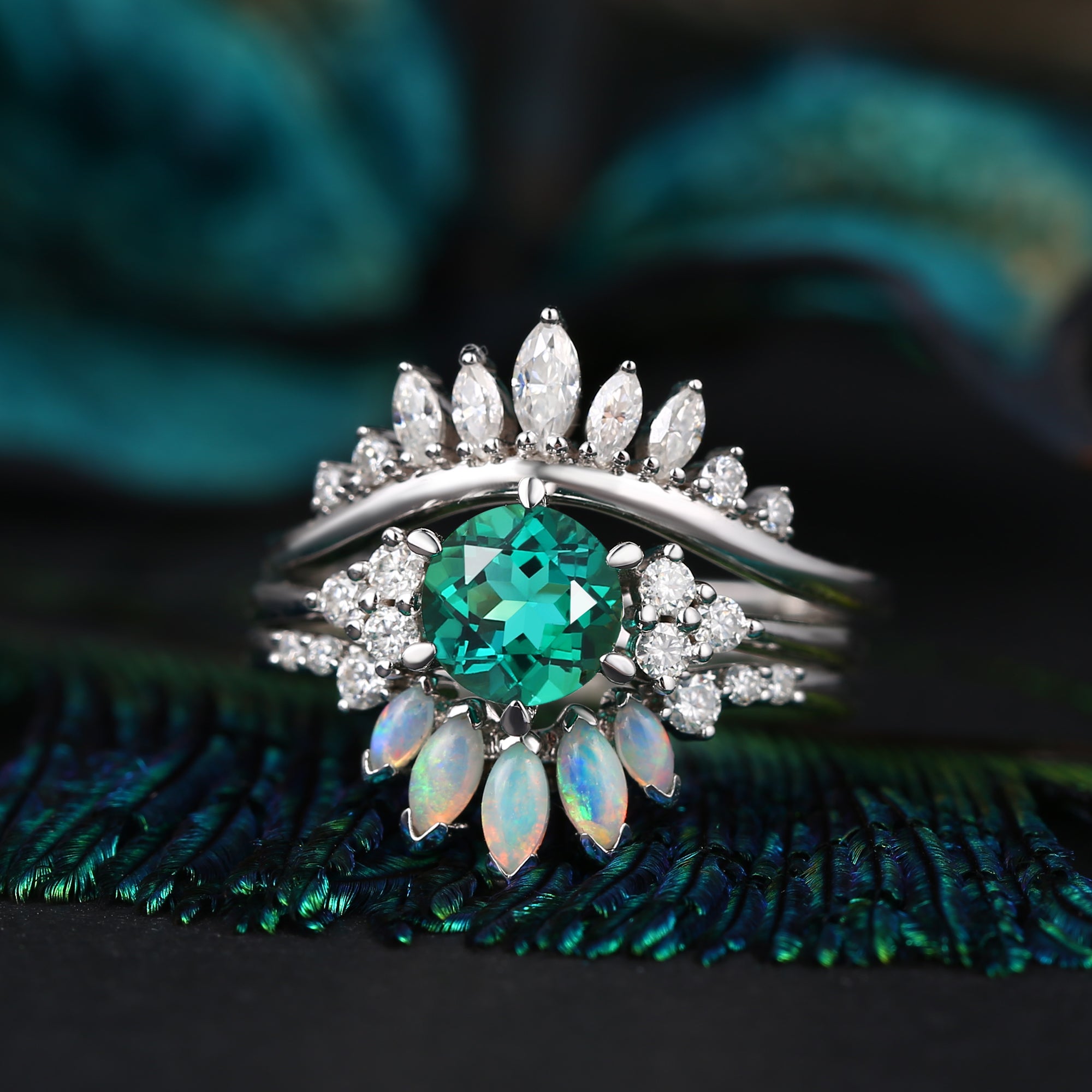 In Stock | Bette‘s Eyes | Lab Emerald Engagement Ring Set 3pcs