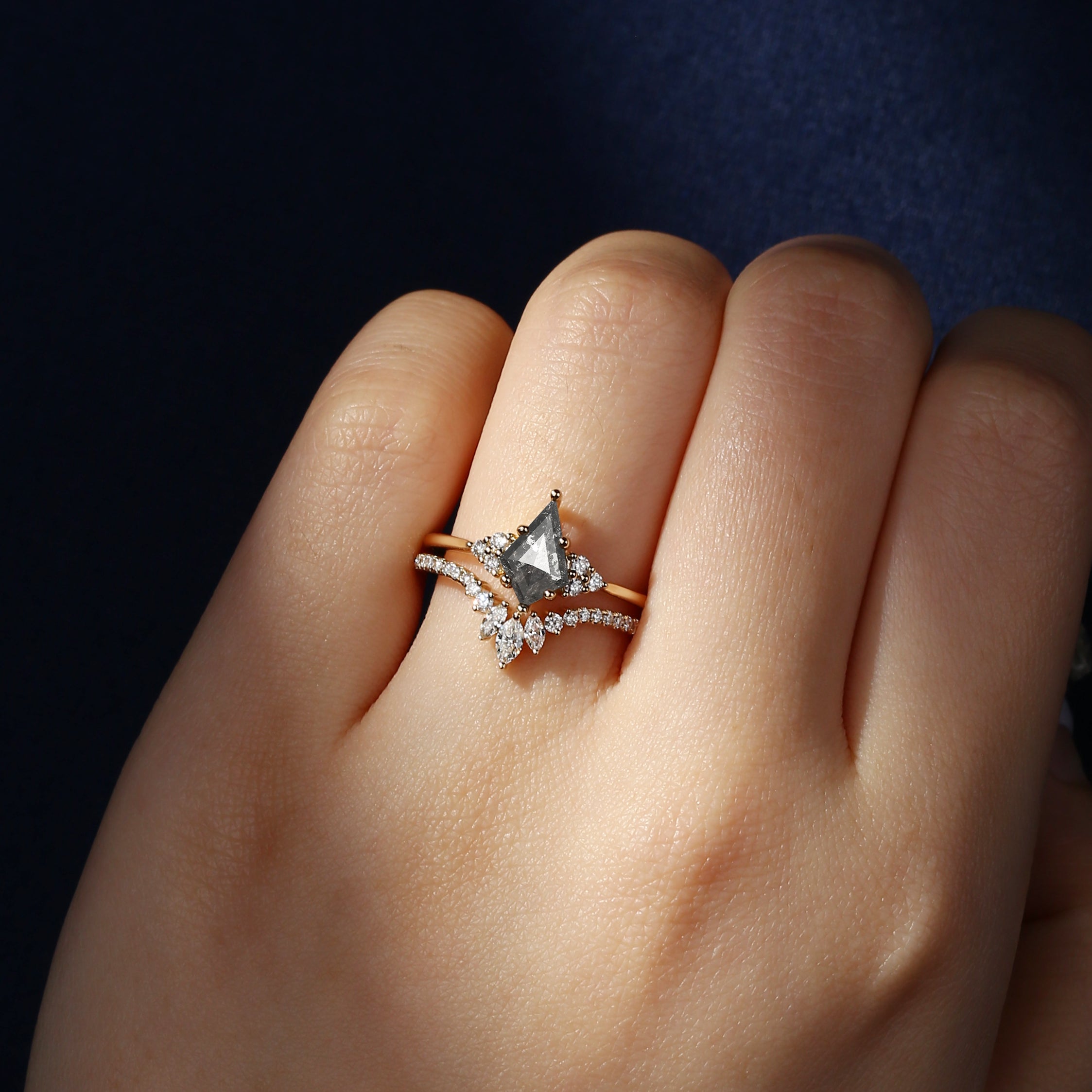 Crescent Moon | Pear Shaped Salt and Pepper Diamond Engagement Ring Set 2pcs - Luna