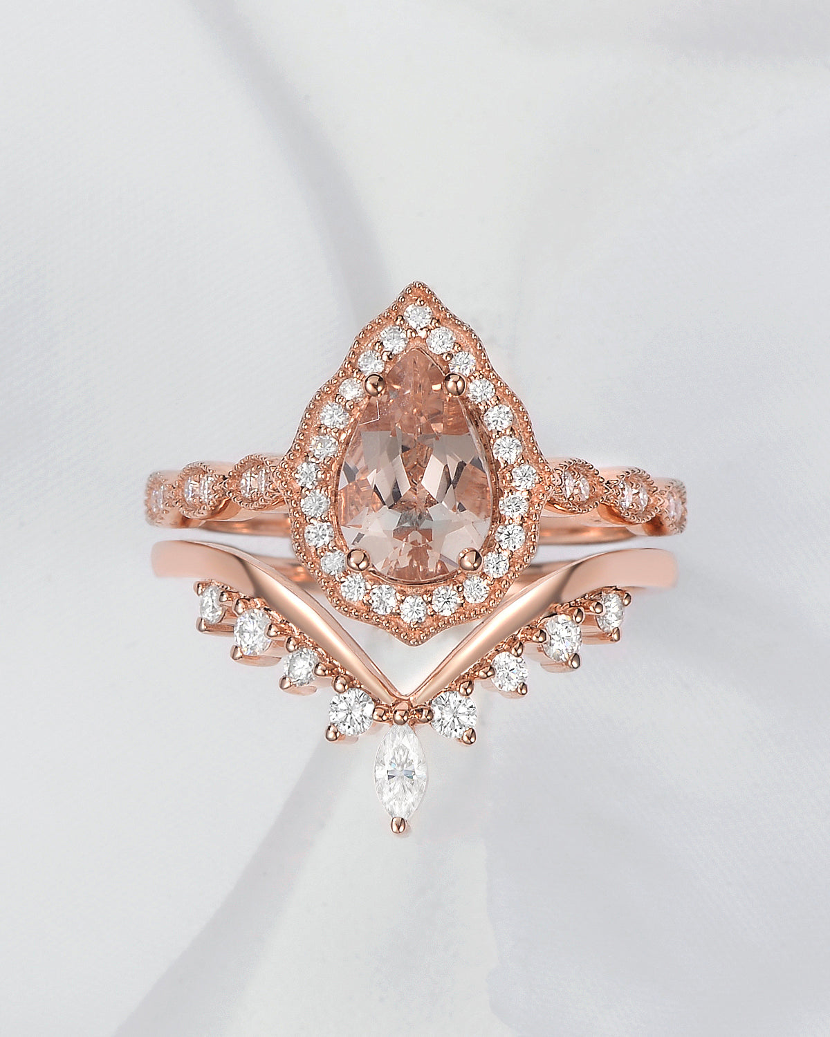 1.5ct Pear Shaped Morganite Engagement Ring Set 2pcs - Evelyn