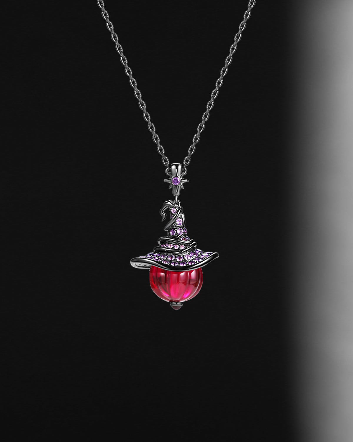 Crescent Moon | Coffin Cut Lab Purple Ruby 'Black Statement' Ring Set 2pcs