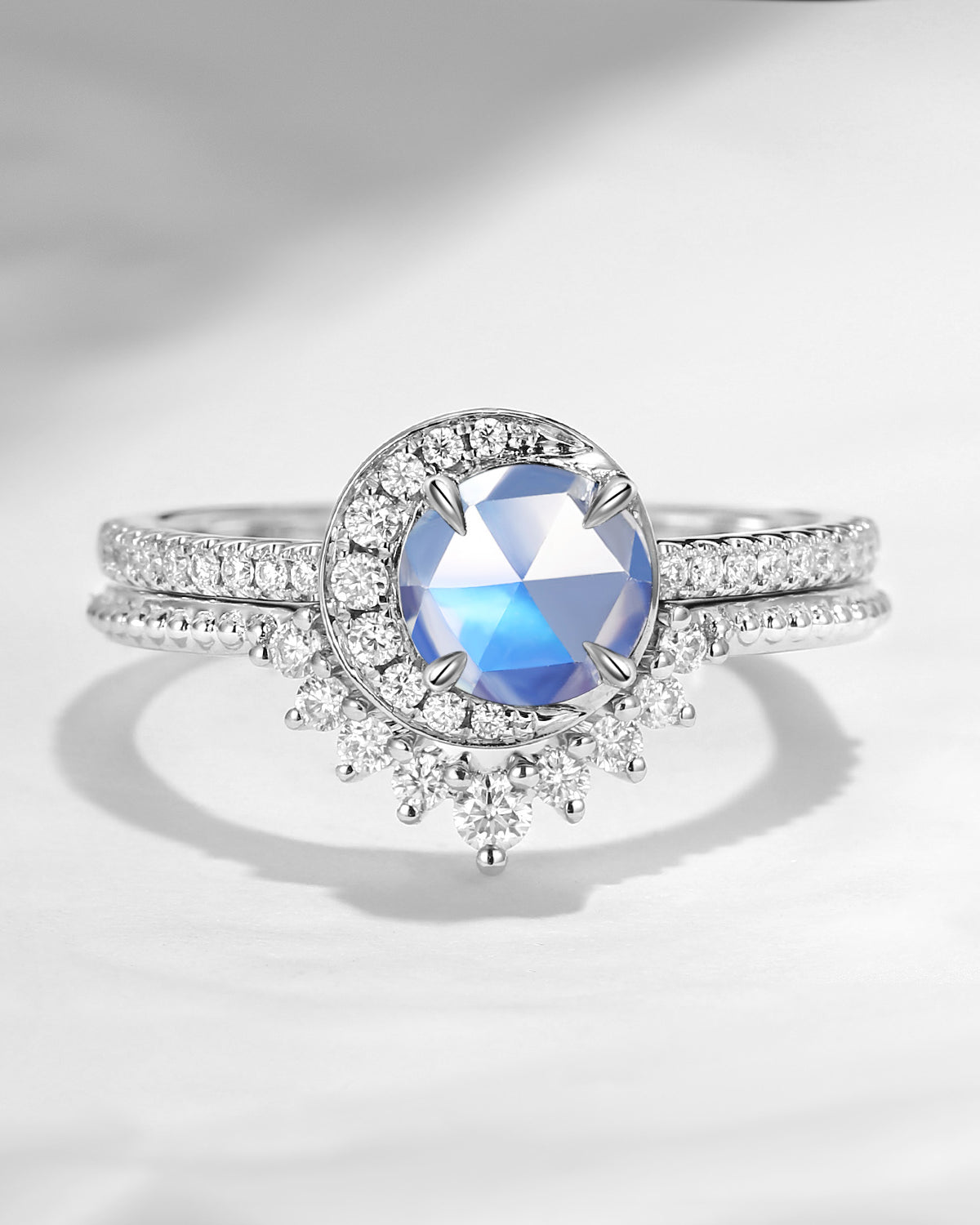 Crescent Moon | Unique Moonstone Engagement Ring Set 2pcs - Full Moon