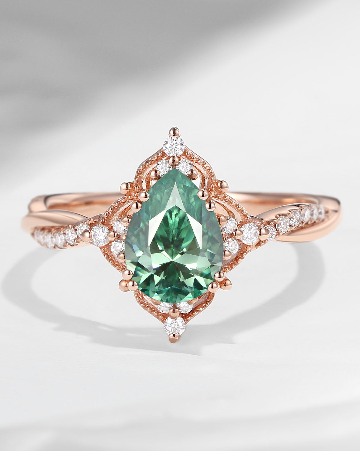 Vintage Style Teal Blue Green Moissanite Infinity Engagement Ring