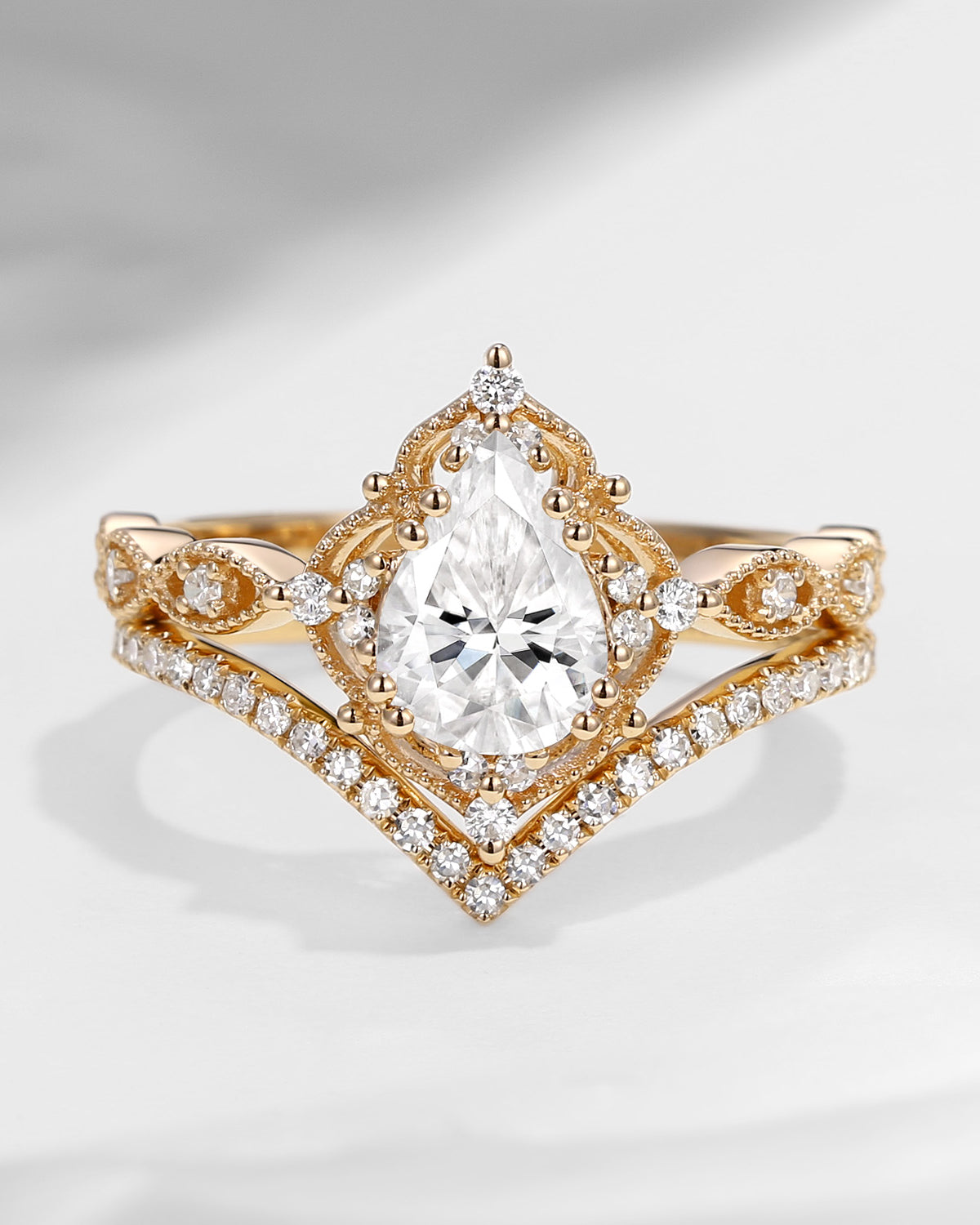1.5ct Pear Shaped Moissanite Engagement Ring Set 2pcs - Evelyn