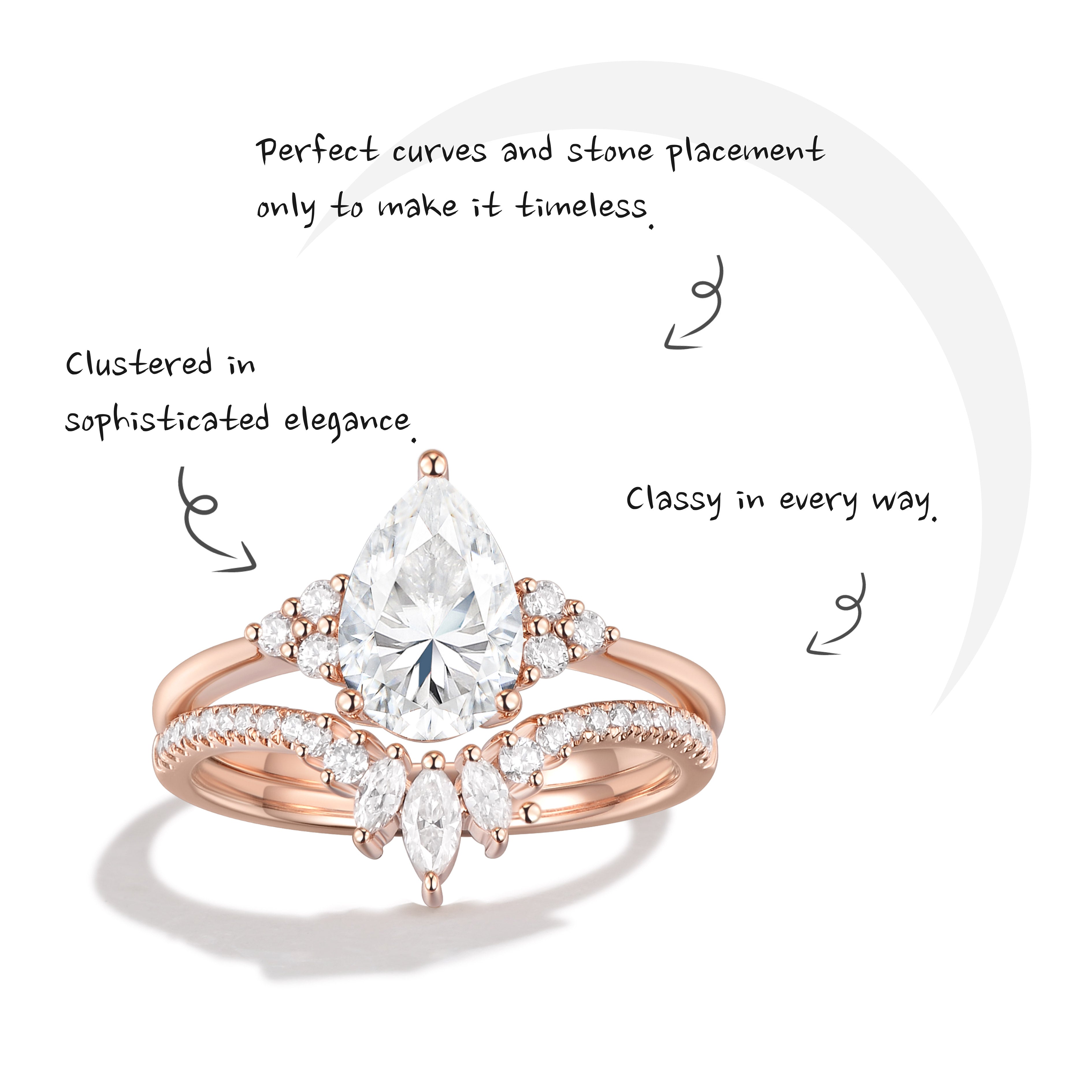 View All1.5ct Pear Shaped Classic Cluster Moissanite Engagement Ring Set 2pcs - Vivian