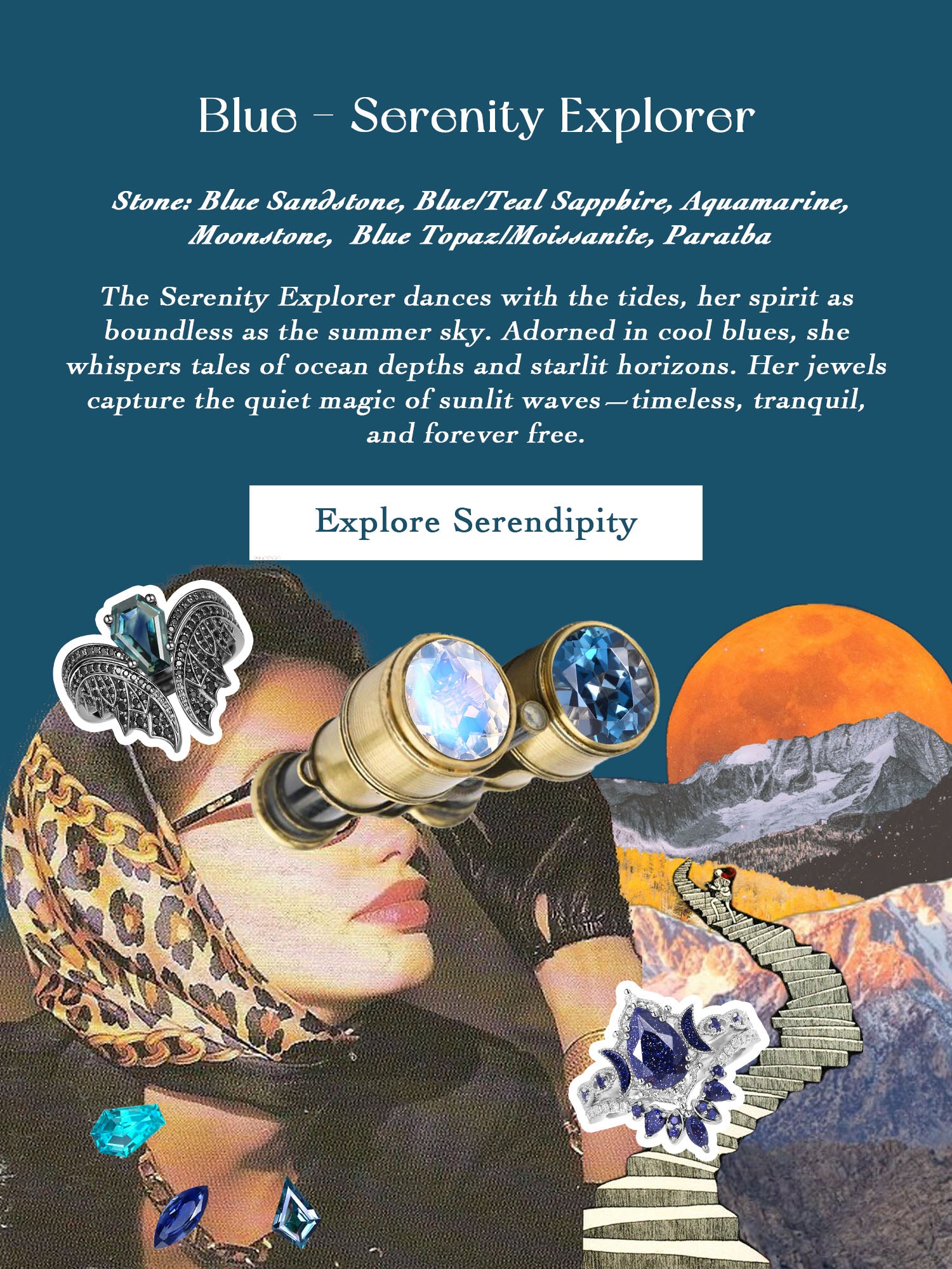 Crescent Moon | Round Blue Sandstone Engagement Ring Set 3PCS - Full Moon