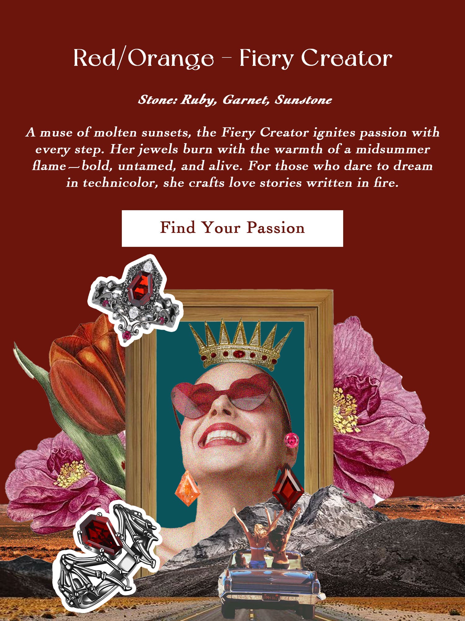 Crescent Moon | Coffin Cut Lab Purple Ruby 'Black Statement' Ring Set 2pcs