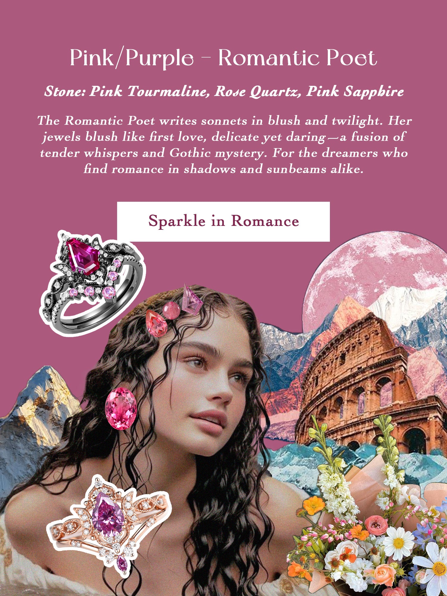 Firework Cut Natural Pink Tourmaline Coffin Black Gold Bridal Set 2pcs - Bat Ring