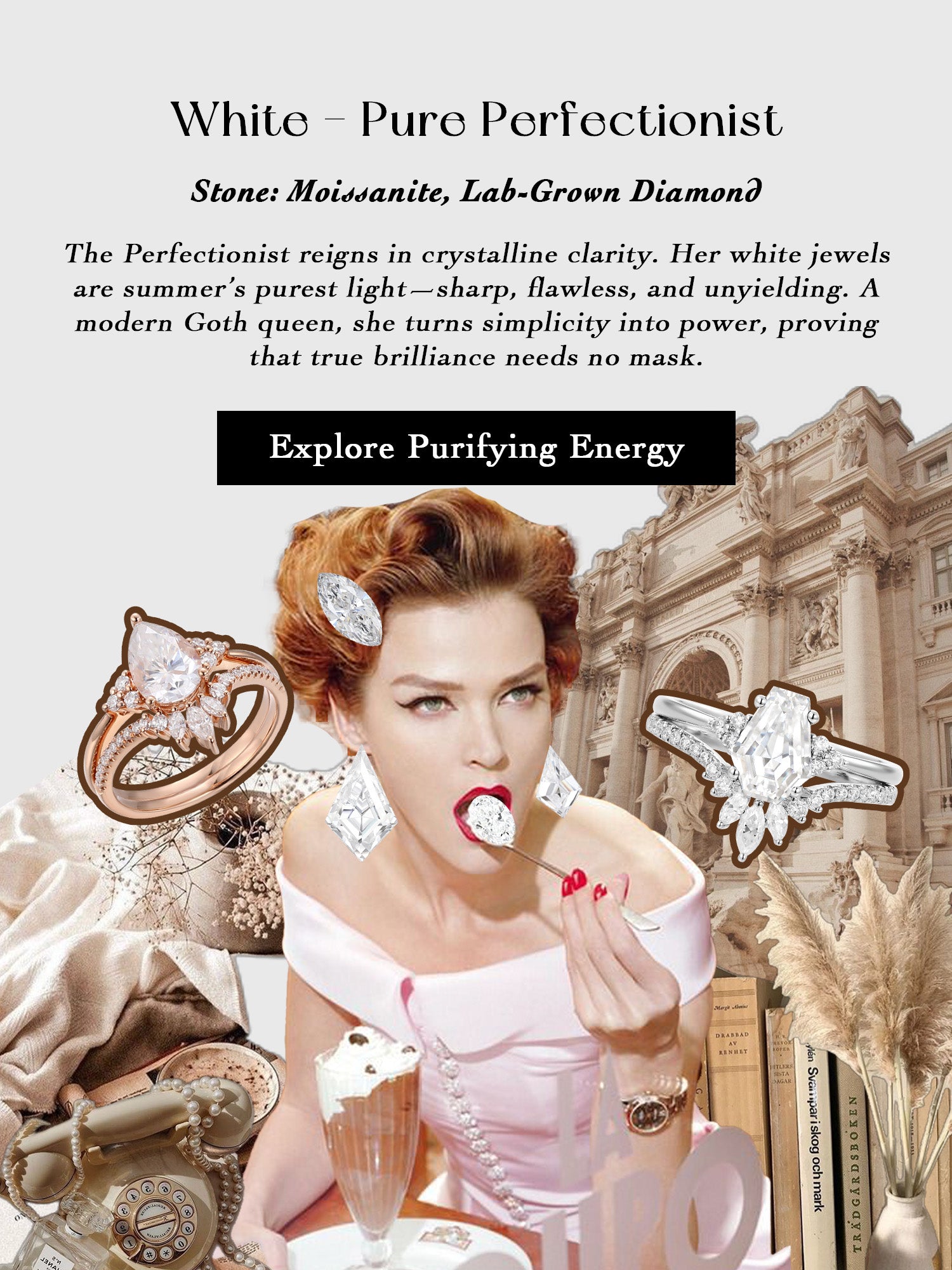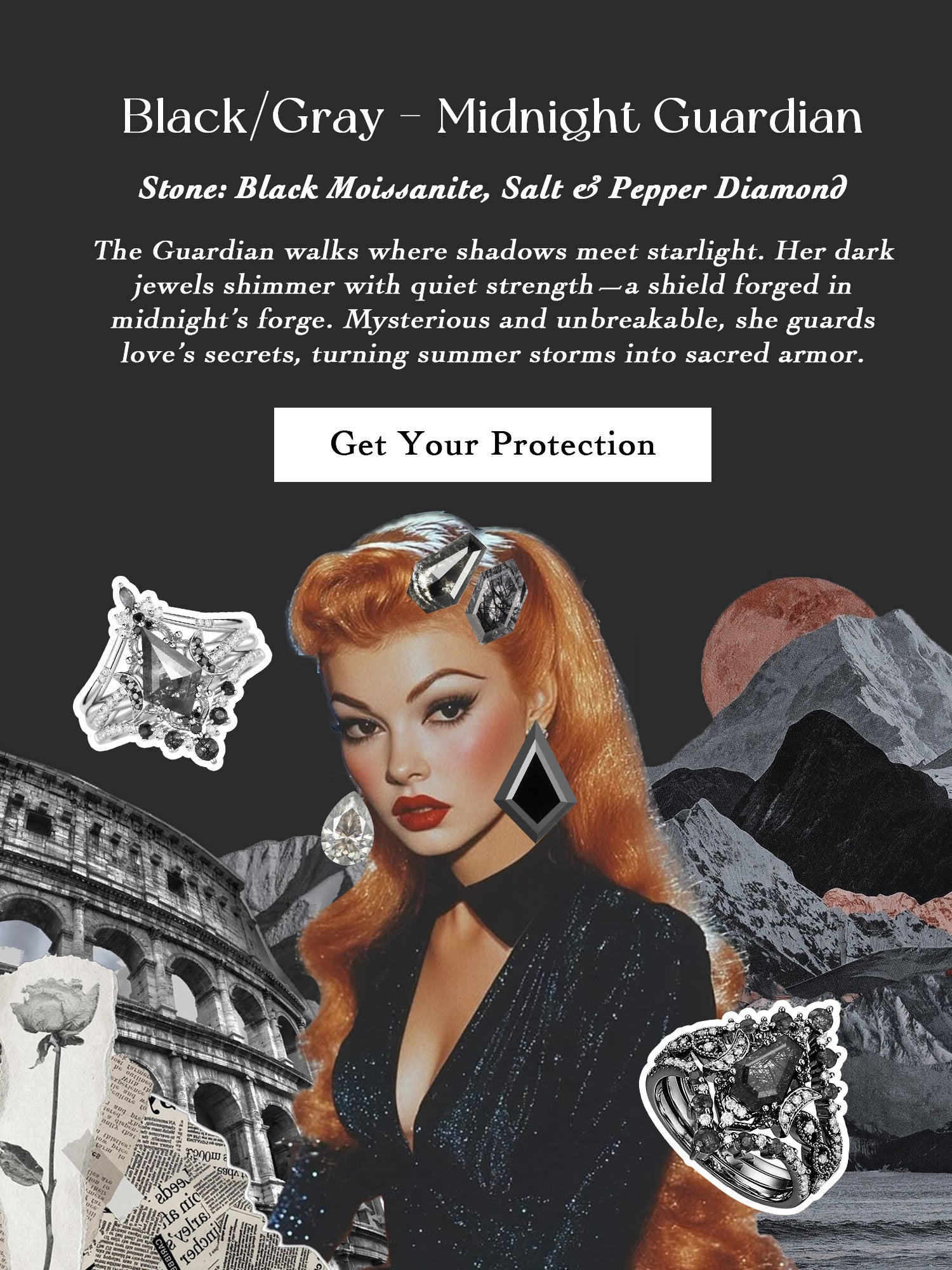Crescent Moon | Rhombus Cut Salt And Pepper Diamond 'Noir' Engagement Ring Set 3pcs