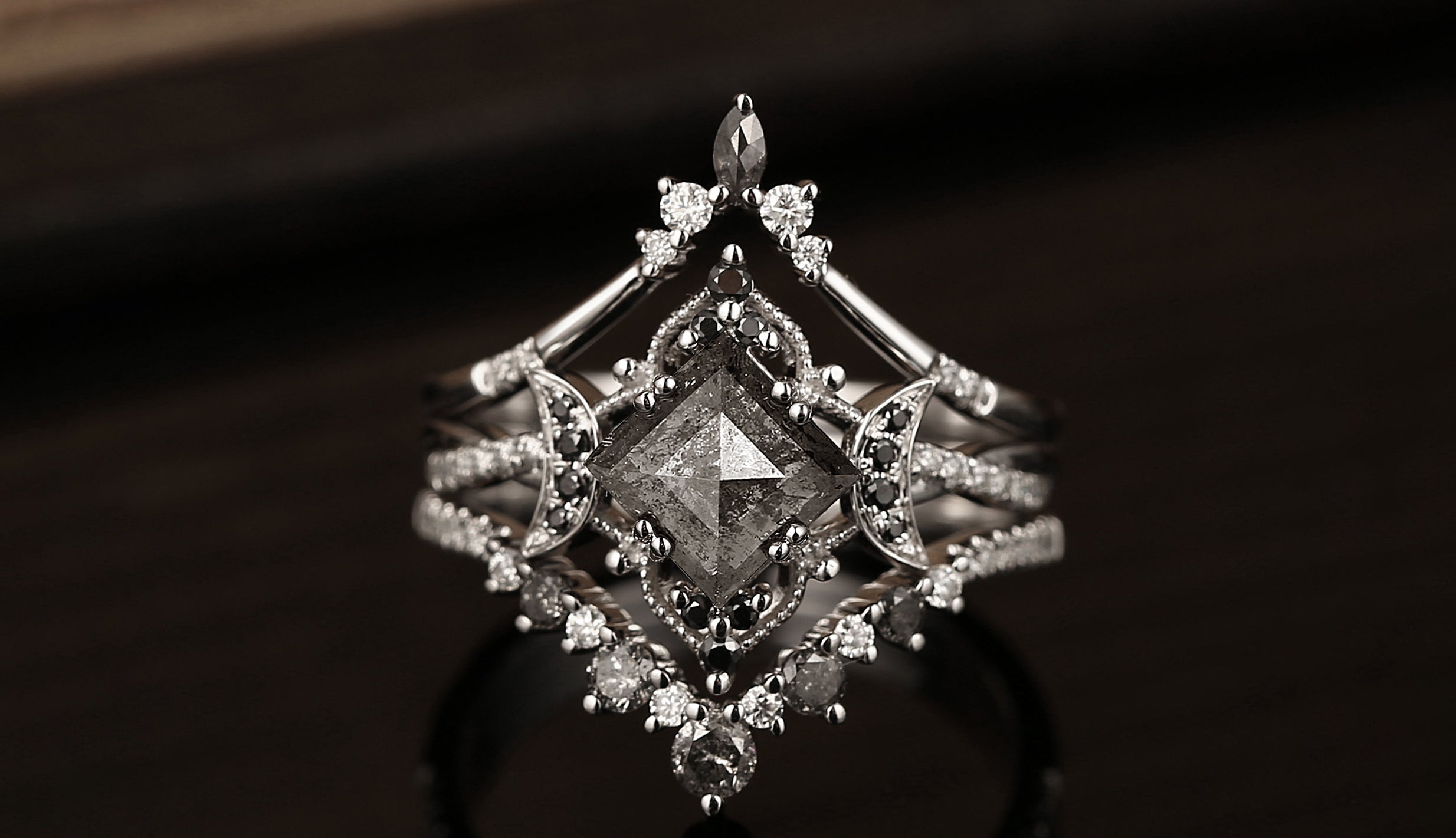 Crescent Moon | Unique Coffin Salt And Pepper Diamond 'Evermore' Engagement Ring