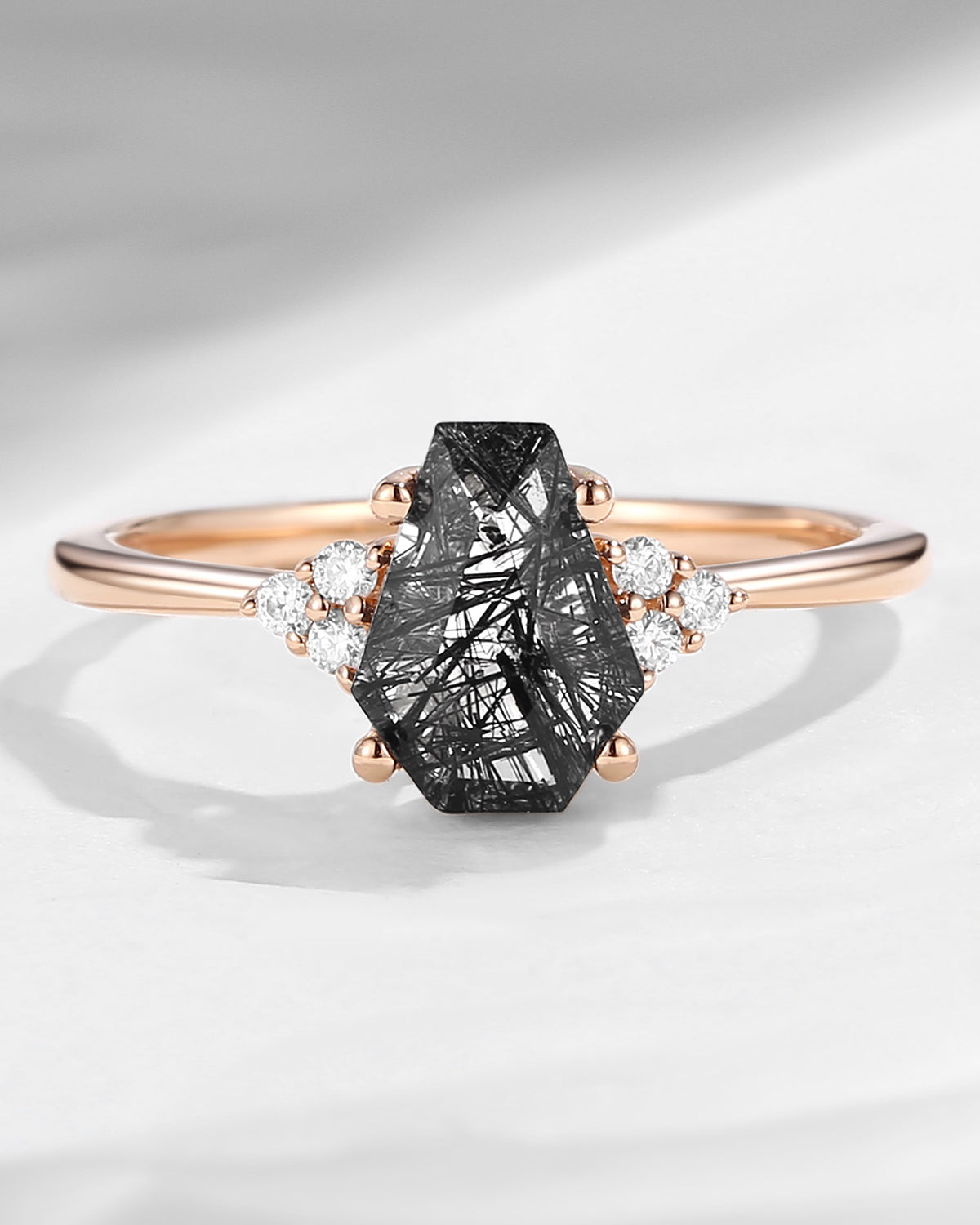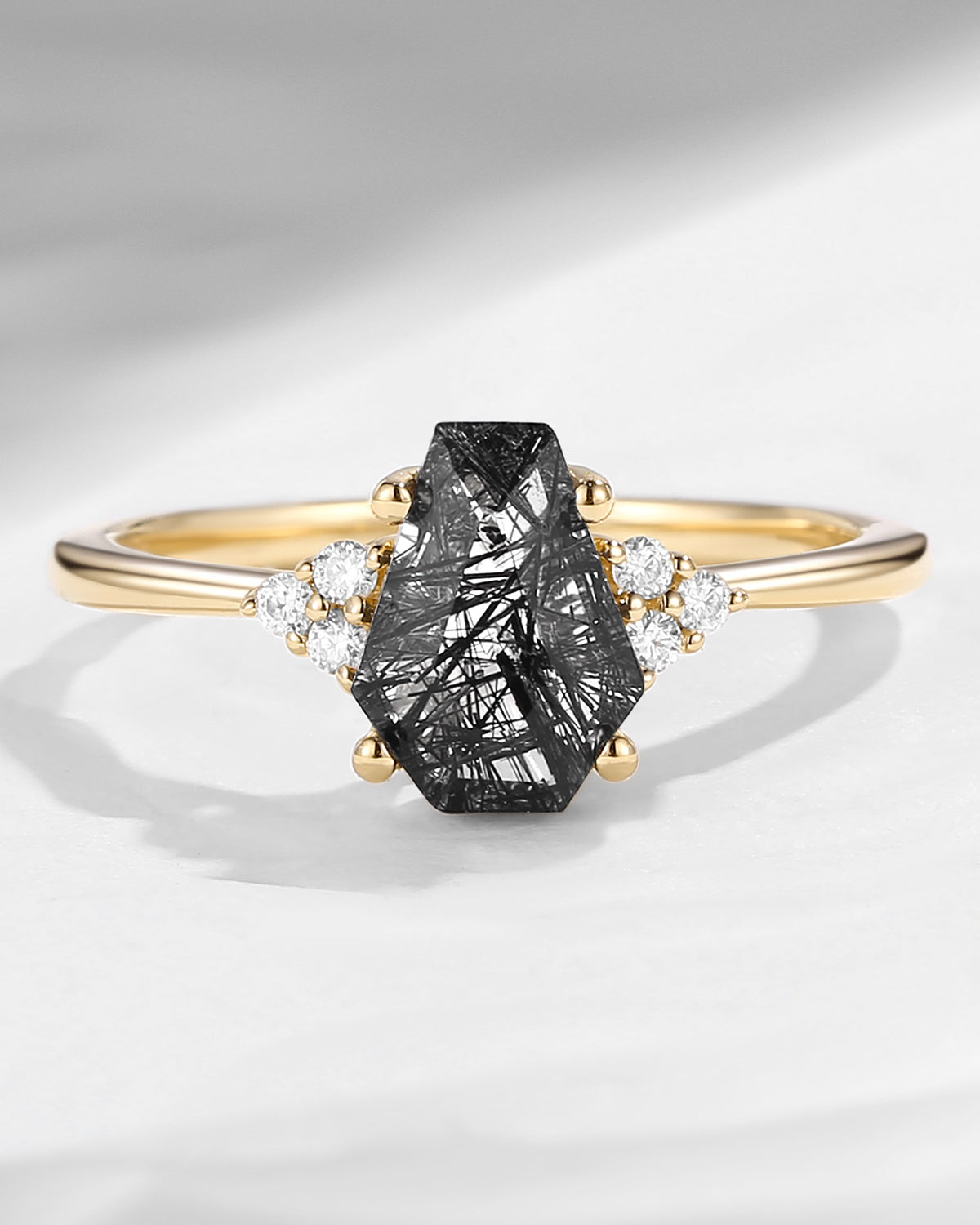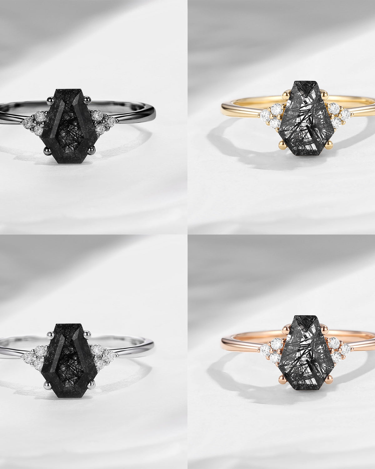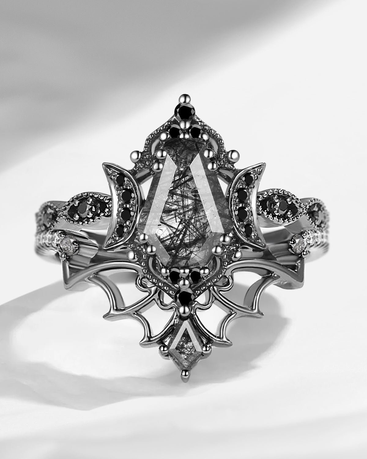 Crescent Moon | Coffin Cut Black Rutilated Quartz Ring 3pcs 18k - Till Death Do Us Part