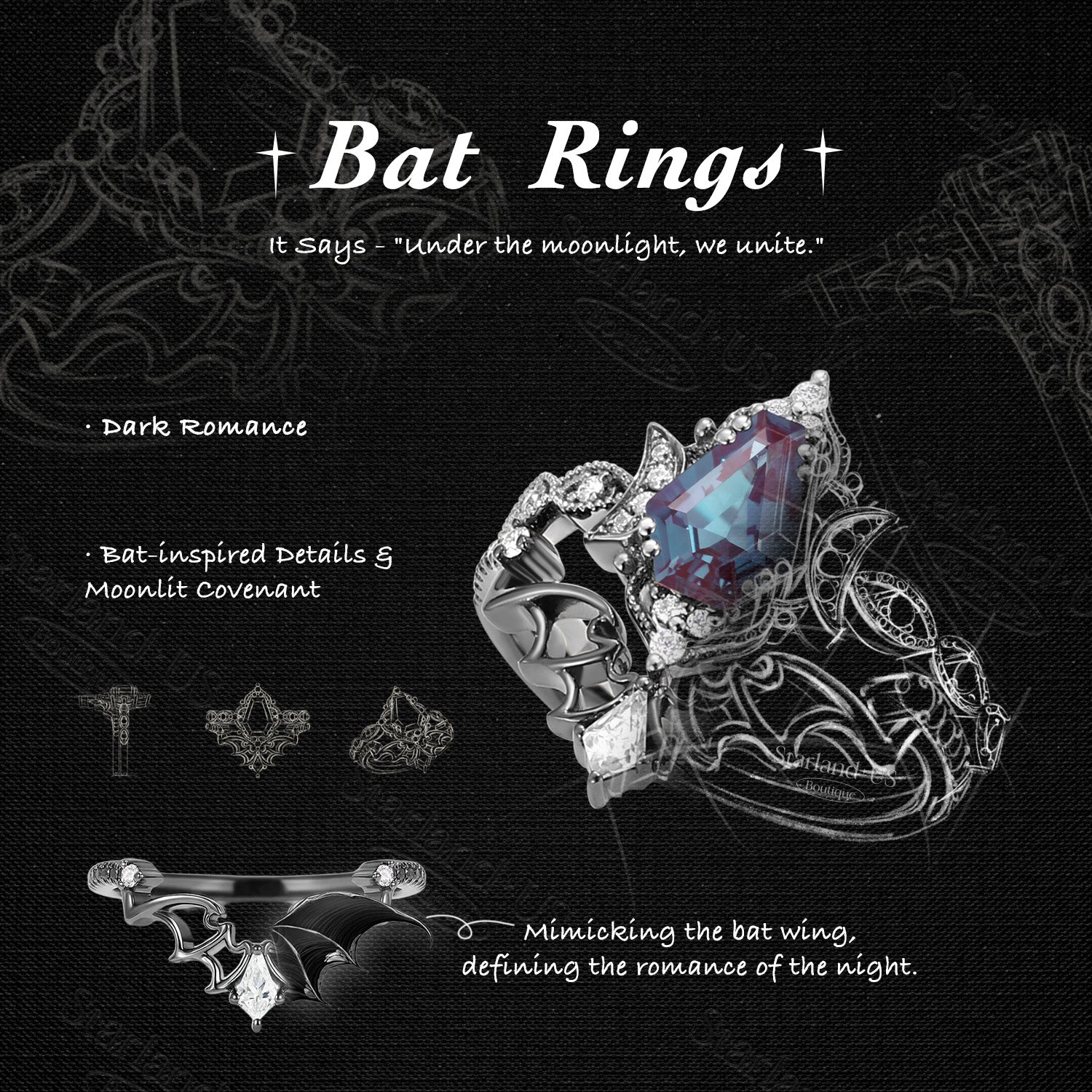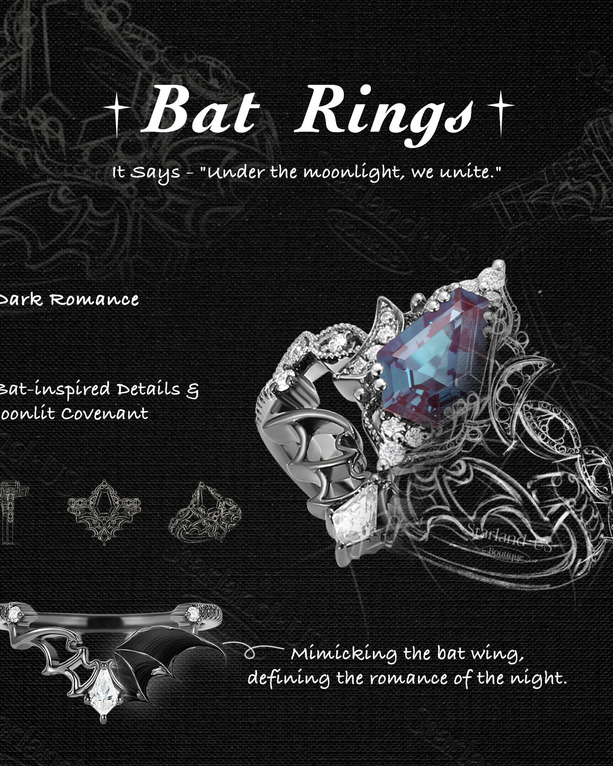 Unique Coffin Alexandrite Engagement Star Ring Set 2pcs - Coffin Kite
