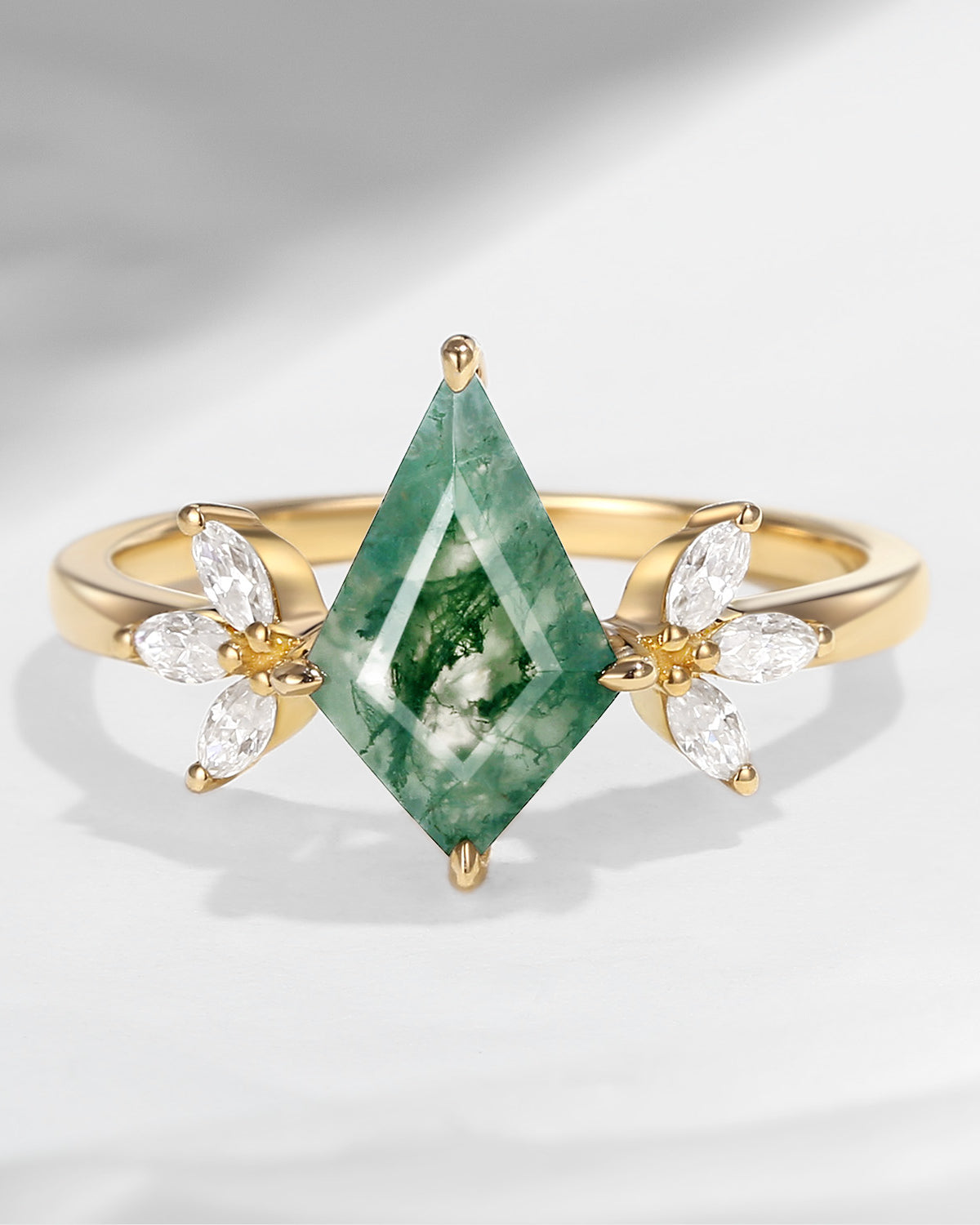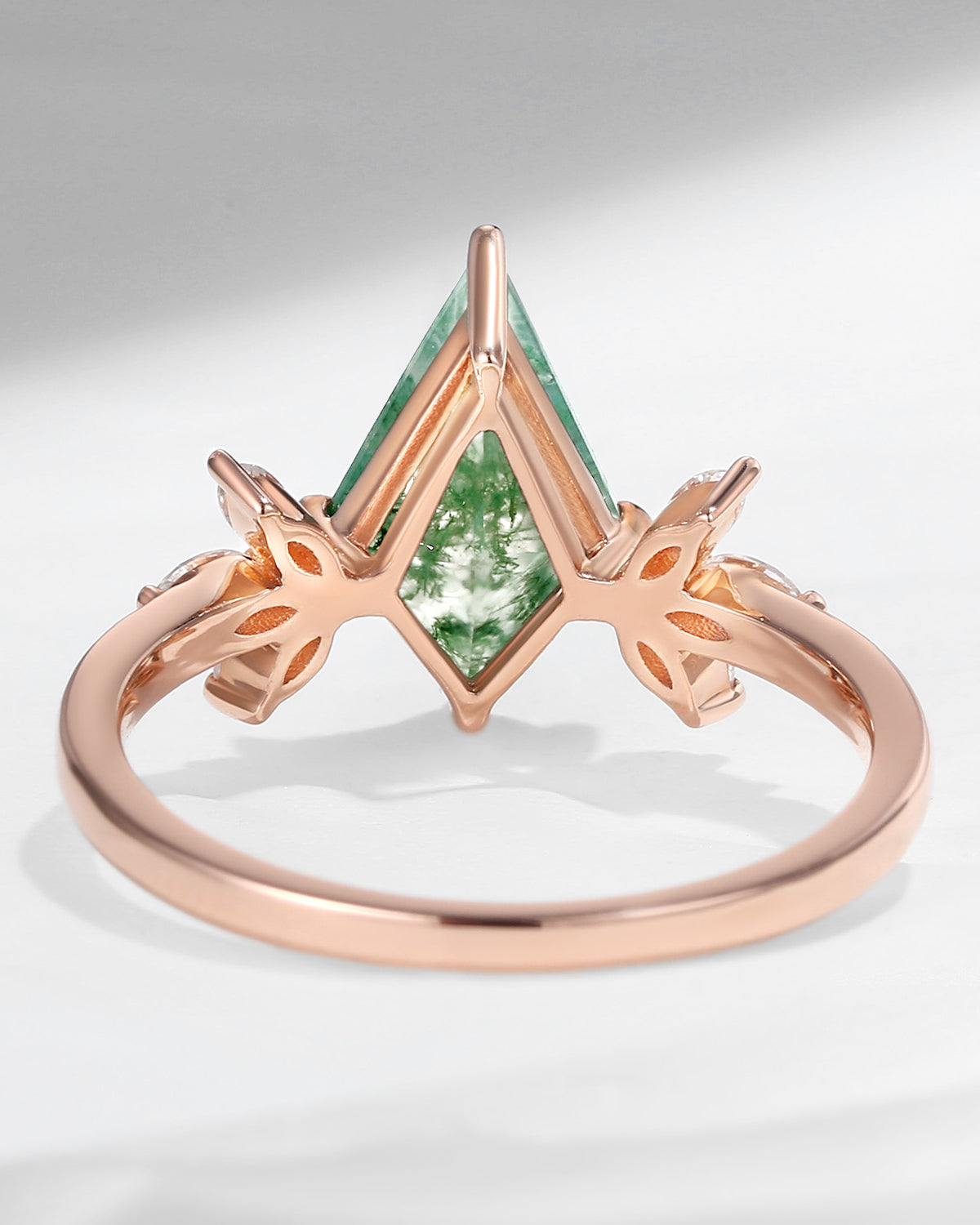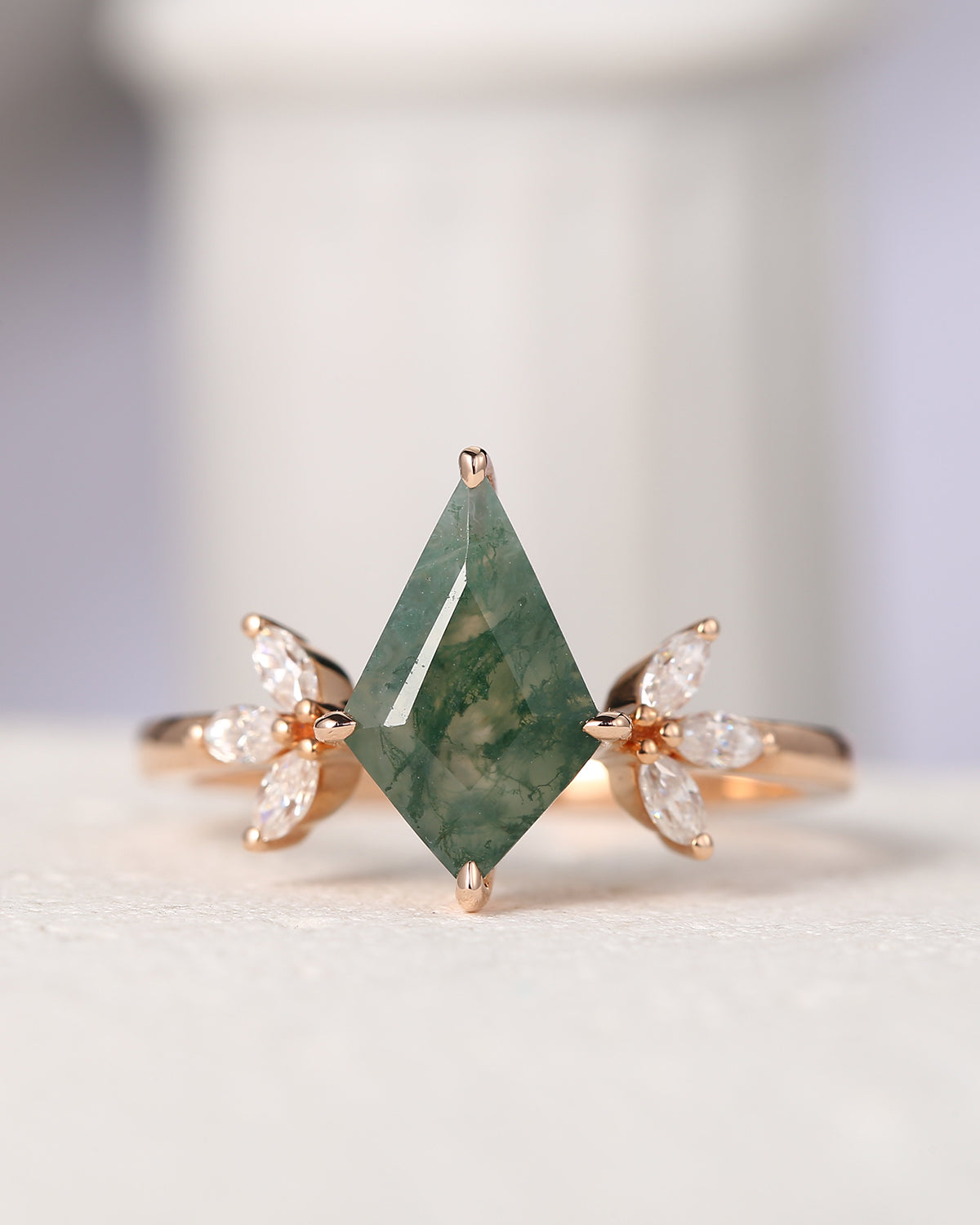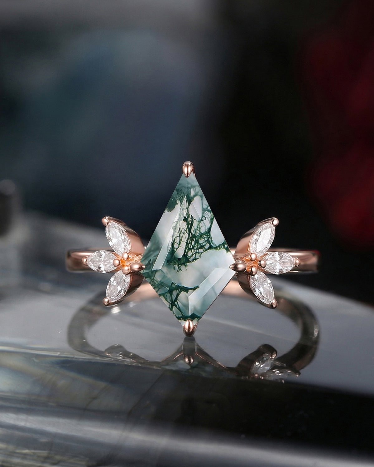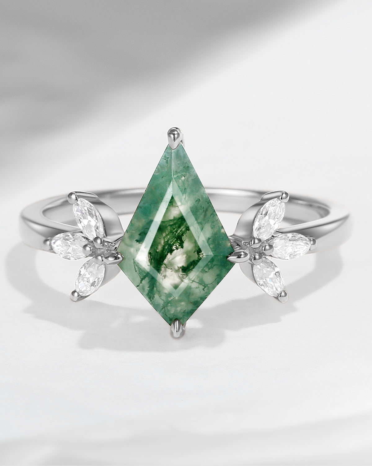 Half Moon Moss Agate + Coffin Cut Moissanite 'Tree of Life' Mushroom Engagement Ring Set 2pcs