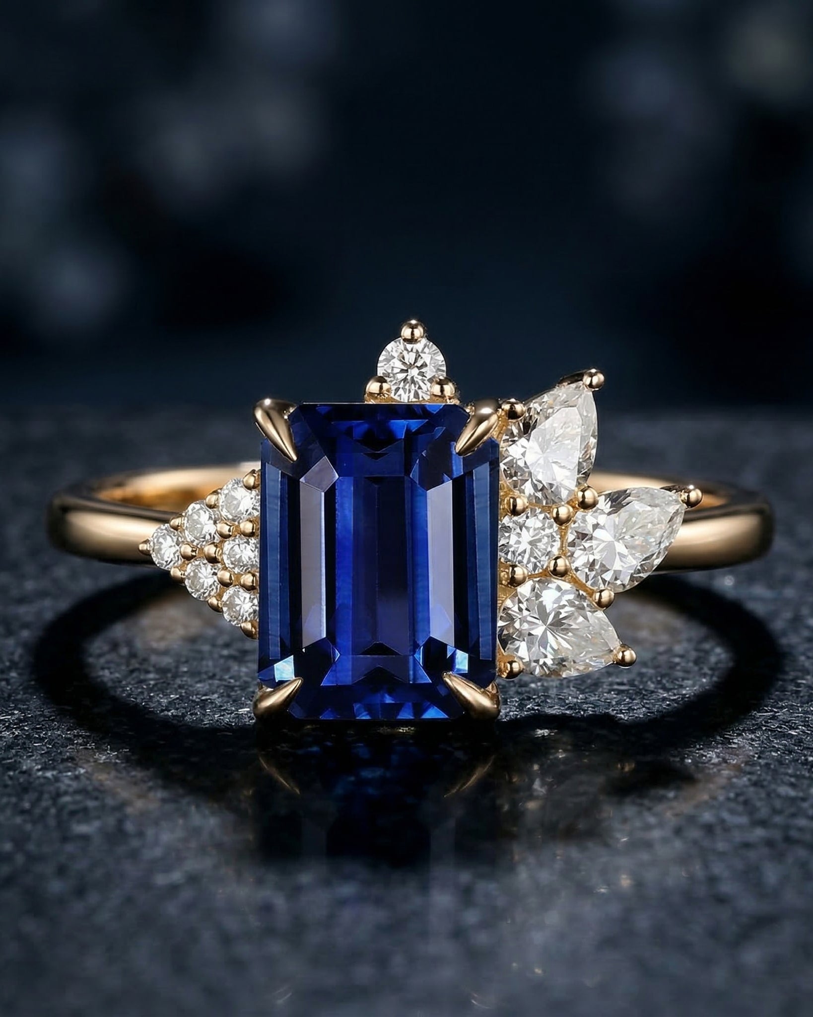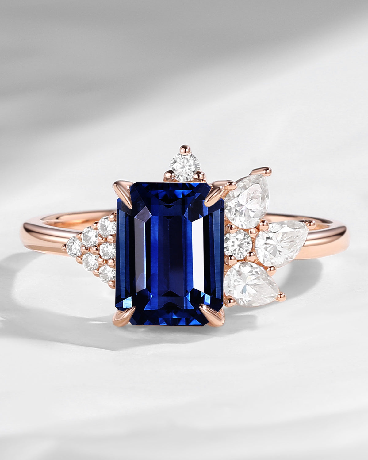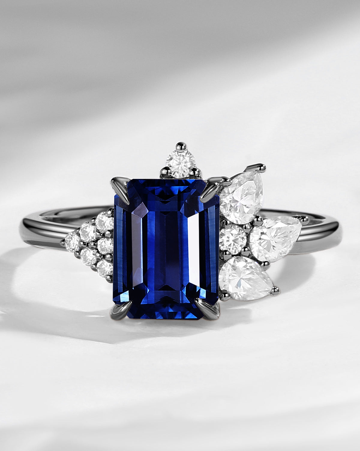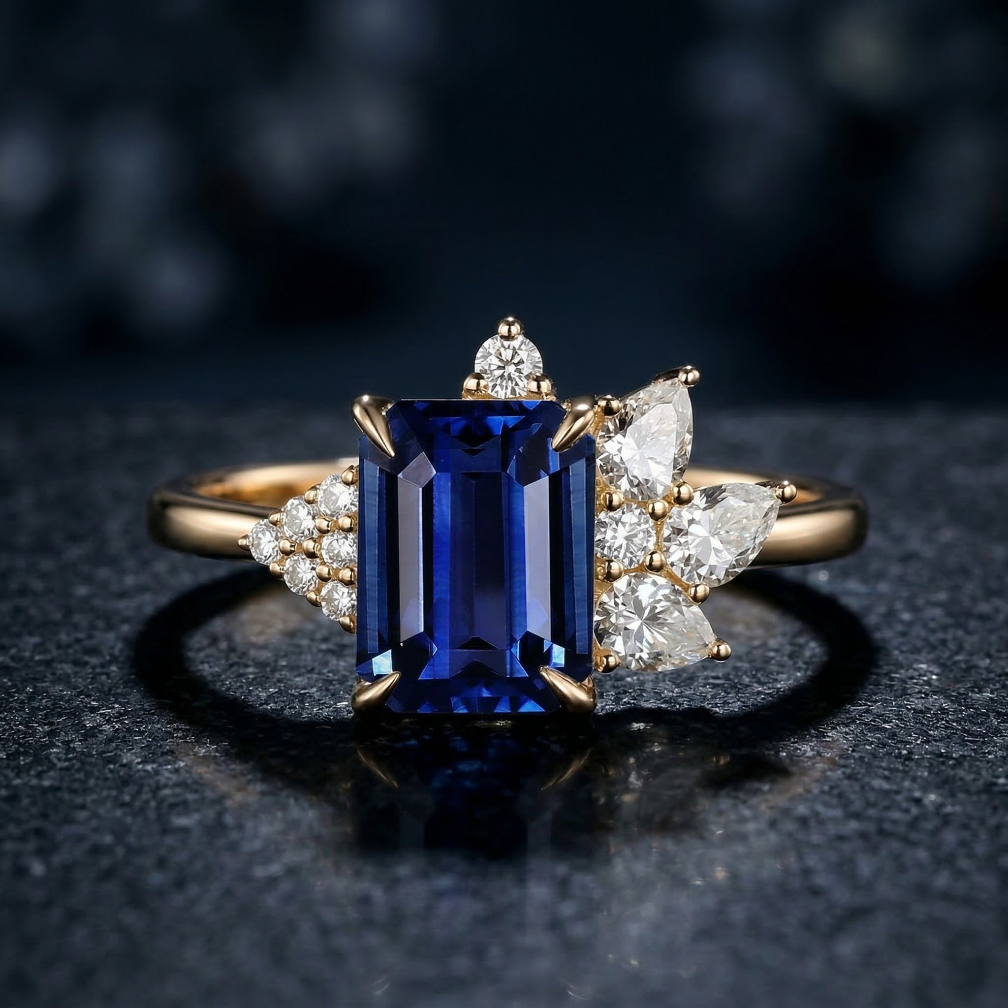 Art Deco Emerald Cut Natural Sapphire Vintage Cluster Engagement Ring