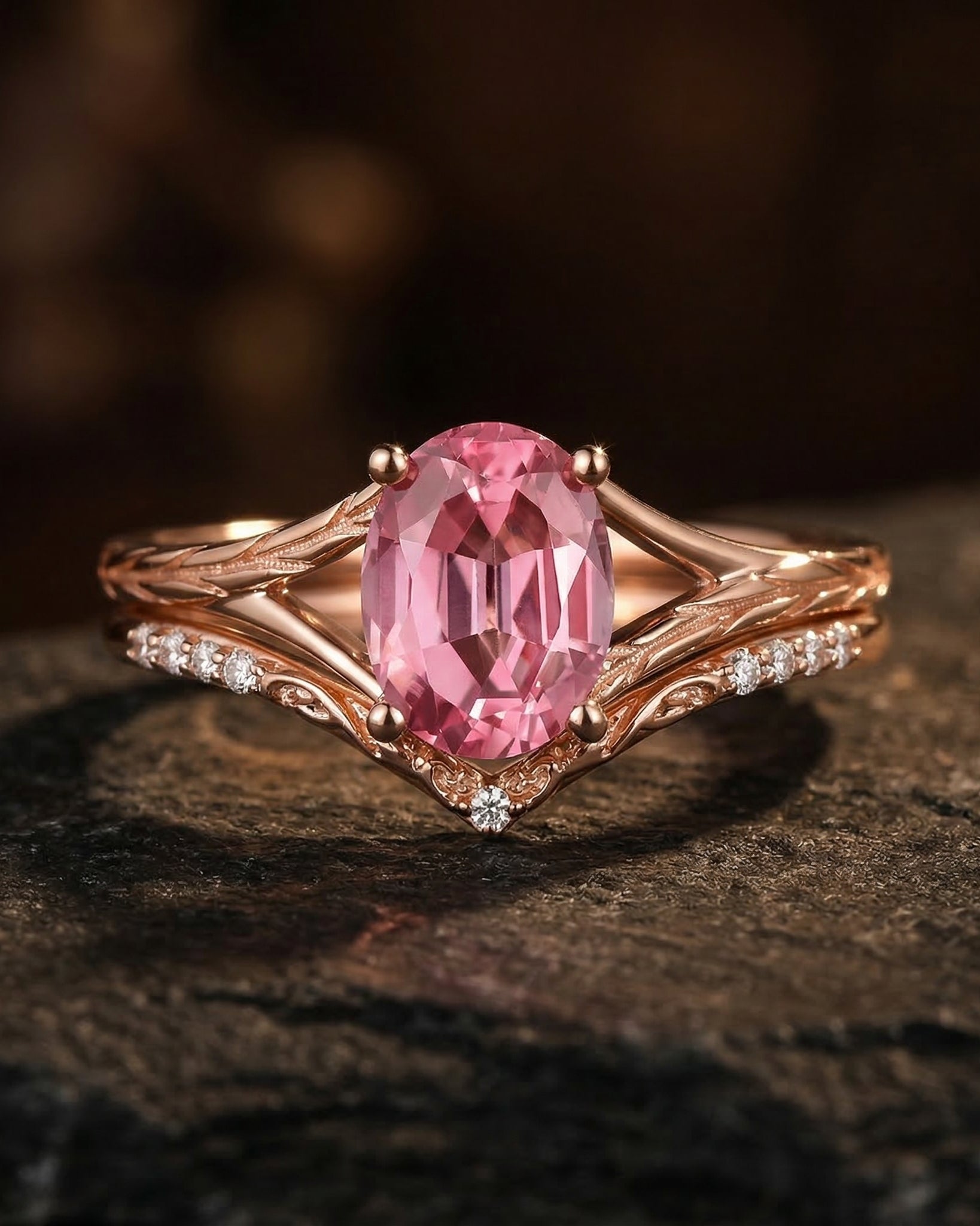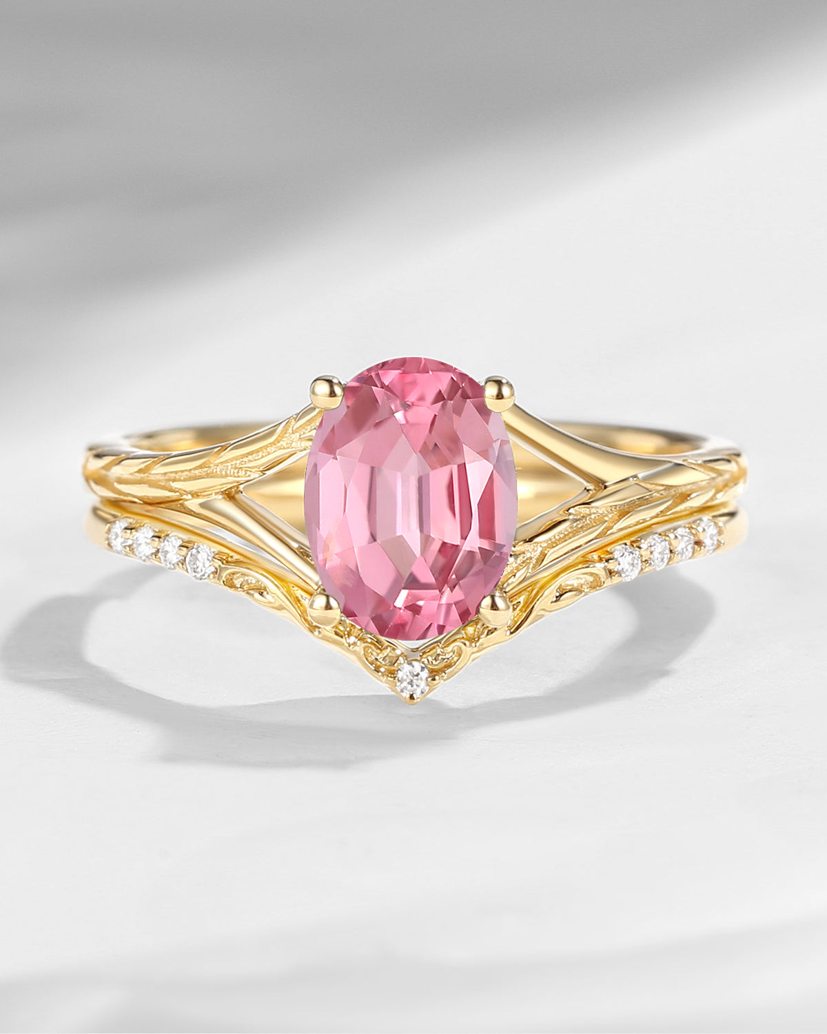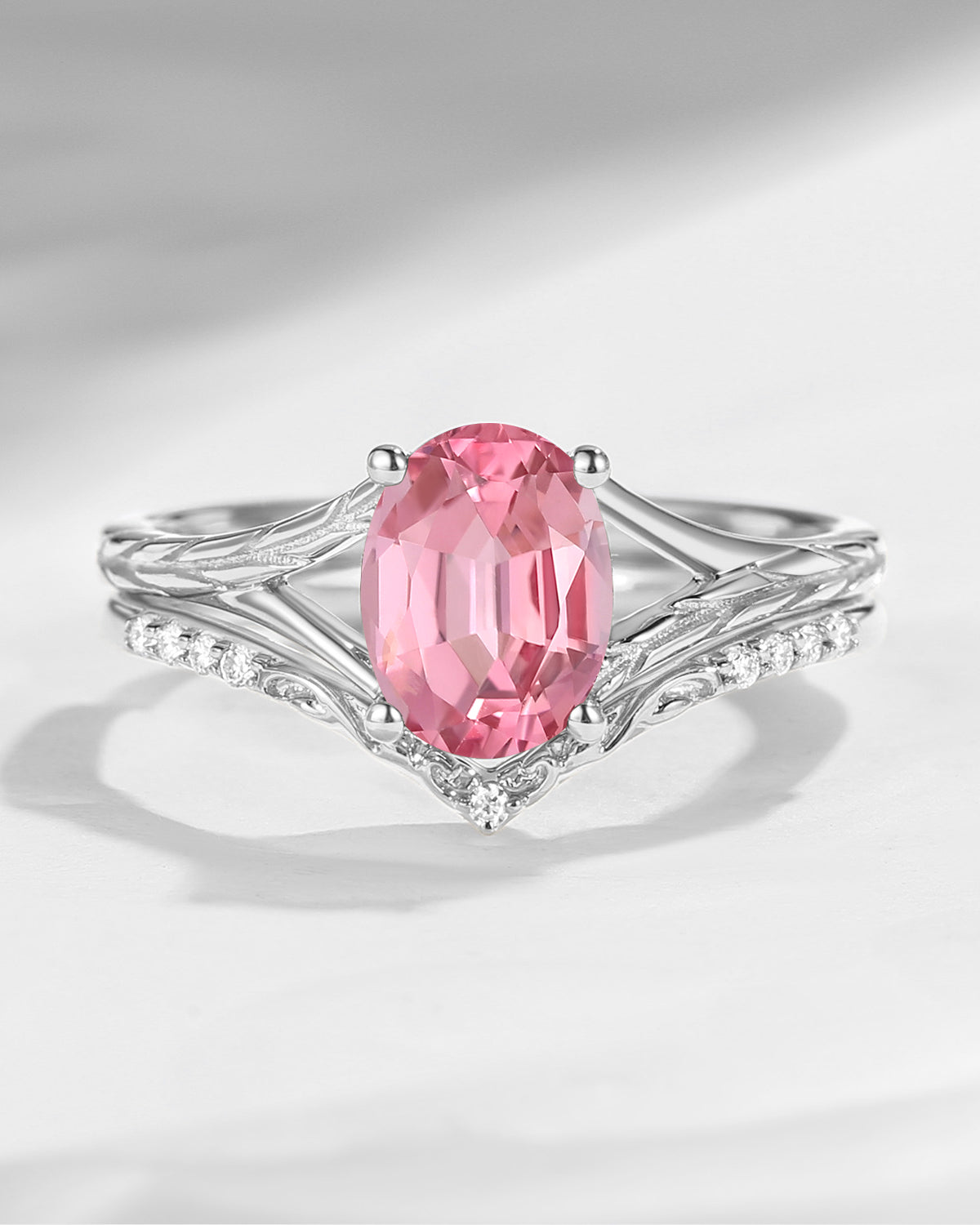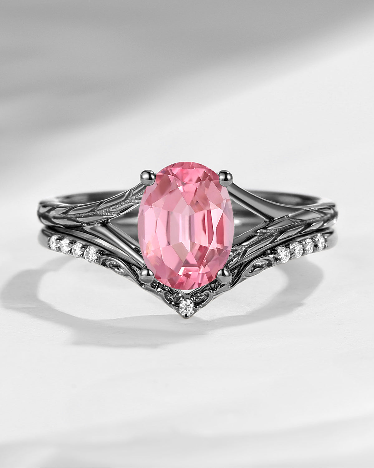 Vintage Inspired Kite Cut Lab Pink Diamond Milgrain Engagement Ring Set 2pcs