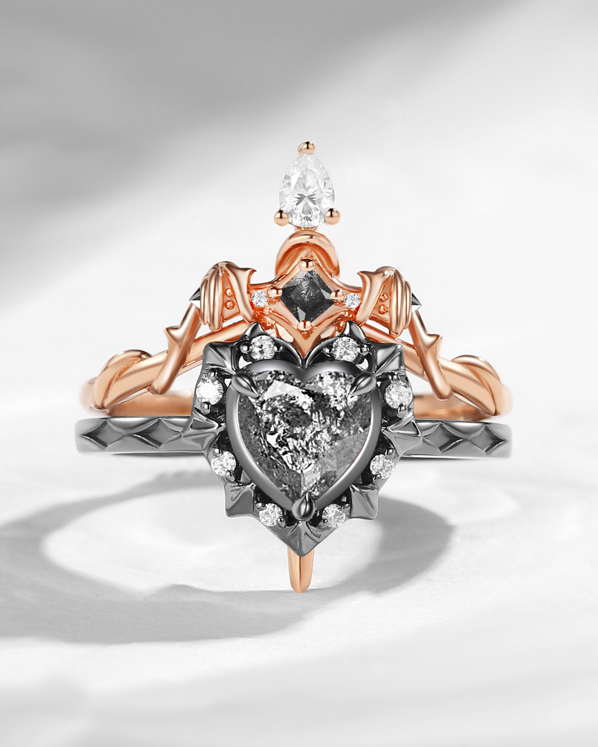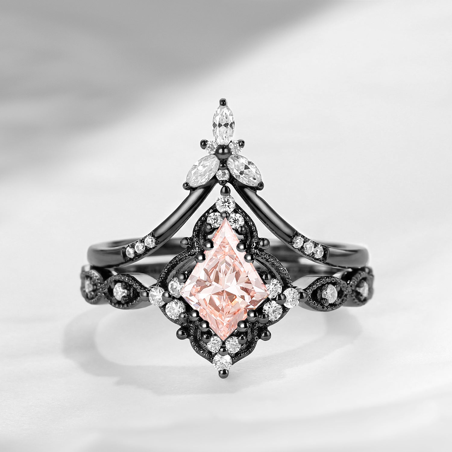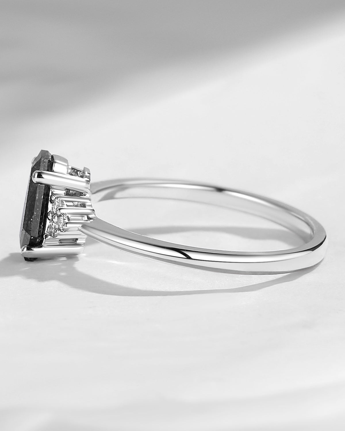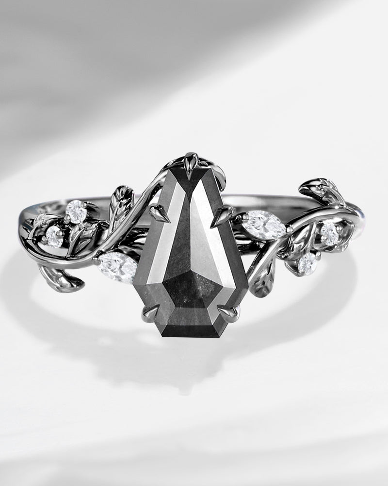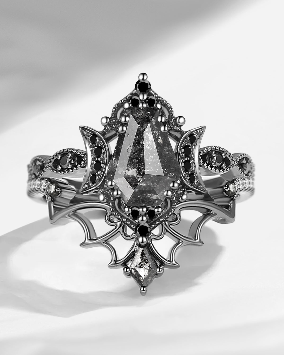 Crescent Moon | Rhombus Cut Salt And Pepper Diamond 'Noir' Engagement Ring Set 3pcs