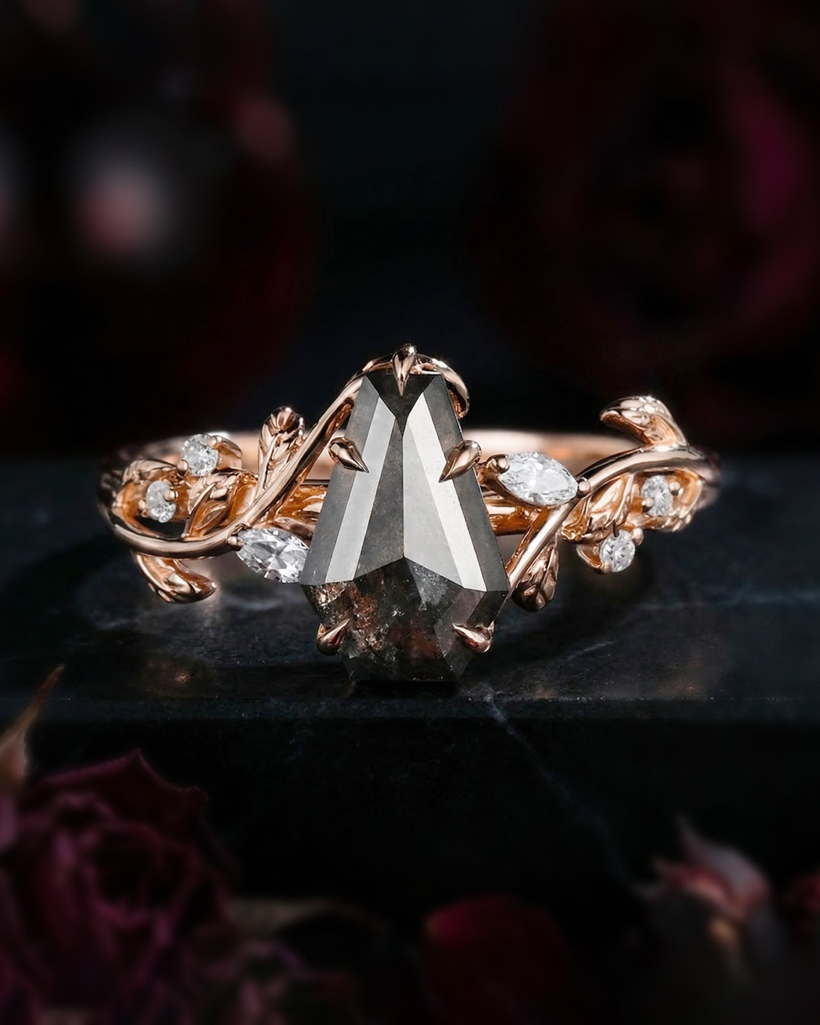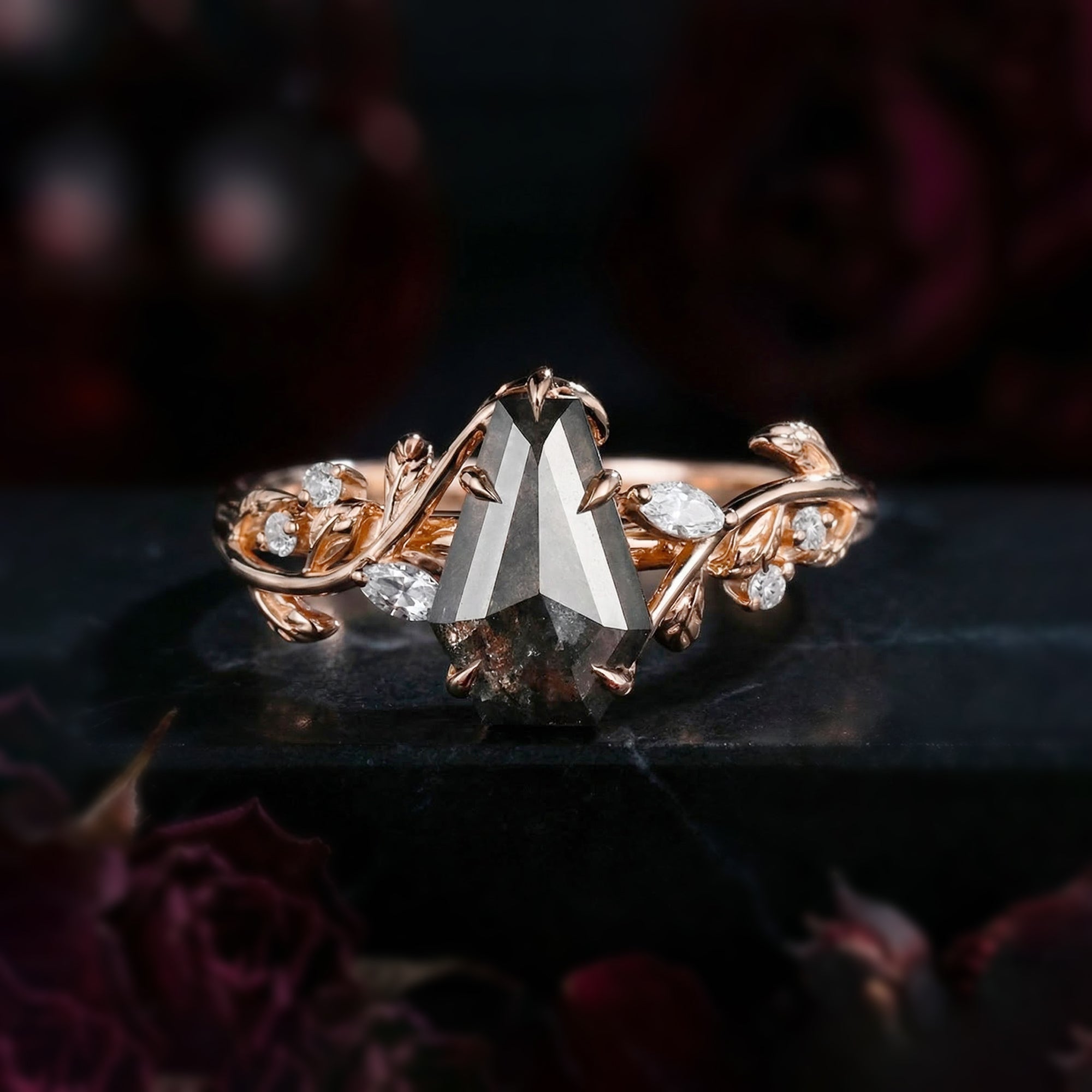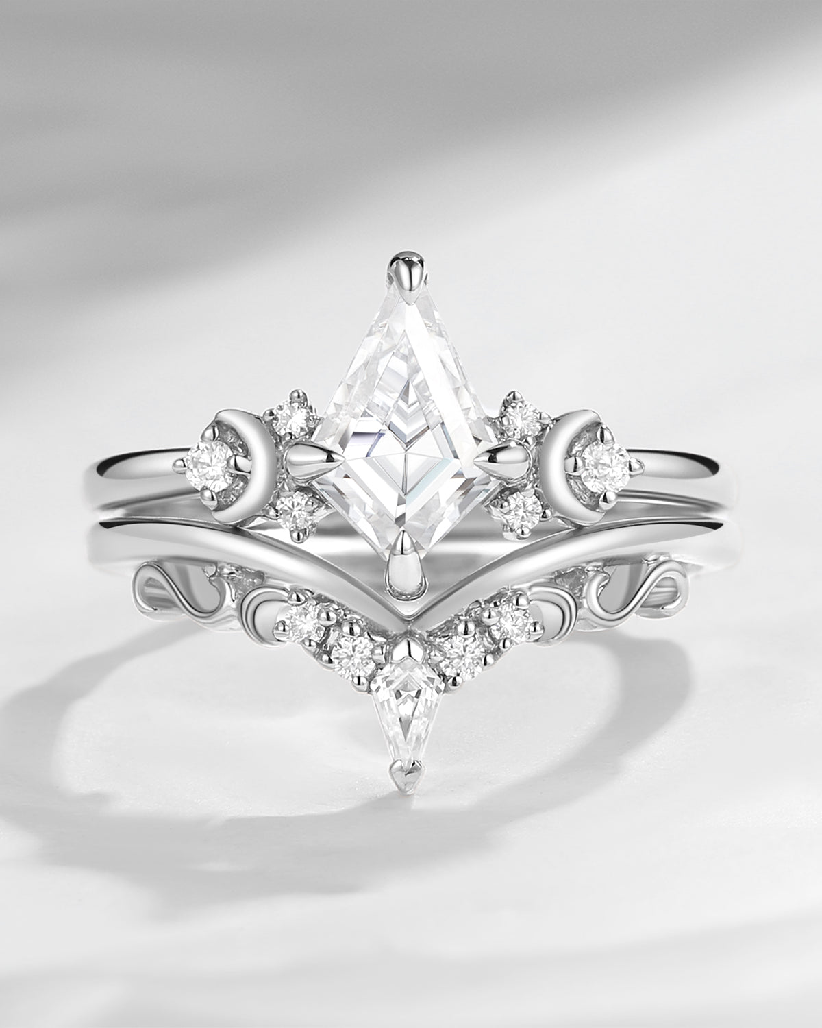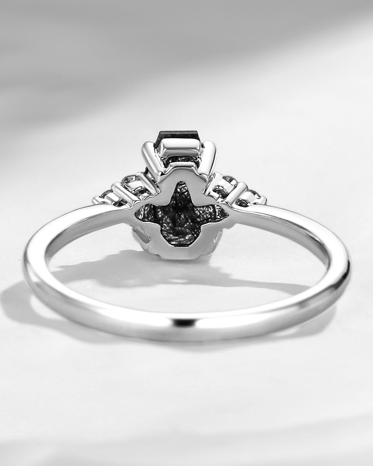 Crescent Moon | Rhombus Cut Salt And Pepper Diamond 'Noir' Engagement Ring Set 3pcs