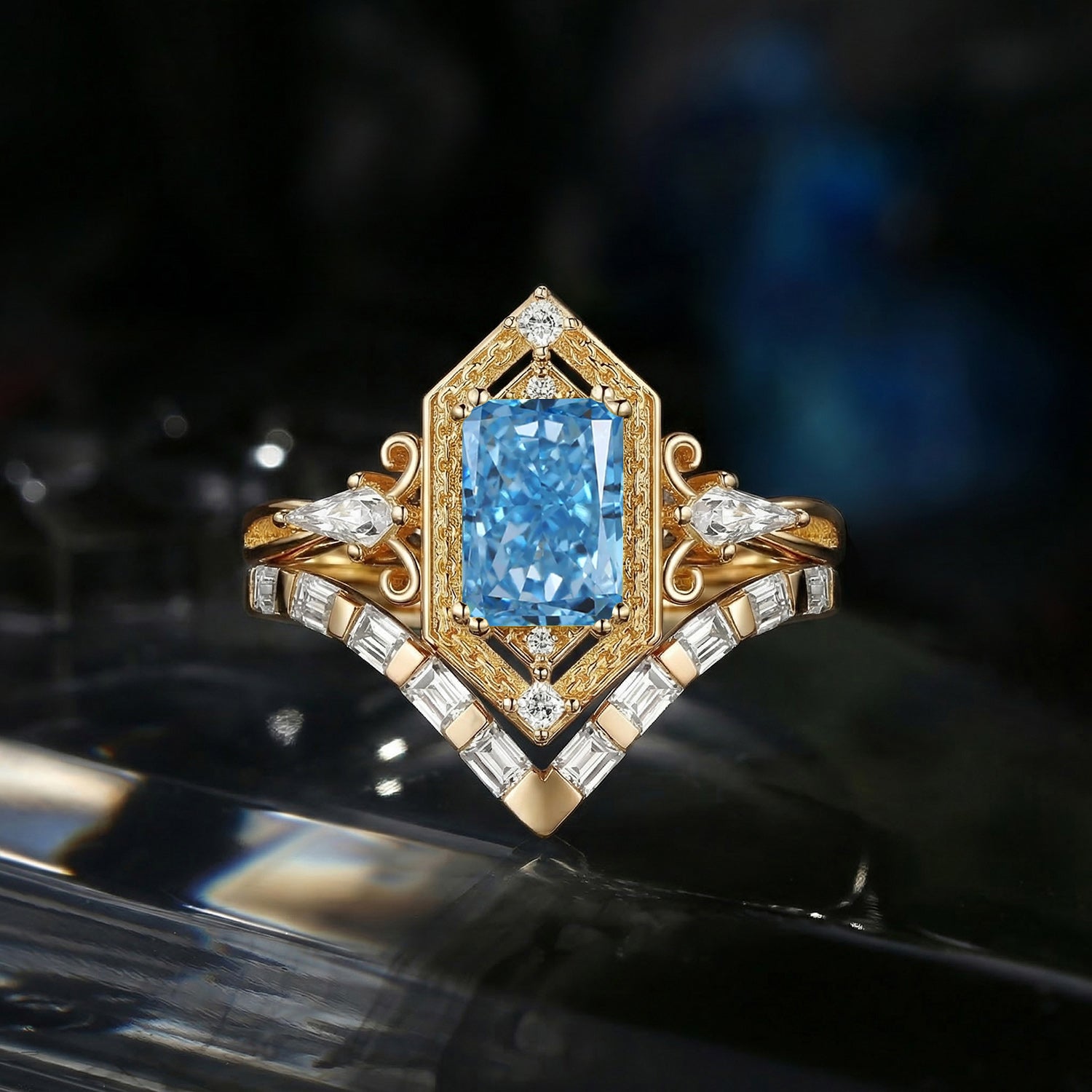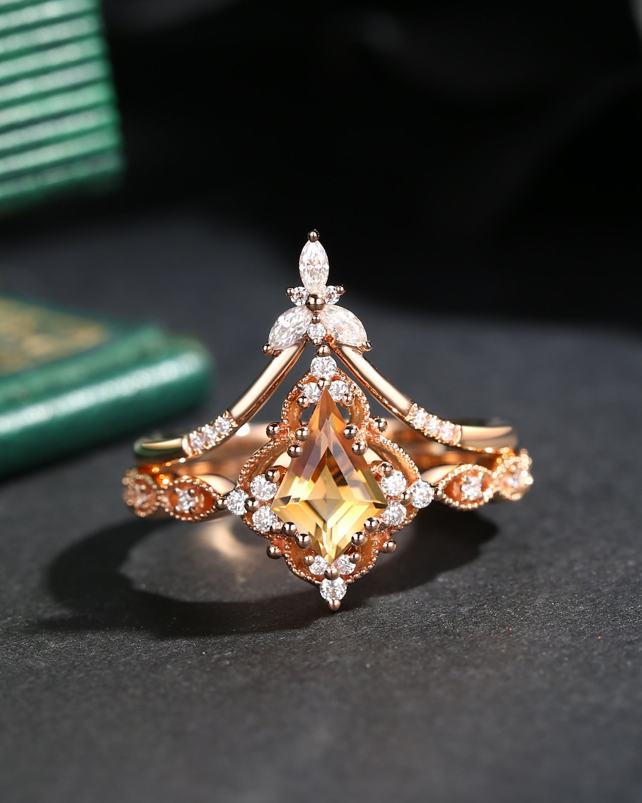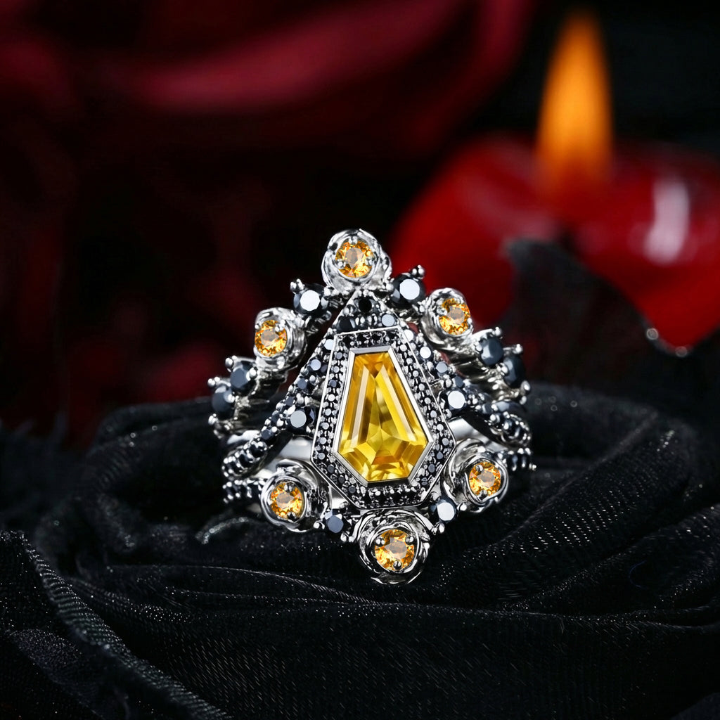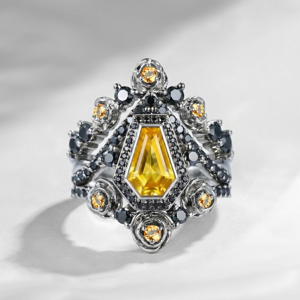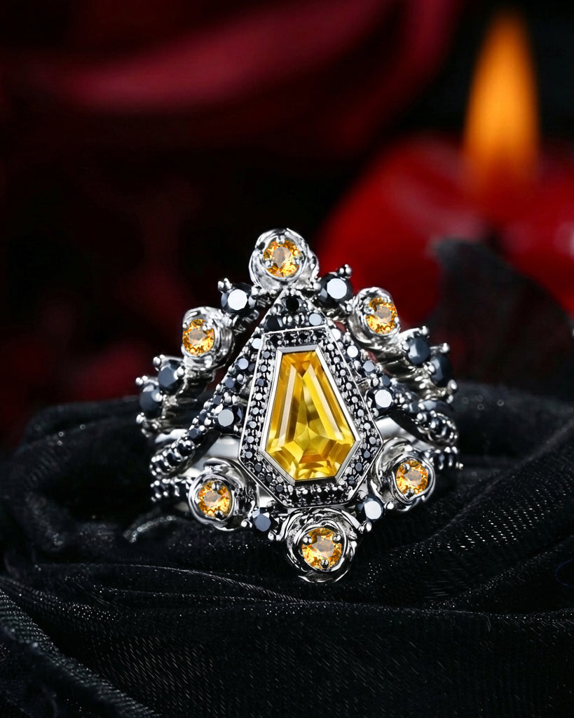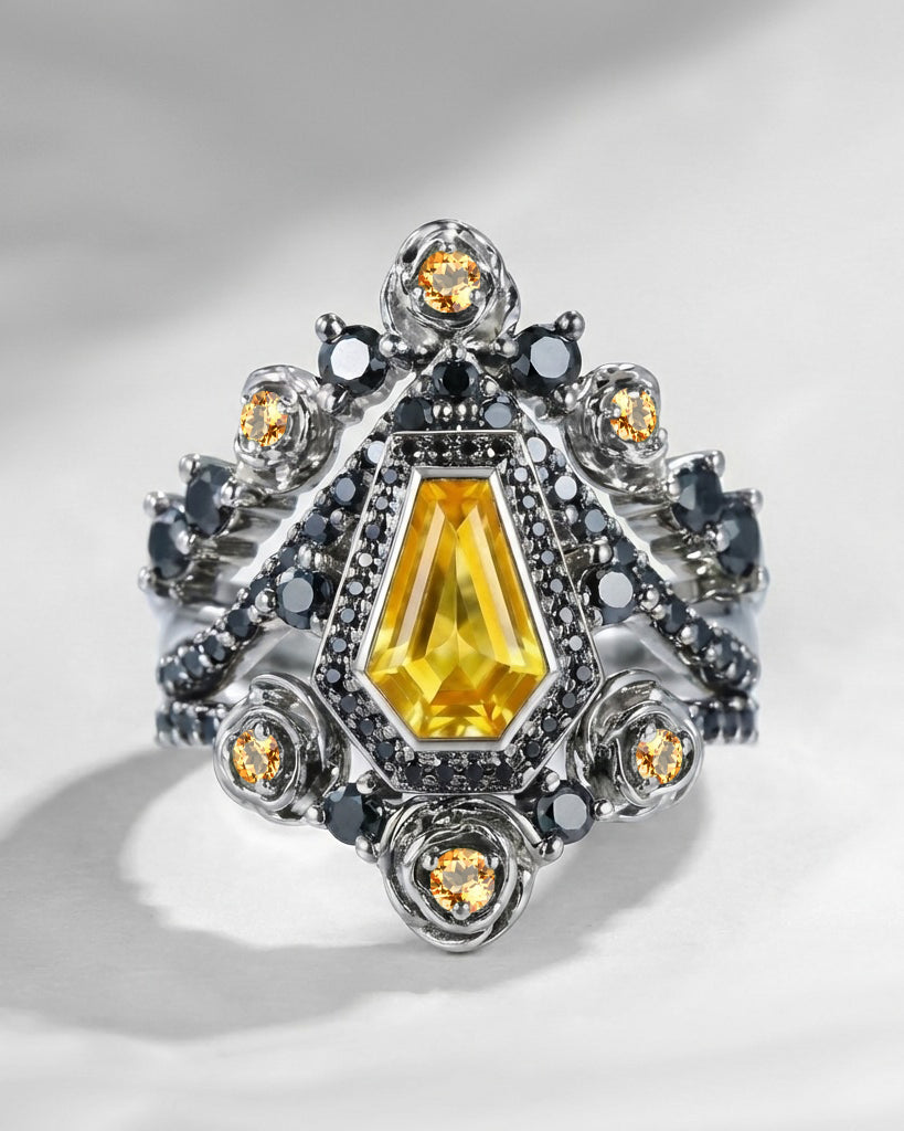 Kite Cut Yellow Sapphire Vintage Inspired Engagement Ring Set 2pcs