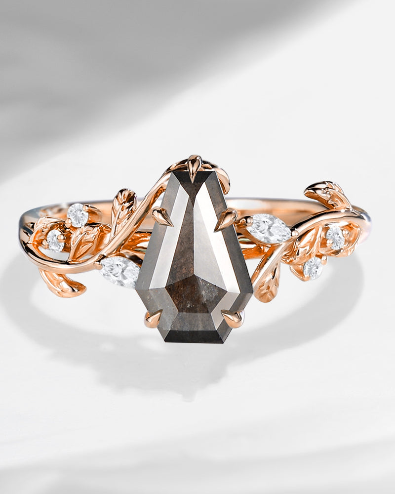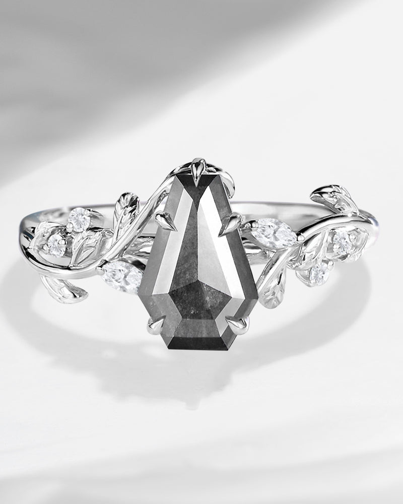 2.5ct 18K Marquise Vintage Inspired Natural Salt and Pepper Diamond Engagement Ring