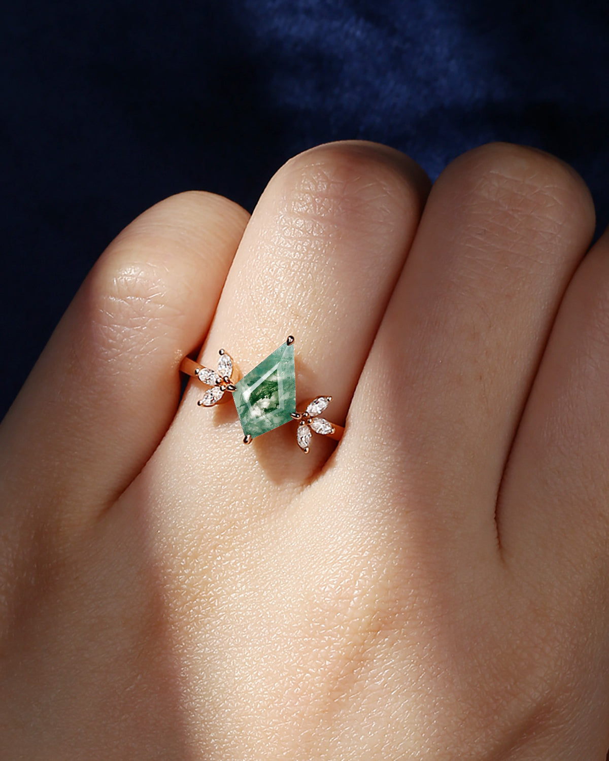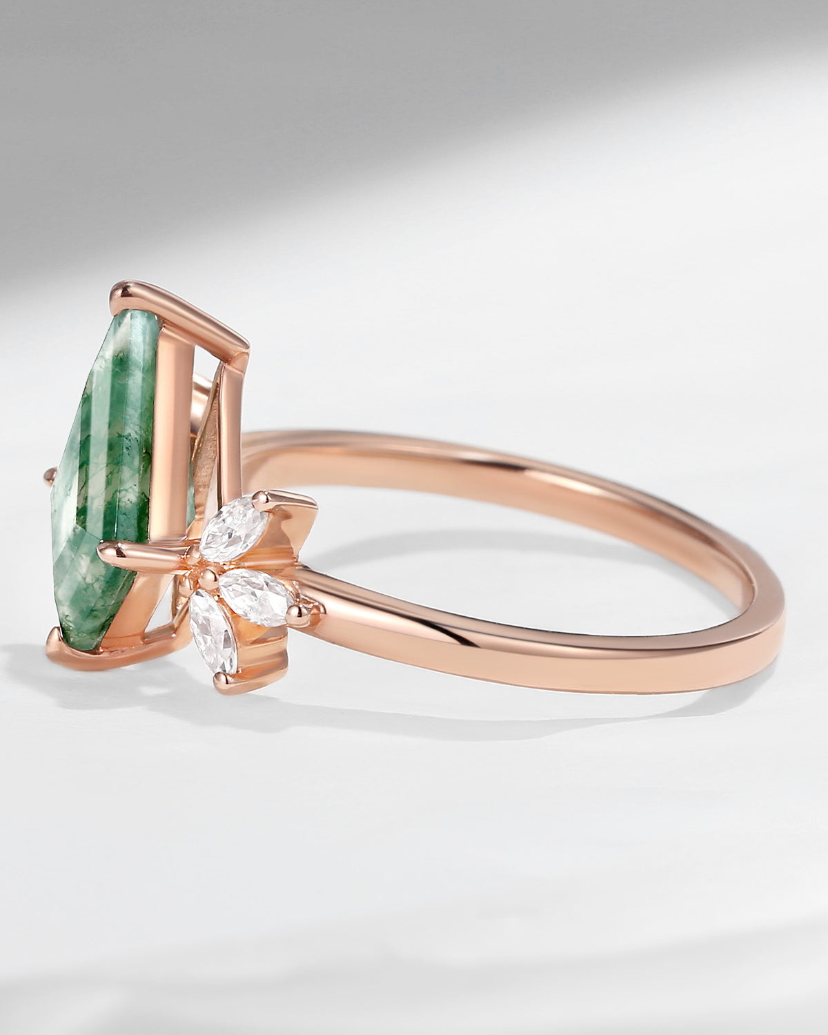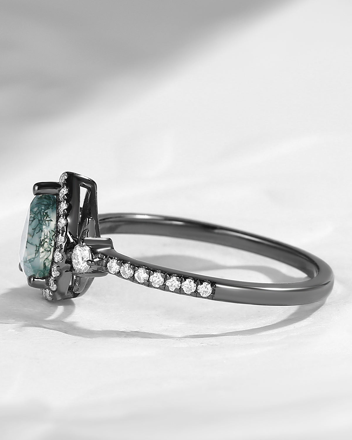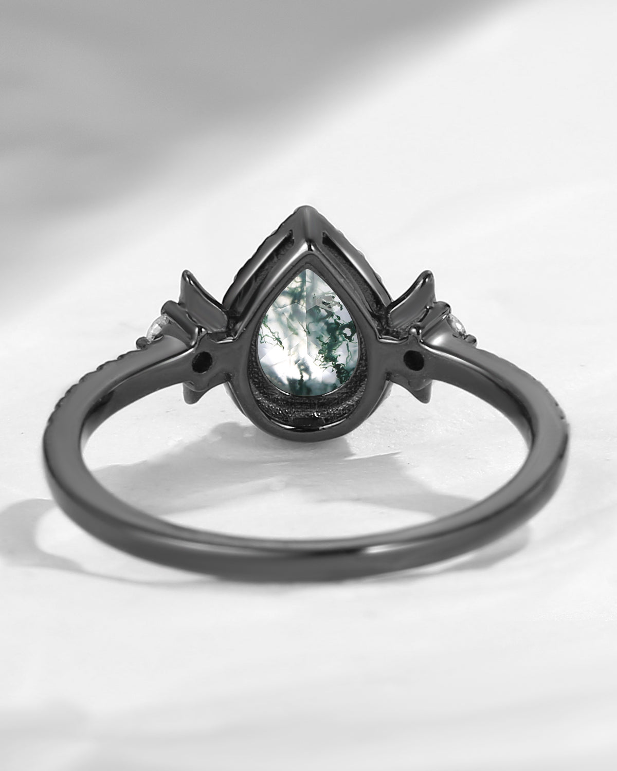 Crescent Moon | Unique Pear Shape Moss Agate Engagement Ring Set 2pcs - Luna