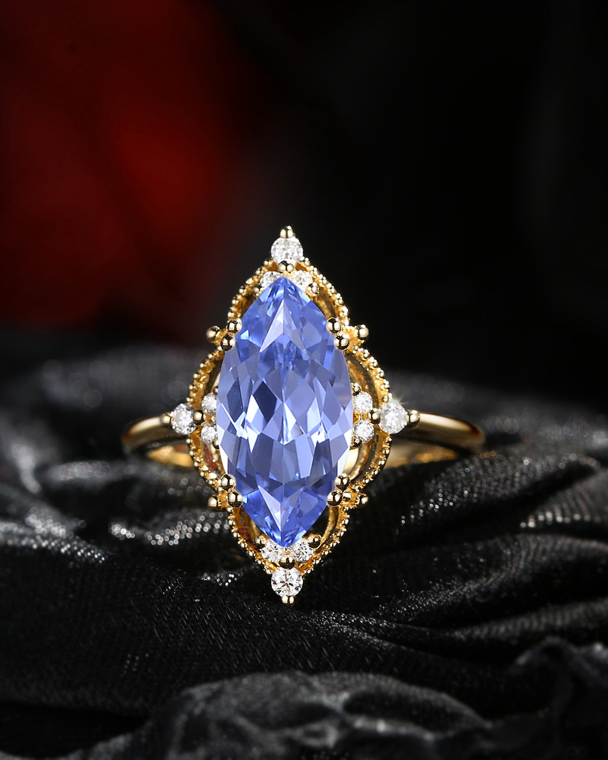 2.5ct 18K Marquise Vintage Inspired Lab Cornflower Sapphire Engagement Ring