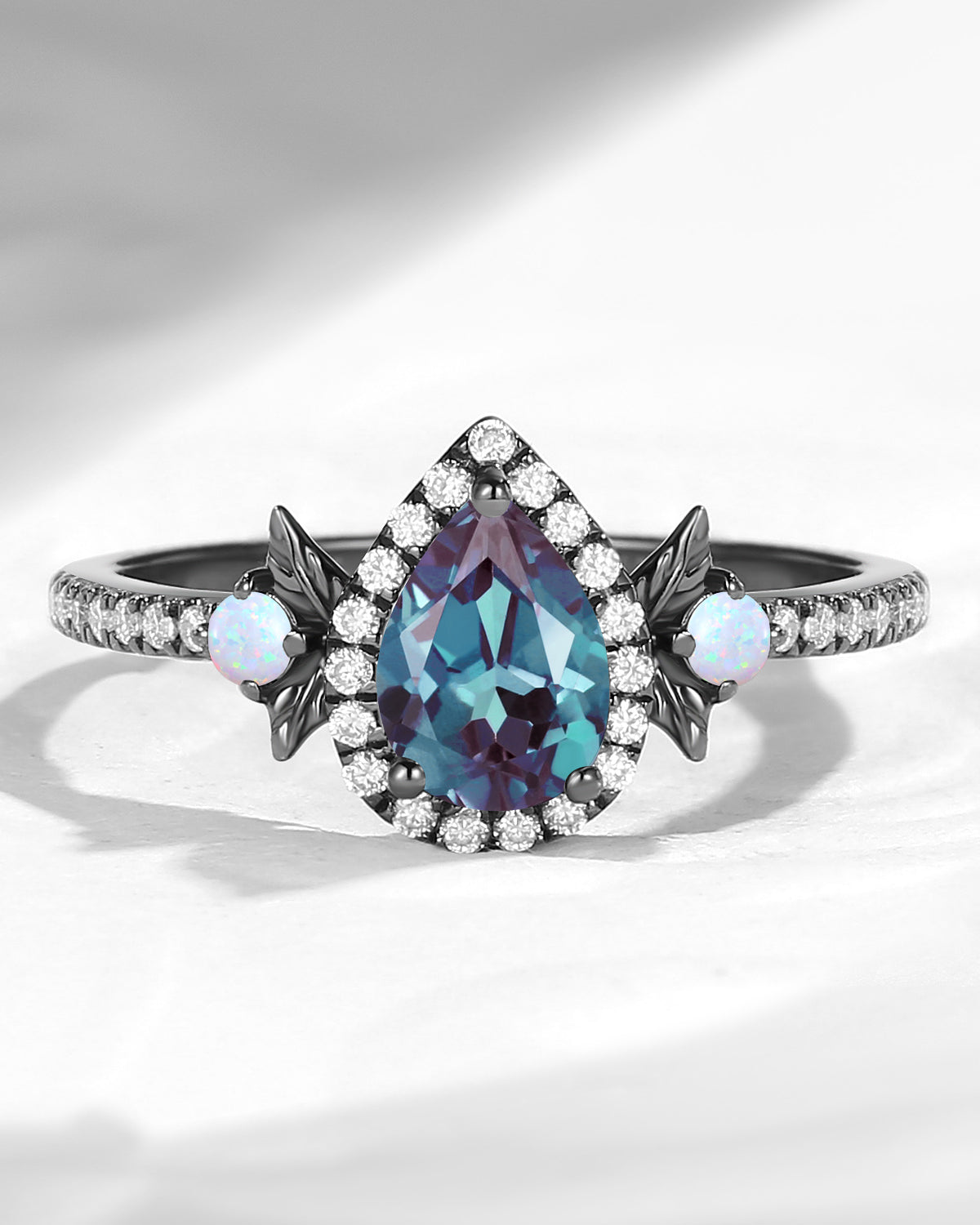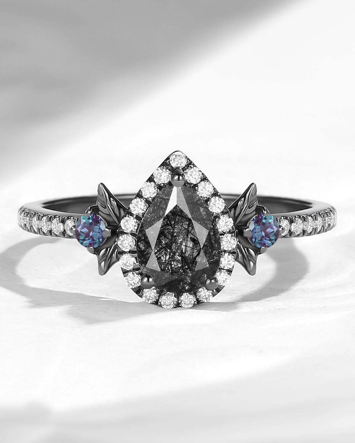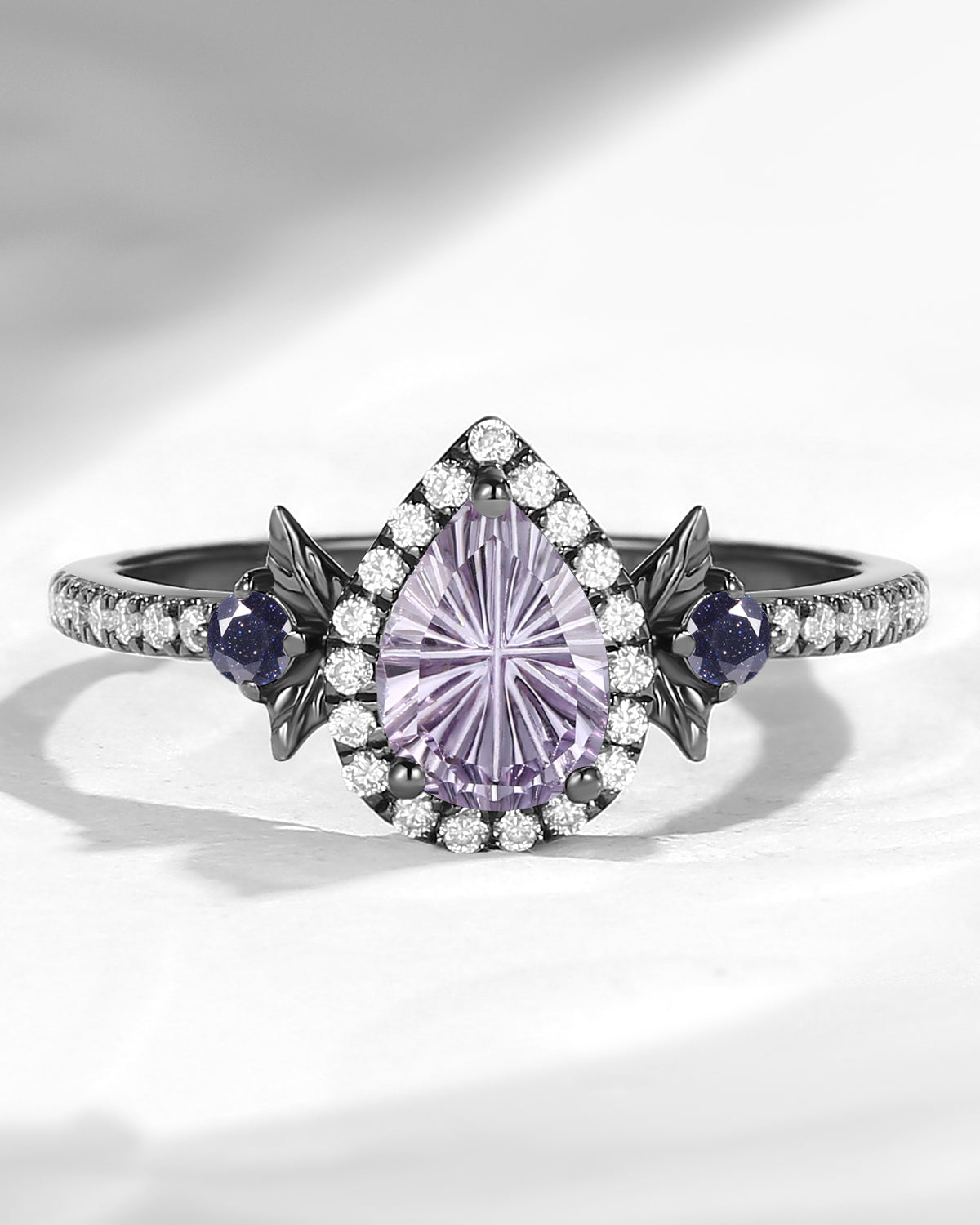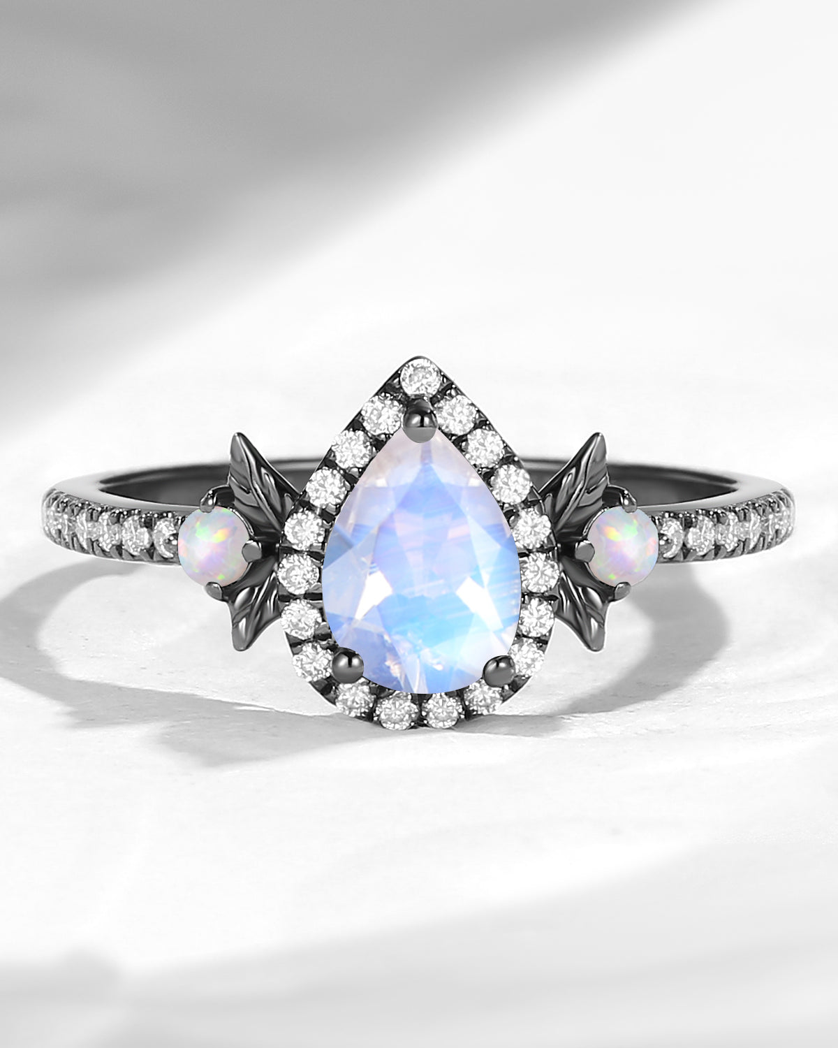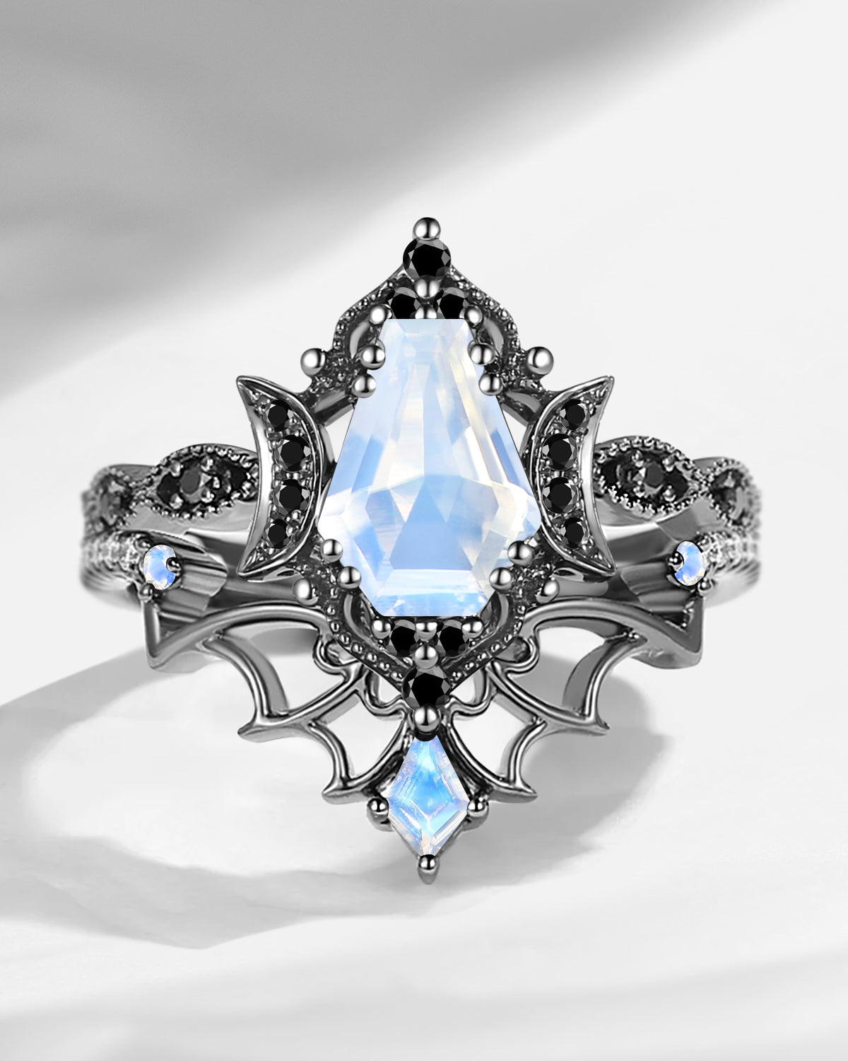 Crescent Moon | Pear Cut Moonstone 'Ultra Galaxy' Engagement Ring Set 2pcs