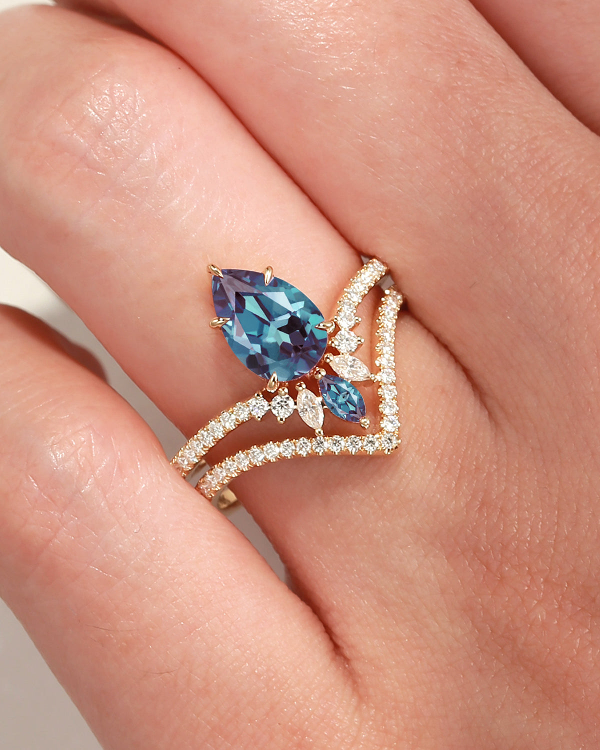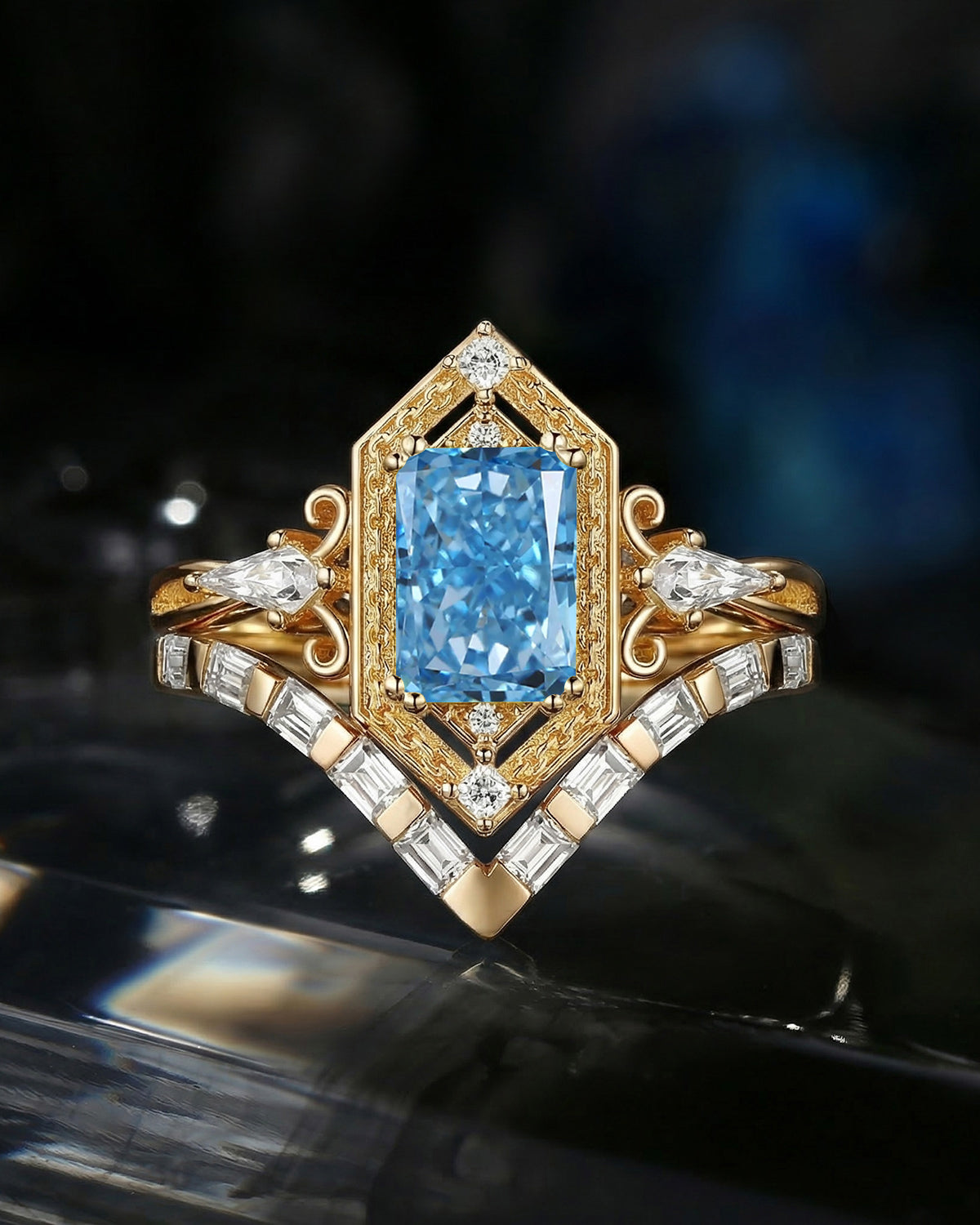 Crescent Moon | Pear Cut Blue Sandstone 'Ultra Galaxy' Engagement Ring Set 2pcs